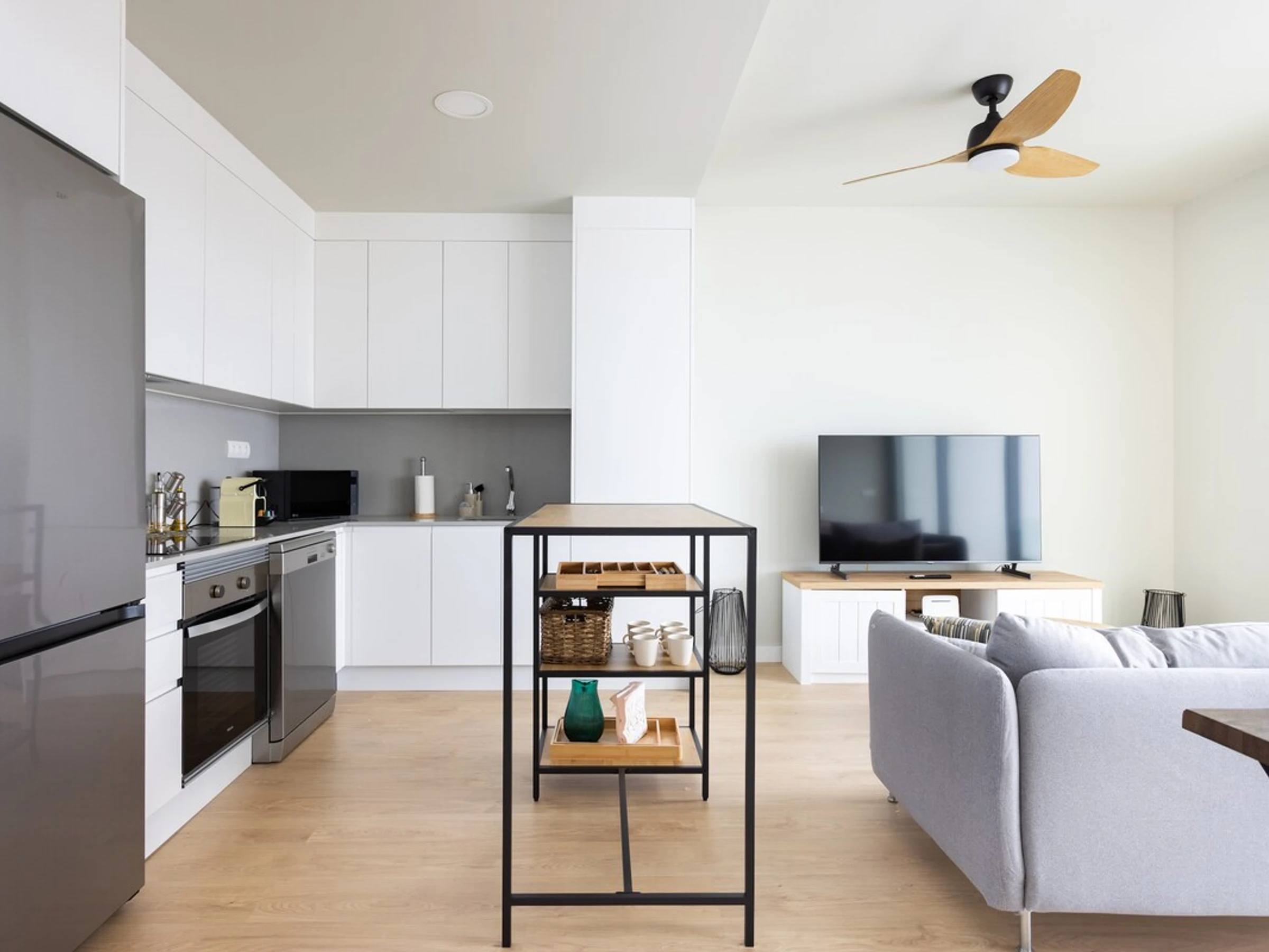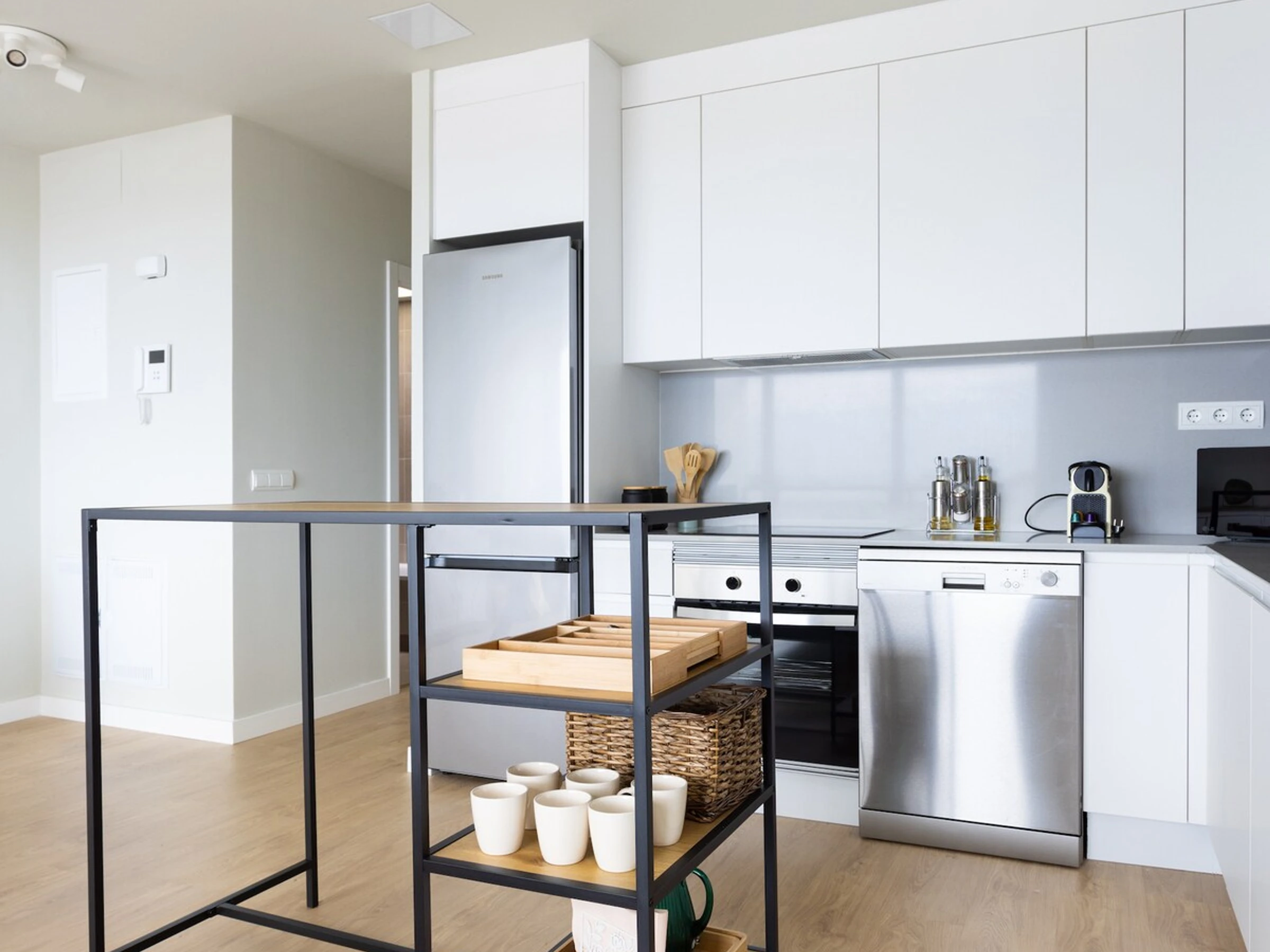 Dieses küche, ist ausgestattet in mikrowelle, backofen, spülmaschine, kochutensilien und kaffeemaschine.