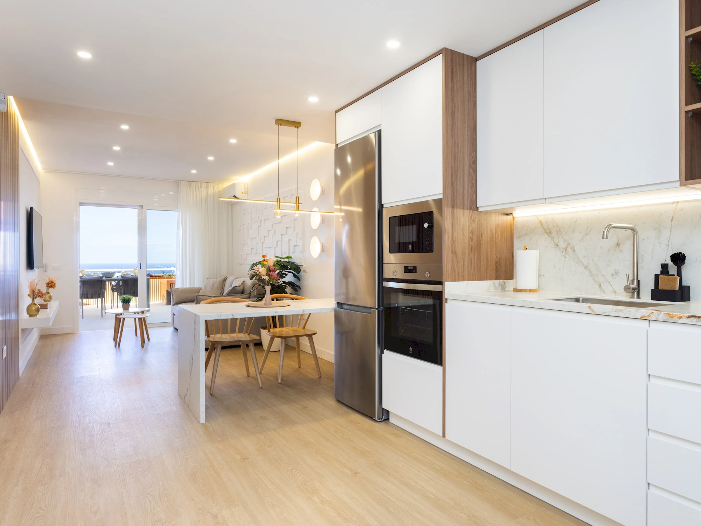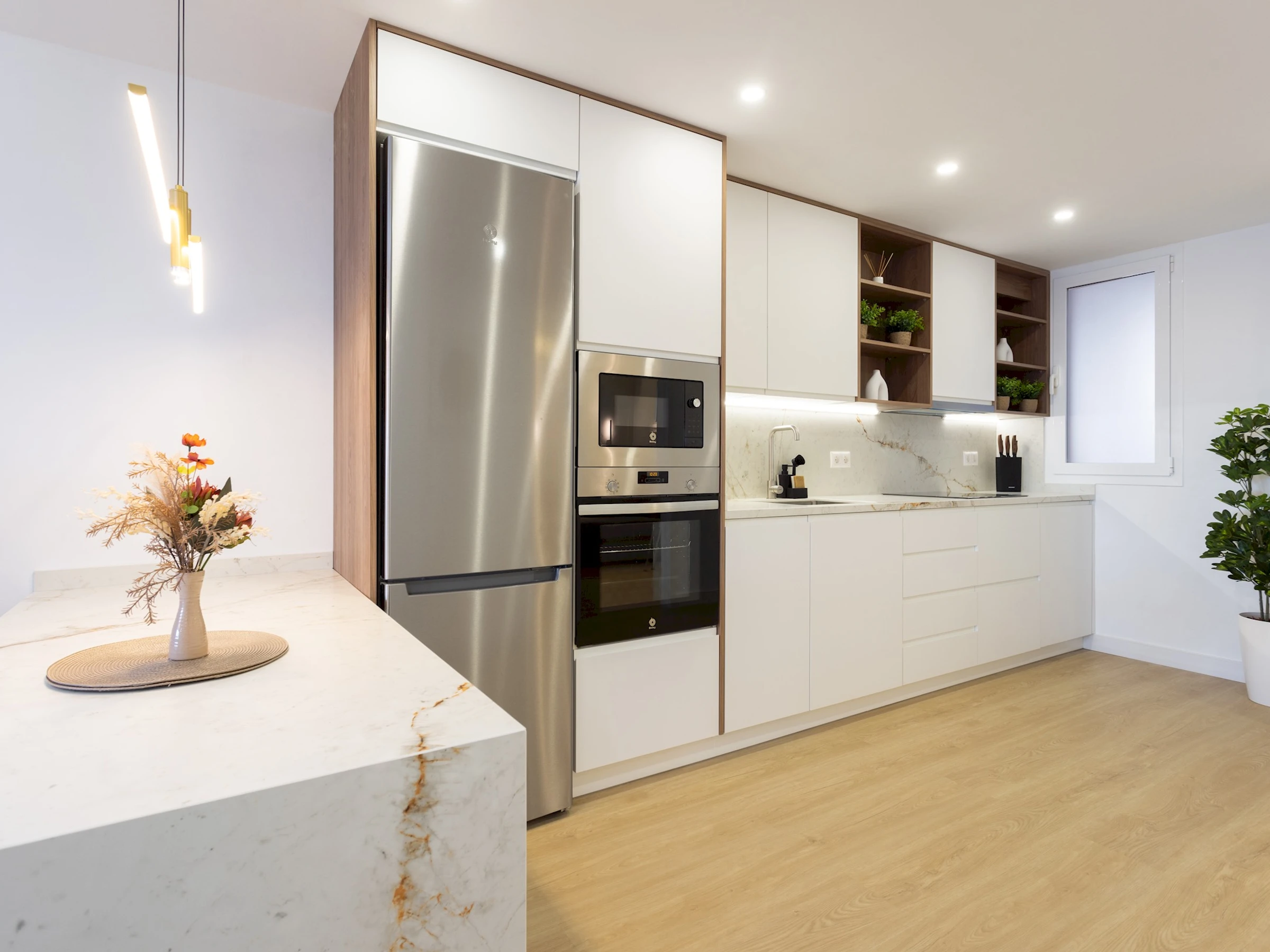 Dieses küche, ist ausgestattet in mikrowelle, backofen, spülmaschine, kochutensilien und kaffeemaschine.