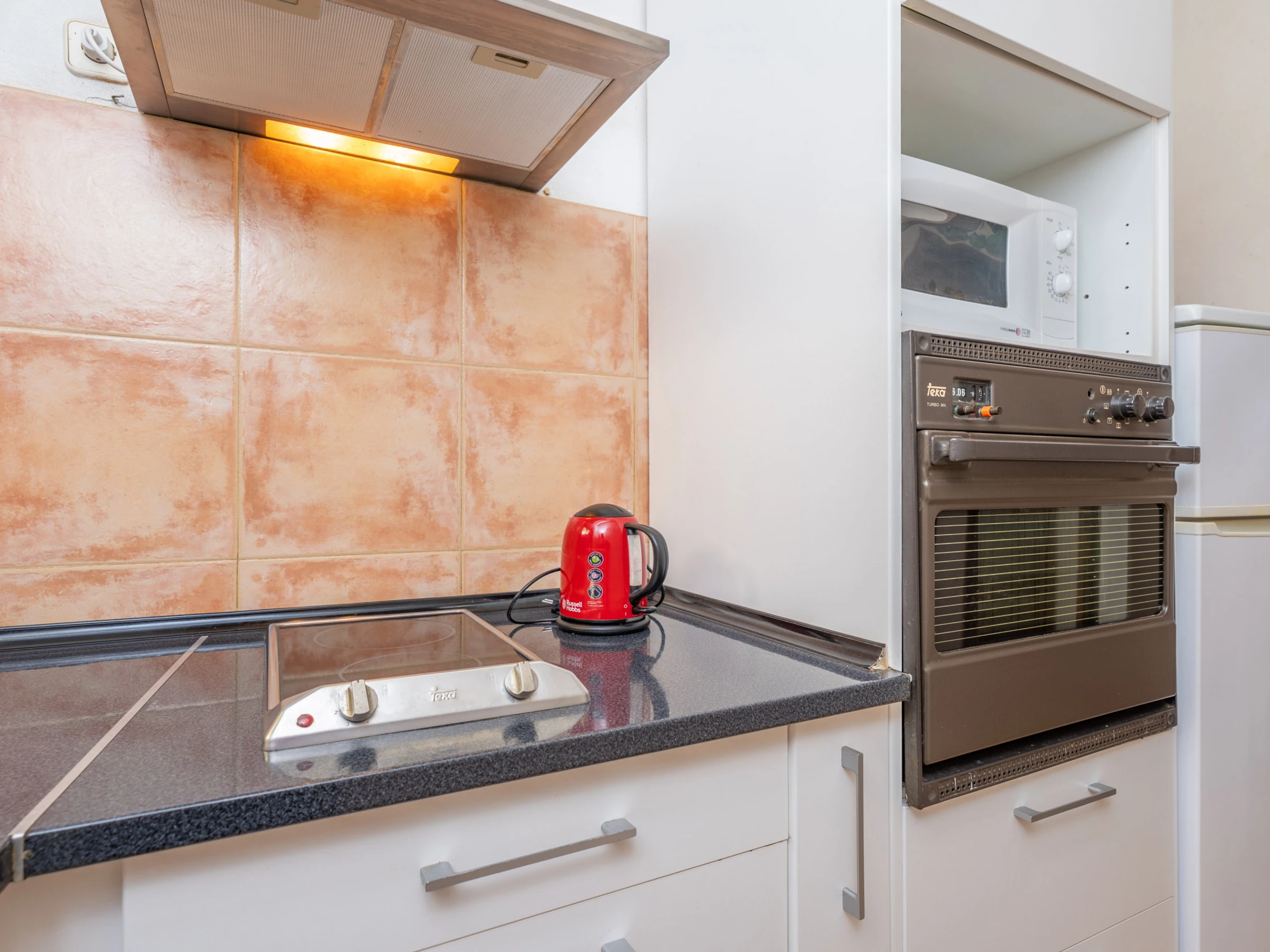 Dieses küche, ist ausgestattet in mikrowelle, gefrierschrank, spülmaschine, kaffeemaschine und toaster.