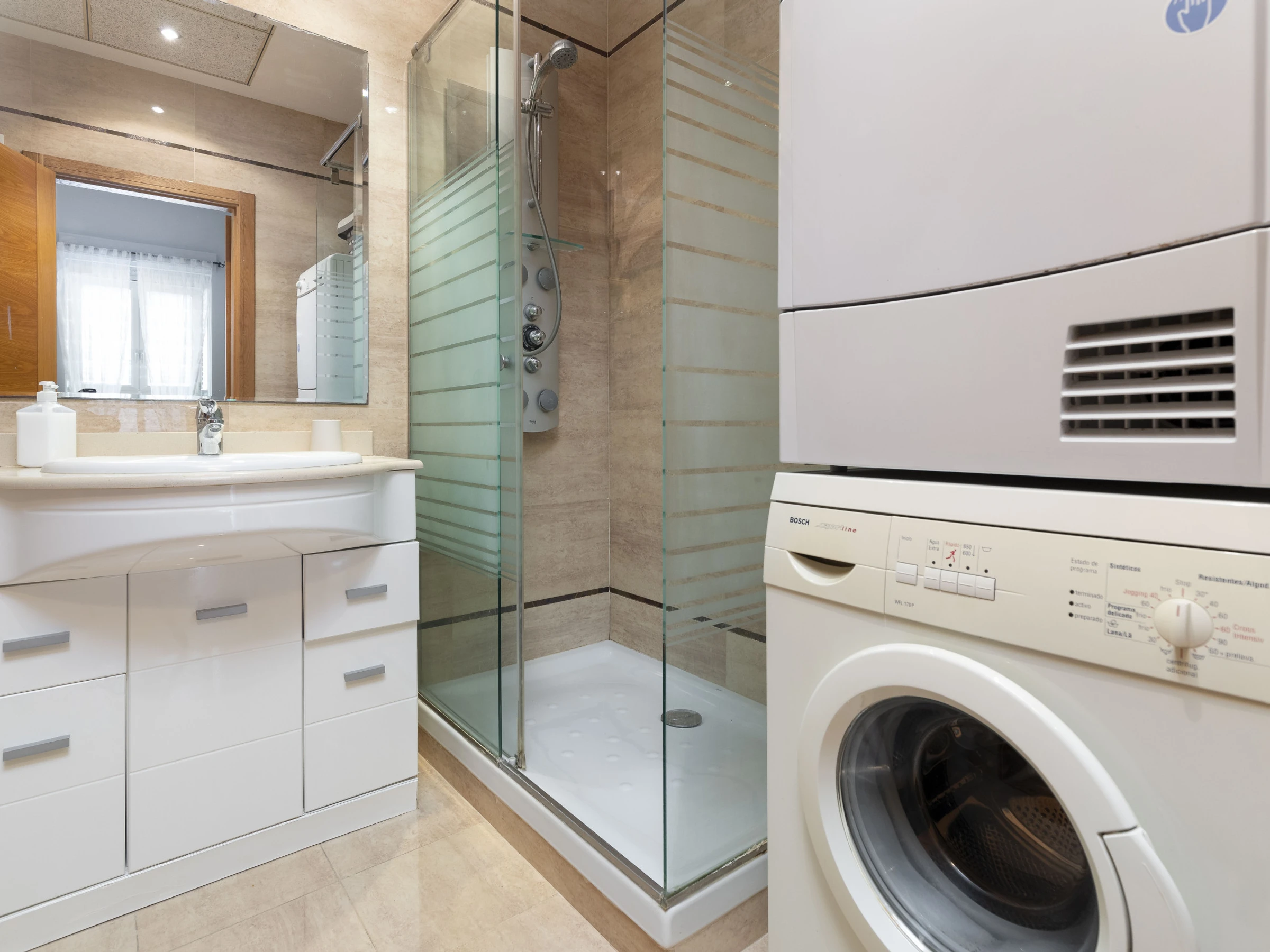 Die Unterkunft verfügt über aufzug, terrasse, waschmaschine, trockner, bügeleisen/-brett, internet (WLAN), haartrockner, heizung, klimaanlage in der ganzen unterkunft, garage in auf dem grundstück, 1 Fernseher.