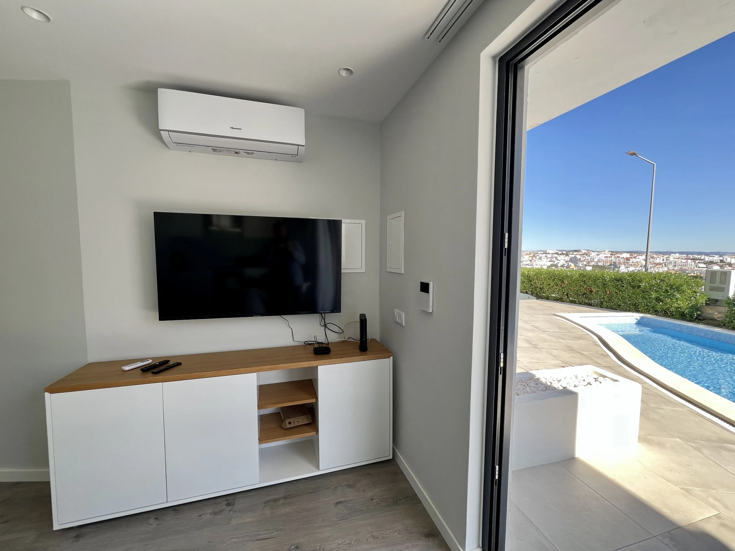 Diese gemütliche 1-Zimmer-Unterkunft bietet ein Erlebnis von Komfort und Entspannung. Das Zimmer ist hell und stilvoll eingerichtet und schafft eine ruhige Atmosphäre zum Ausruhen. Der Balkon ist perfekt, um Momente im Freien zu genießen, sei es zum Entspannen mit einem Getränk oder einfach nur die Aussicht zu bewundern. Zusätzlich ist der verfügbare Pool ein großartiger Ort, um sich zu erfrischen und zu entspannen, was Ihren Aufenthalt noch angenehmer macht. Ideal für Paare oder Einzelreisende, die eine ruhige Zuflucht mit allen Annehmlichkeiten suchen.