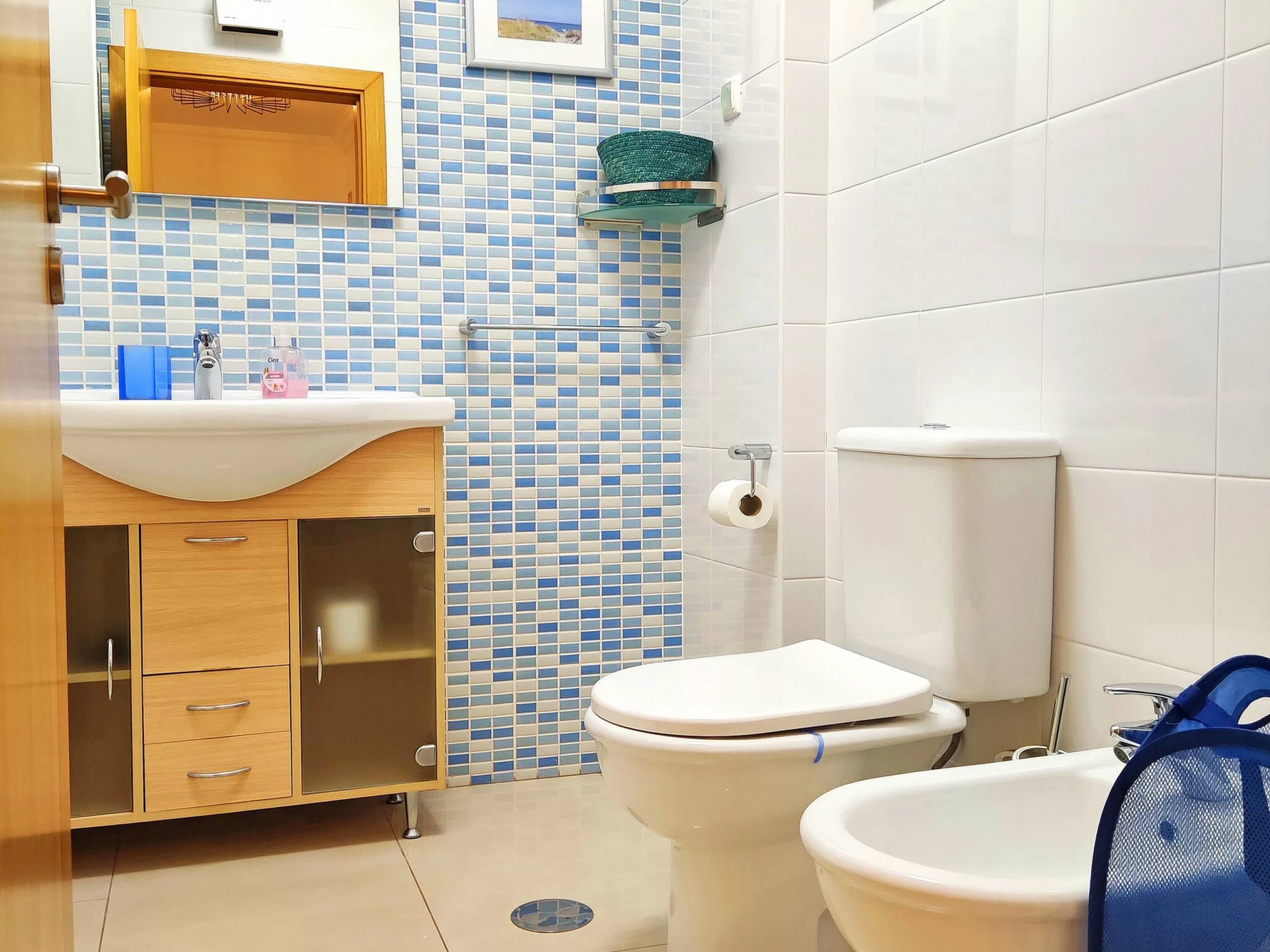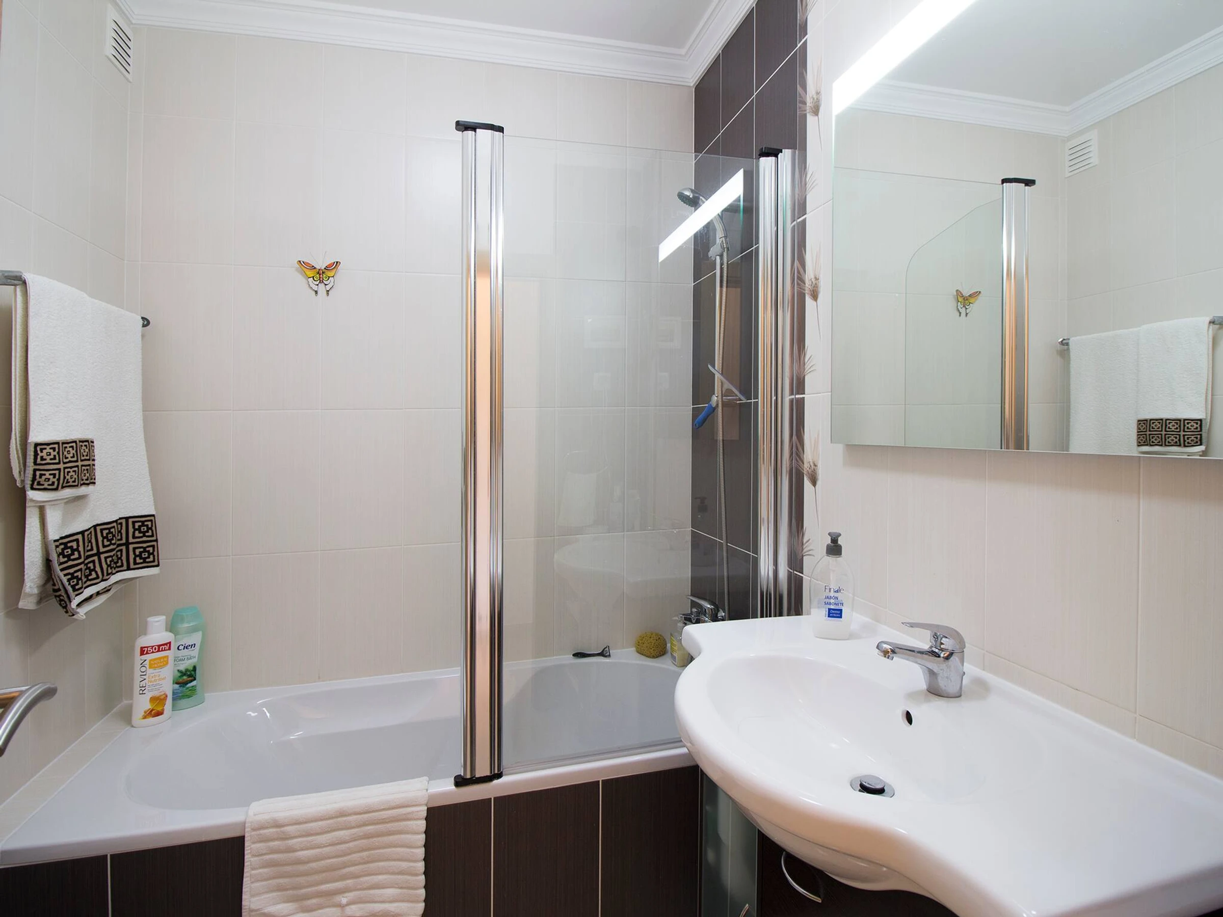 Geräumige und luxuriös möblierte und ausgestattete Wohnung bietet 2 vollwertige Schlafzimmer (eines mit Kingsize-Bett und das andere mit 2 Einzelbetten), 2 vollwertige Badezimmer, großes Wohn-/Esszimmer mit Zugang zur großen Terrasse mit eingebauter Grillstelle und reichlich Mobiliar, das Komfort und Sonne den ganzen Tag über bietet, große voll ausgestattete Küche mit Geschirrspüler, Waschmaschine, Kühl-/Gefrierschrank, Mikrowelle, Wasserkocher, Toaster, Kaffeemaschine, Tresor, Klimaanlage in allen Räumen, Bettwäsche, Handtücher, Kabel-TV, High-Speed-WLAN, Bluetooth-Lautsprecher, Strandtücher und Sonnenschirme, bei Bedarf Babybett und -stuhl sowie wöchentlicher Reinigungsservice, Wechsel von Bettwäsche und Handtüchern usw., großer L-förmiger Infinity-Außenpool, Kinderpool, zwei Tennisplätze und ein sehr gut gepflegter Gemeinschaftsgarten mit zahlreichen Sonnenliegen, die die Wohnung komfortabel und perfekt für kurz- und langfristige Aufenthalte machen.