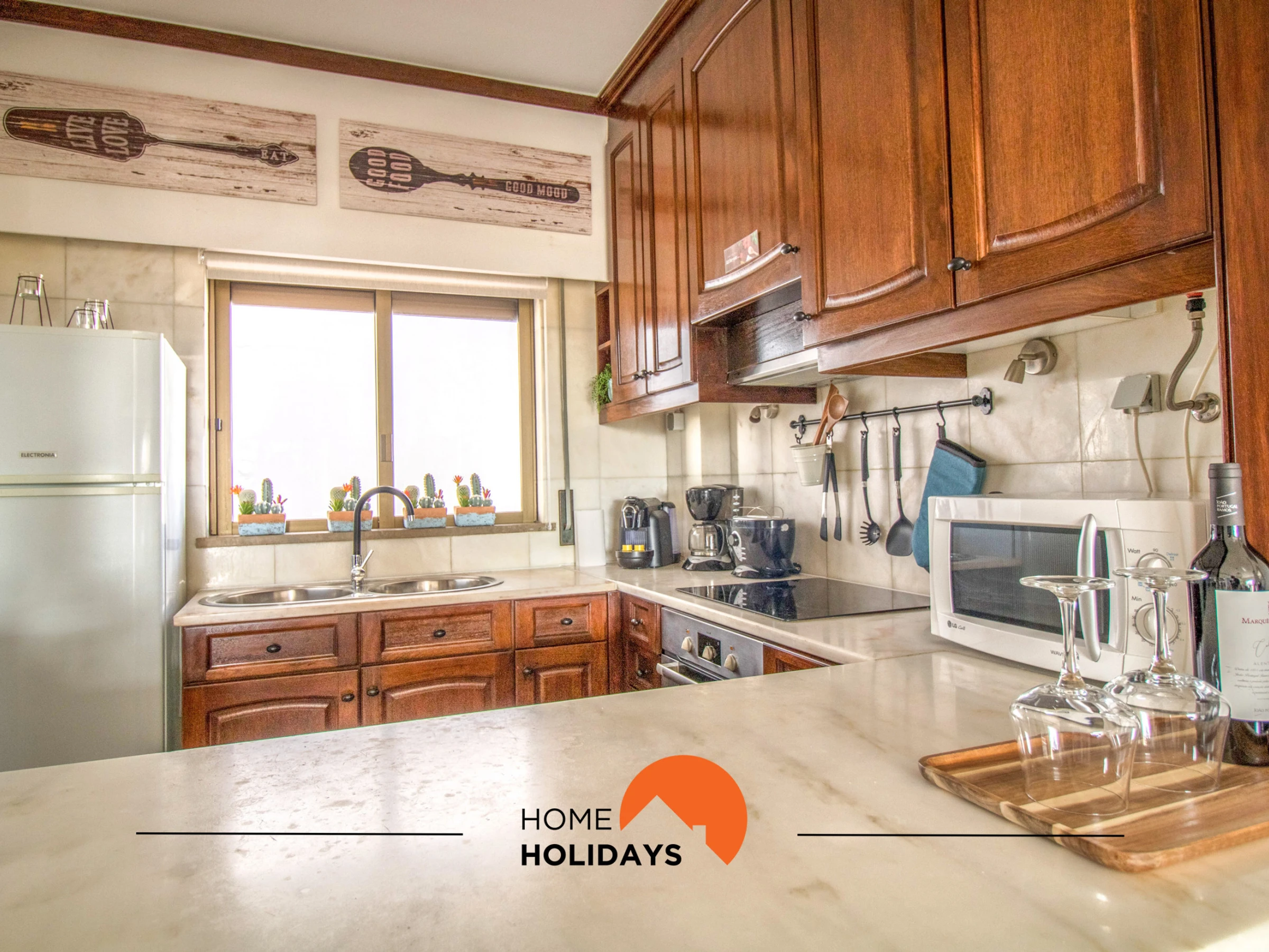 Dieses offene küche, elektrisches kochfeld, ist ausgestattet in kühlschrank, mikrowelle, backofen, gefrierschrank, geschirr/besteck, kochutensilien, kaffeemaschine, toaster, wasserkocher und herdplatte.