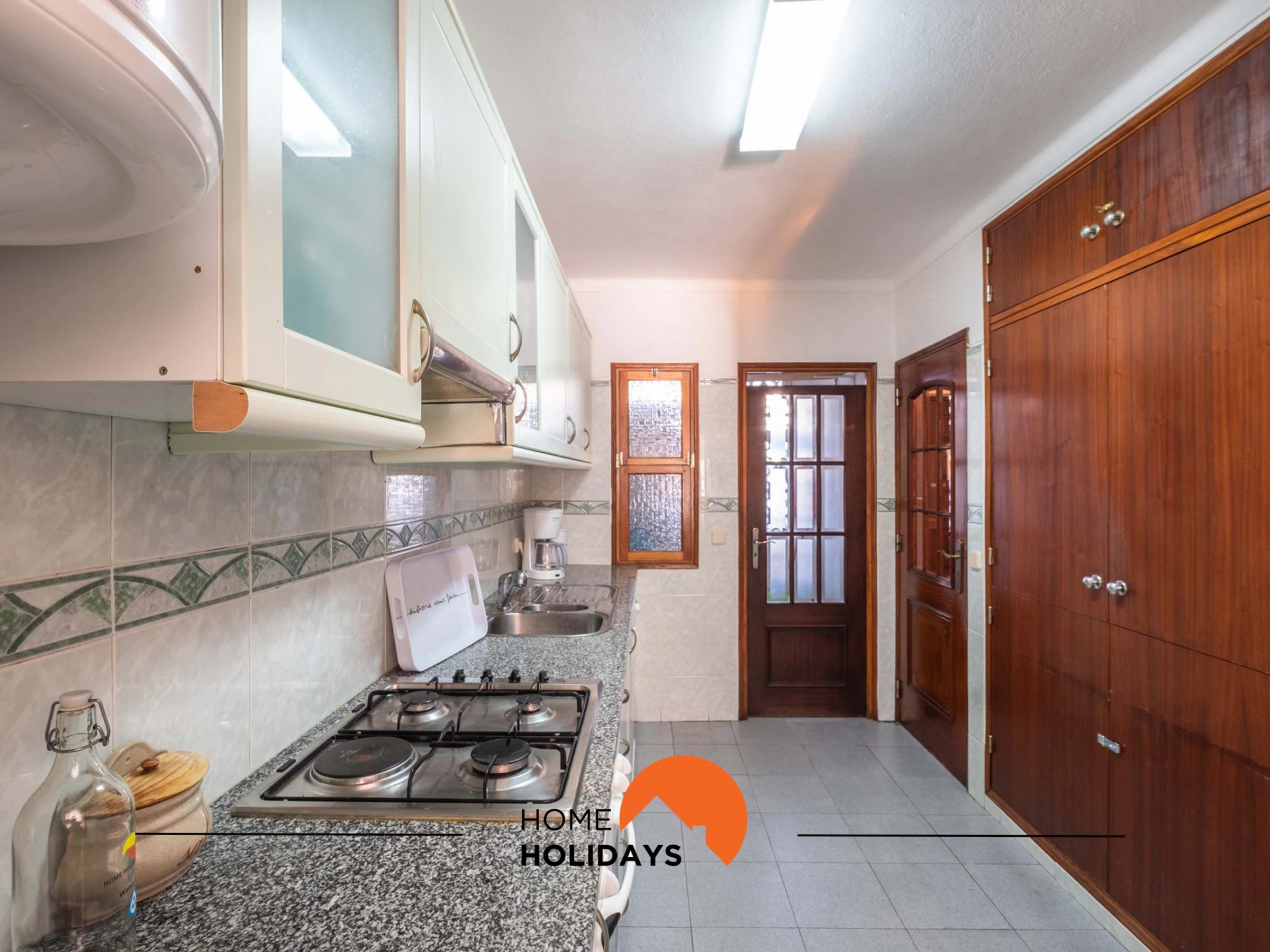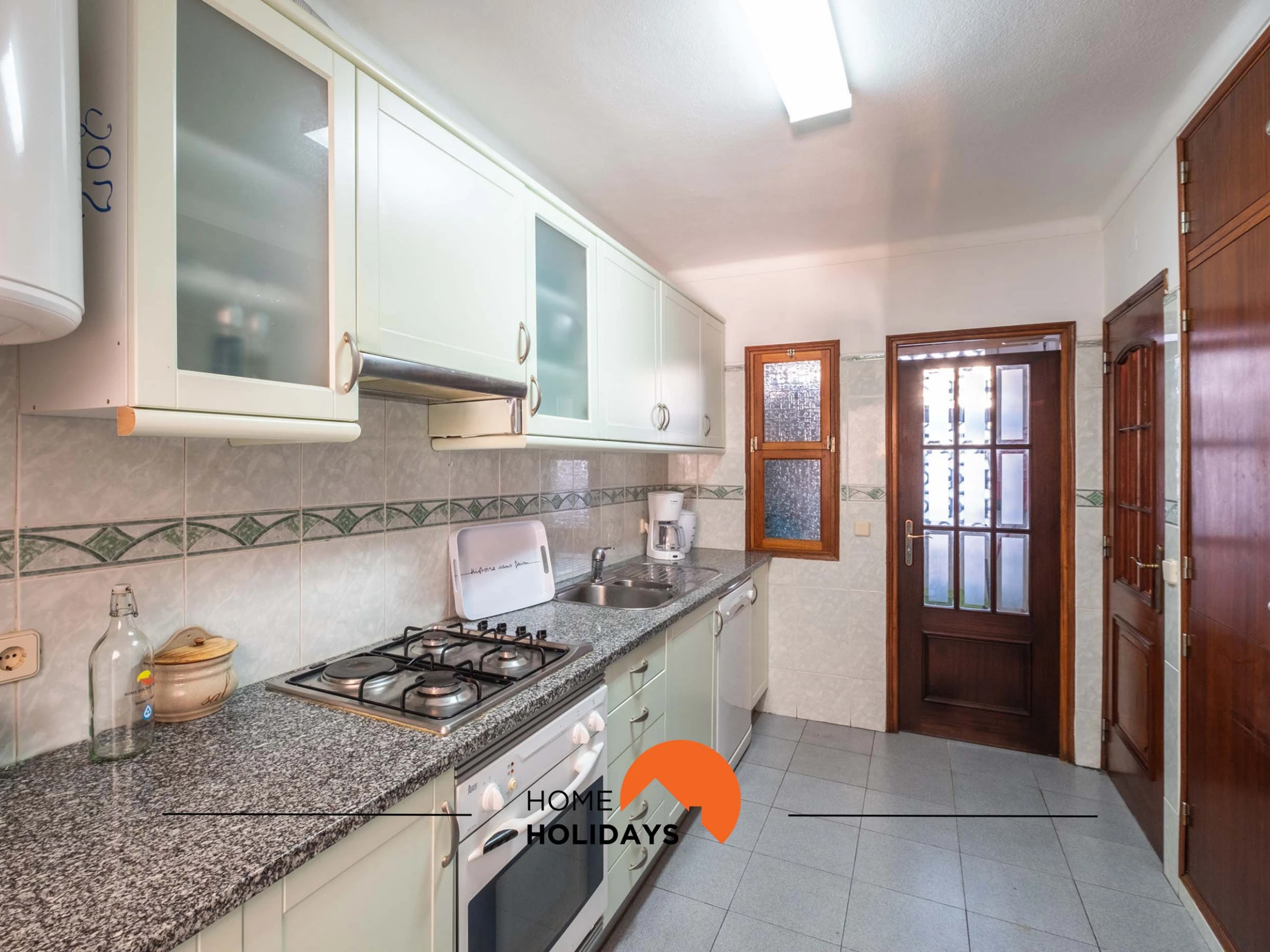 Dieses separate küche, elektrisches kochfeld, ist ausgestattet in kühlschrank, mikrowelle, backofen, gefrierschrank, spülmaschine, geschirr/besteck, kaffeemaschine, toaster, wasserkocher und herdplatte.