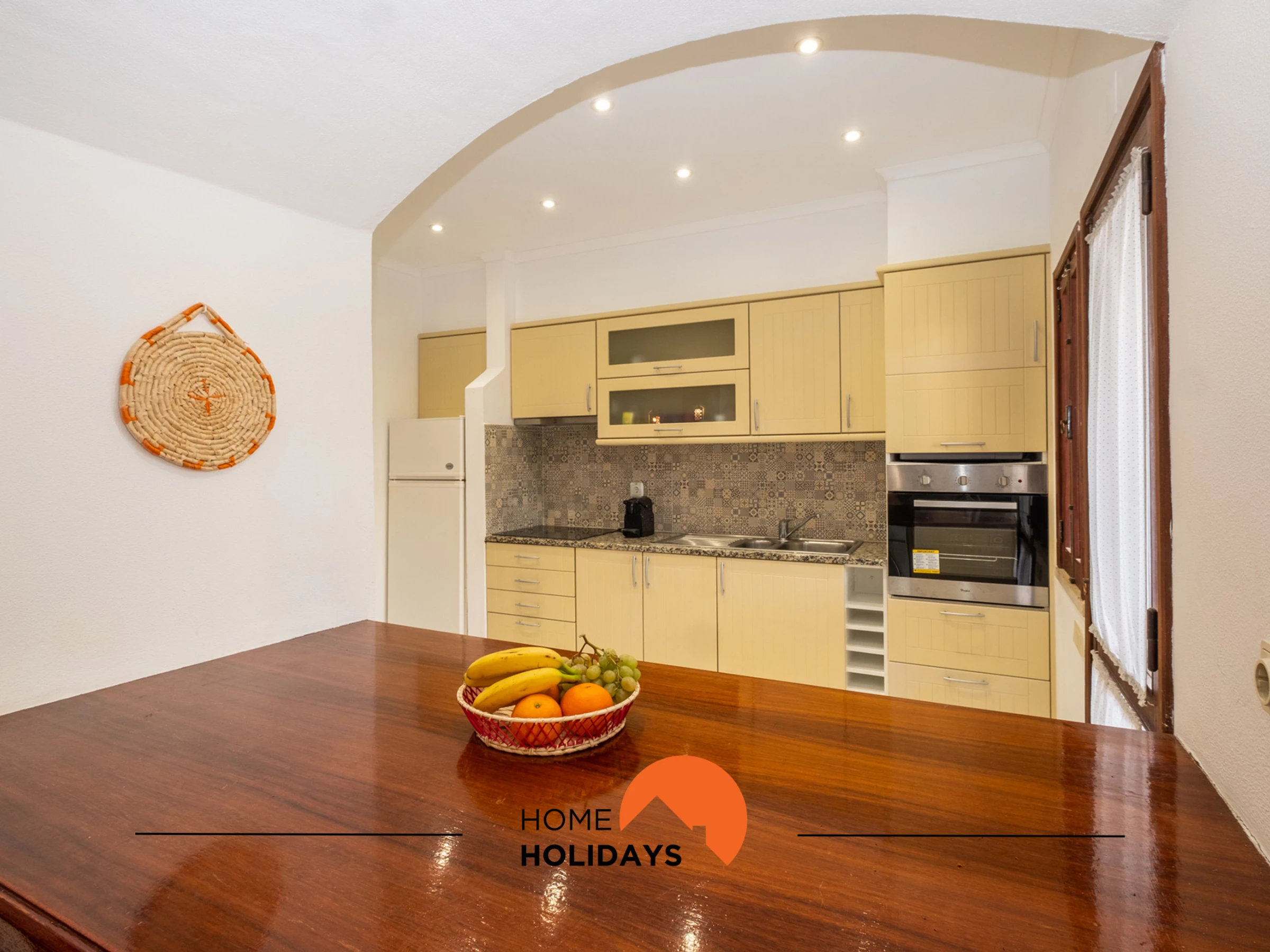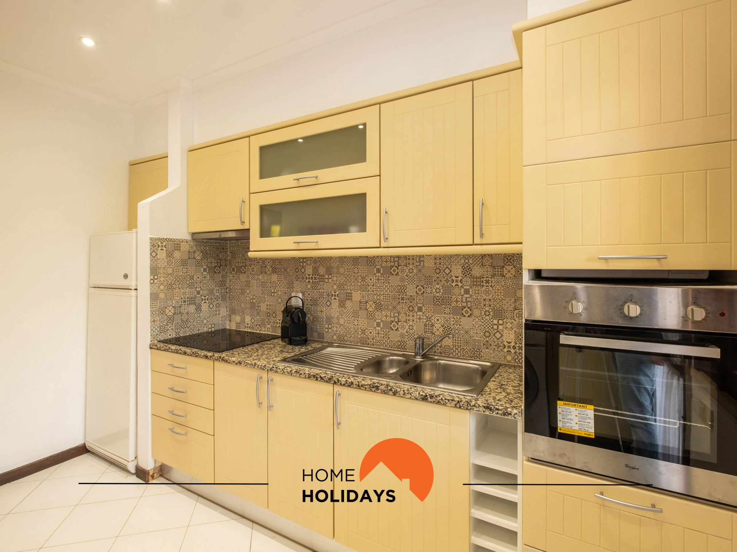 Dieses offene küche, elektrisches kochfeld, ist ausgestattet in kühlschrank, mikrowelle, backofen, gefrierschrank, spülmaschine, geschirr/besteck, kochutensilien, kaffeemaschine, toaster, wasserkocher und herdplatte.