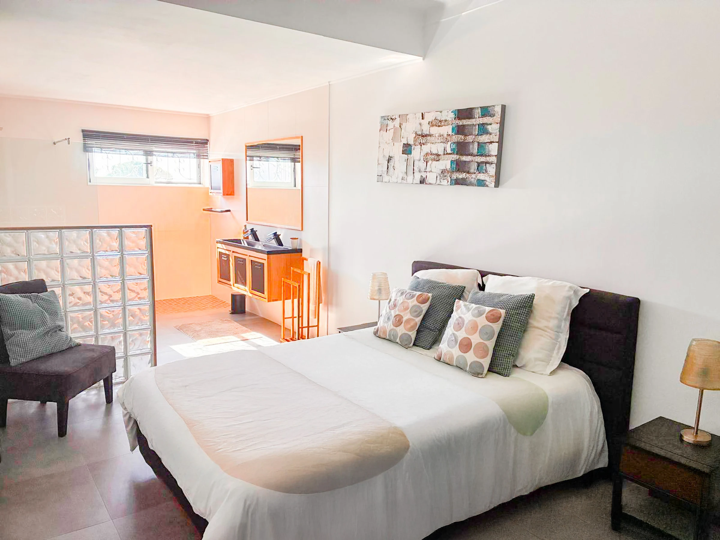 Die Unterkunft verfügt über mehrere komfortable Zimmer, die größtenteils mit Doppelbetten ausgestattet sind, wobei es auch ein Zimmer mit zwei Einzelbetten gibt. Alle Zimmer verfügen über ein eigenes Badezimmer mit Dusche, die allen Gästen Privatsphäre und Komfort bieten und durch ein zusätzliches Badezimmer ergänzt werden.