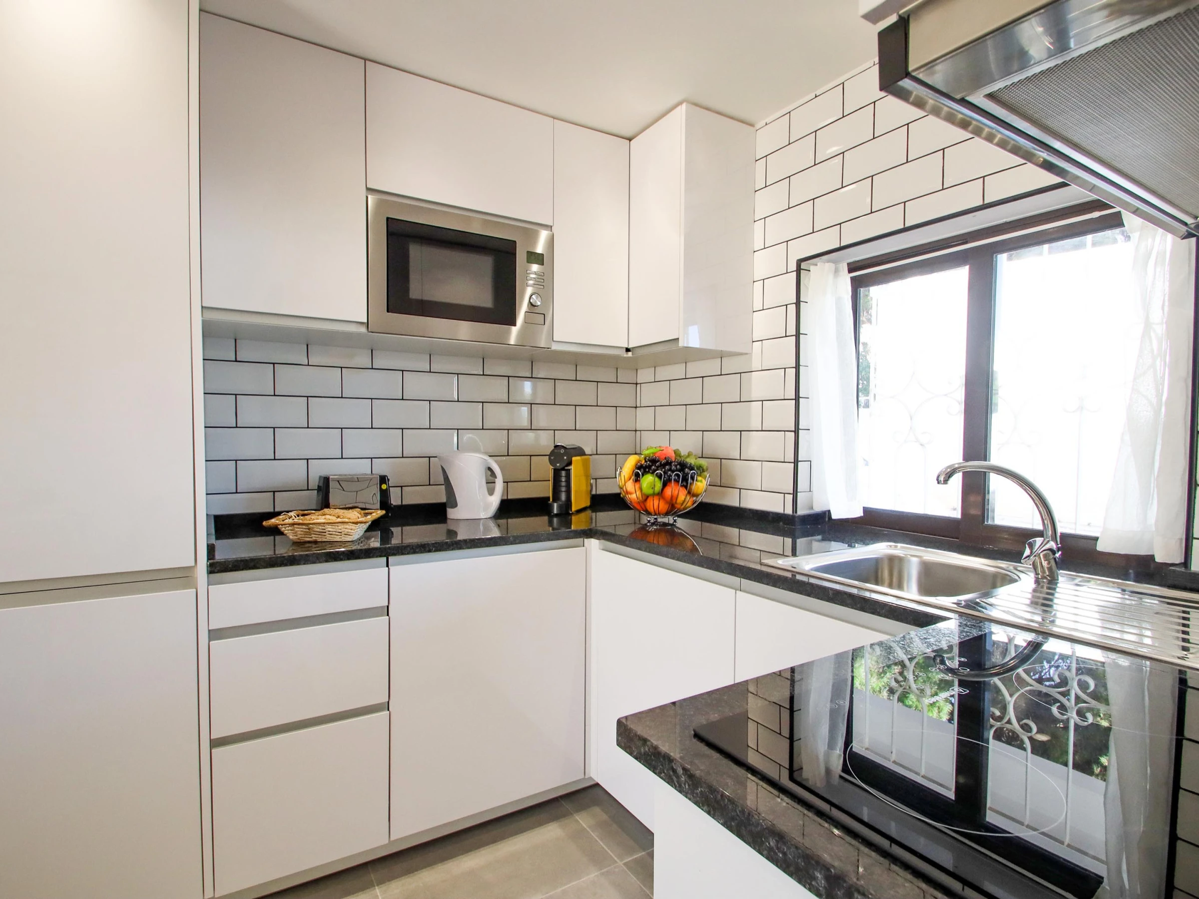 Die offene Küche ist komplett ausgestattet und bietet alles, was Sie benötigen, um Ihre Mahlzeiten praktisch zuzubereiten.