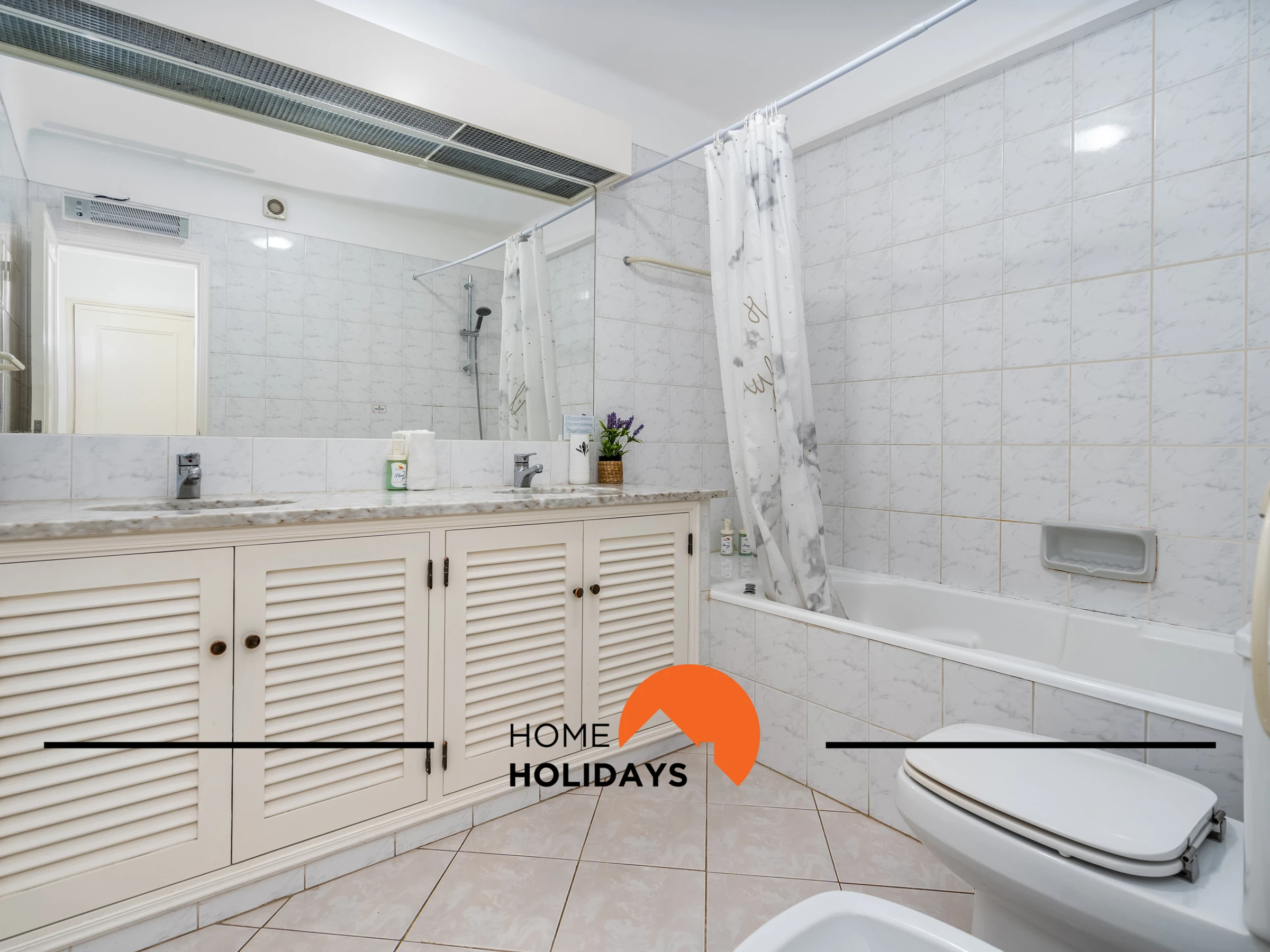 Die Unterkunft verfügt über gartenmöbel, 19 m² terrasse, waschmaschine, trockner, bügeleisen/-brett, internet (WLAN), haartrockner, balkon, klimaanlage in der ganzen unterkunft, swimming-pool gemeinschaftlicher swimming-pool, parkplatz im freien, 1 Fernseher, sat-tv.