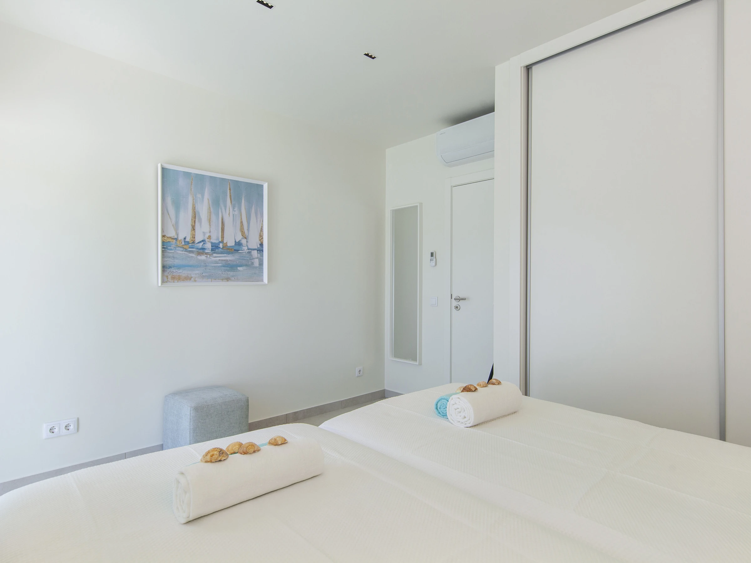 Mit 3 gut verteilten Zimmern bietet die Immobilie einen komfortablen und entspannenden Aufenthalt. Das Hauptschlafzimmer ist eine Doppelsuite mit einem atemberaubenden Blick aufs Meer. Das zweite Doppelzimmer und das dritte Zweibettzimmer haben direkten Zugang zum Pool und schaffen eine einzigartige Atmosphäre der Ruhe. Darüber hinaus verfügt das Haus über ein gemeinsames Badezimmer.