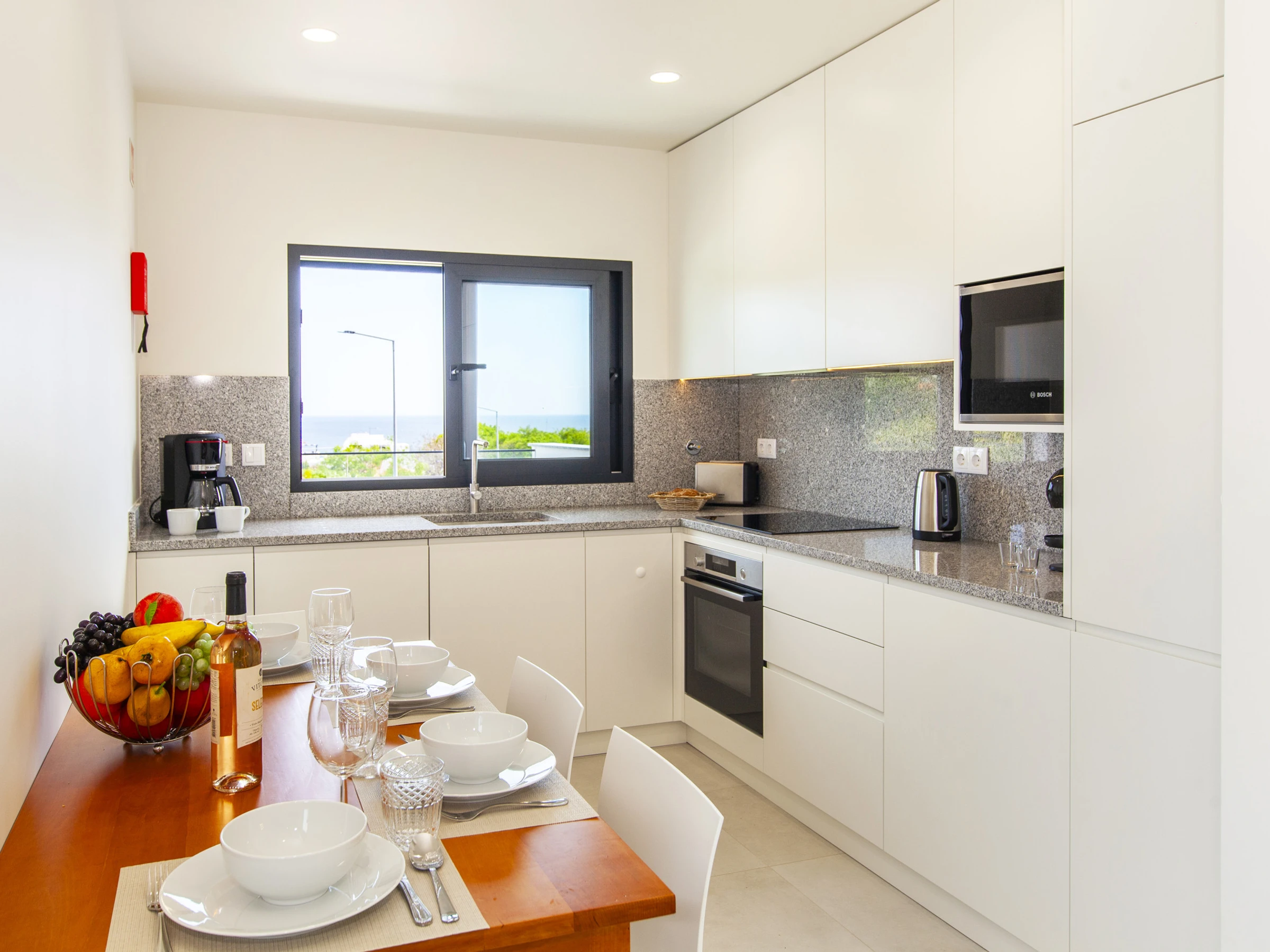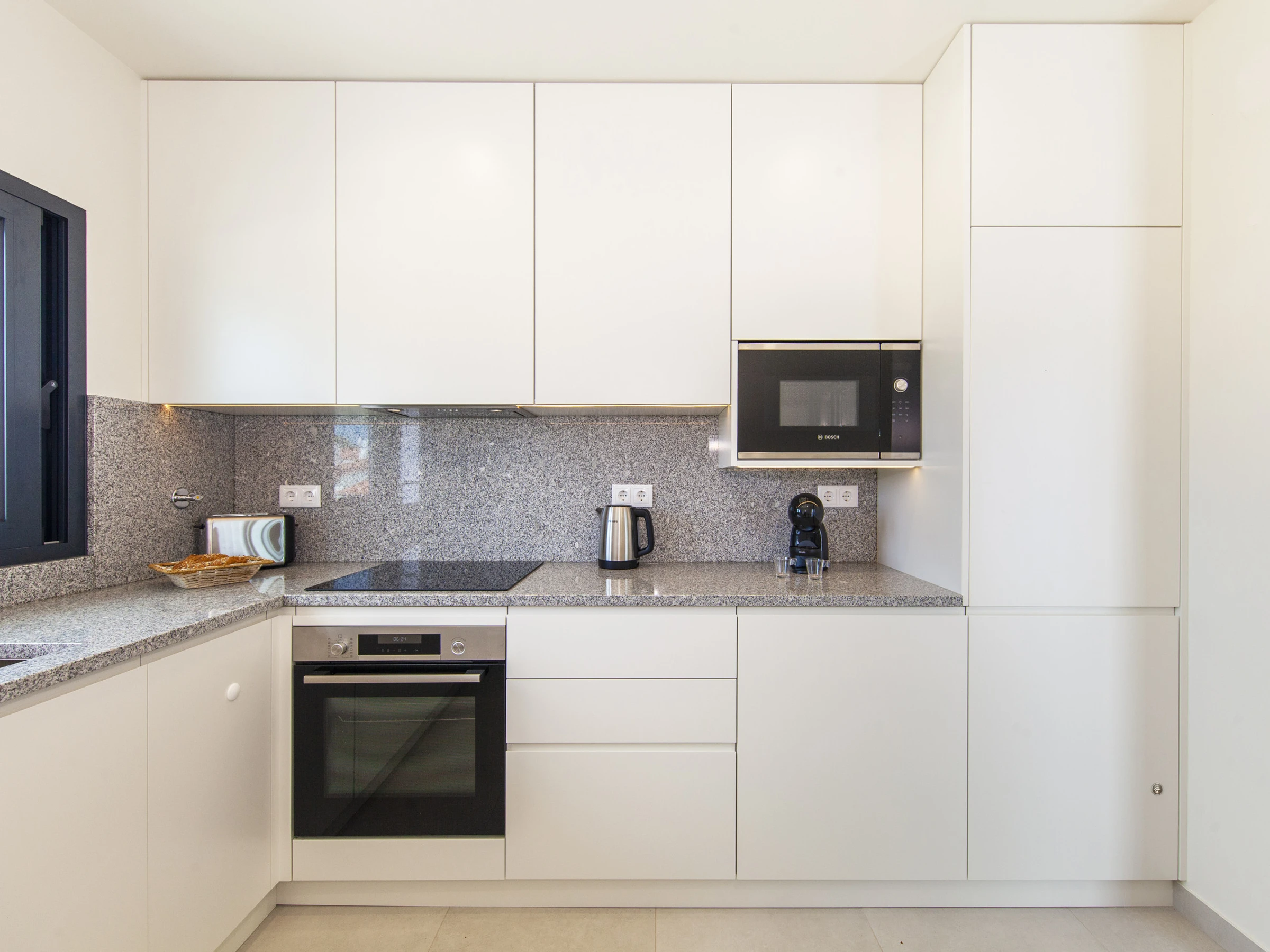 Das Wohn- und Esszimmer ist geräumig und verfügt über eine Terrasse mit Blick aufs Meer, perfekt für gemeinsame Momente. Die moderne Küche, ebenfalls mit Meerblick, ist vollständig ausgestattet, um maximalen Komfort zu gewährleisten.
