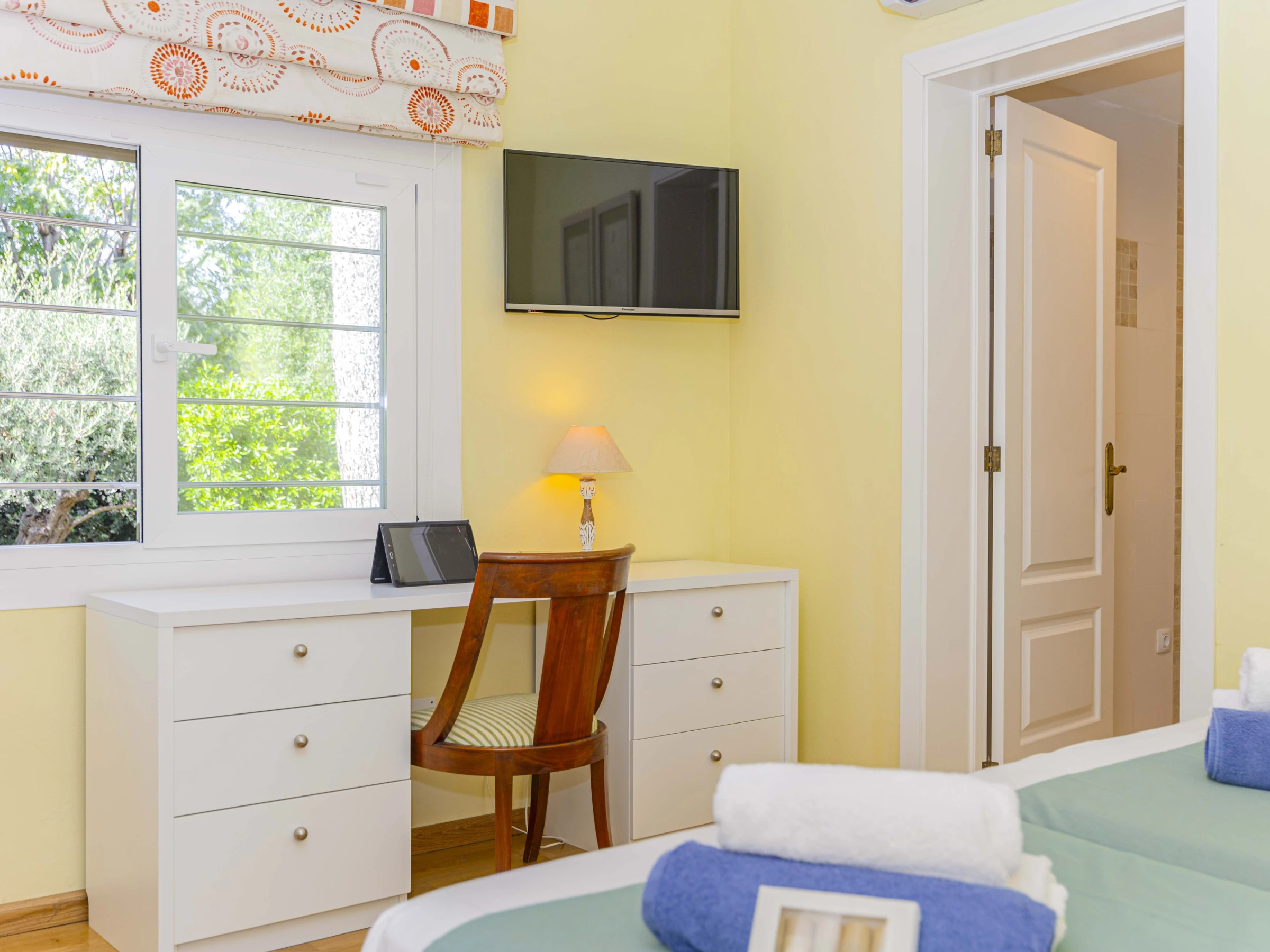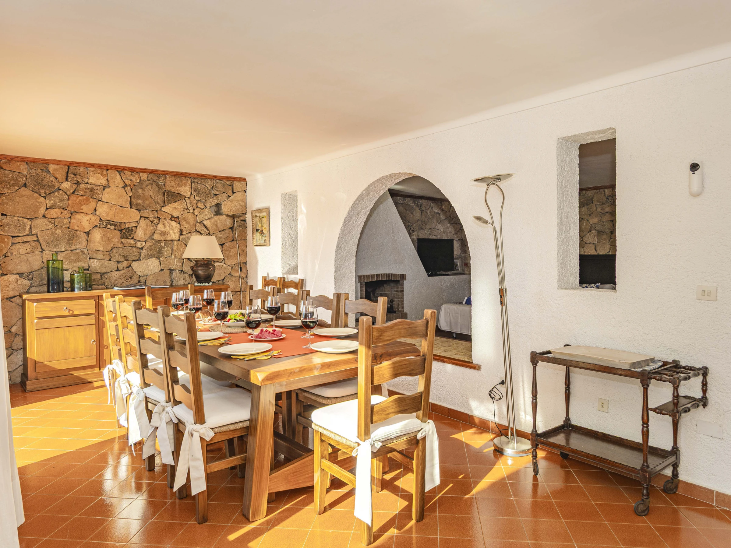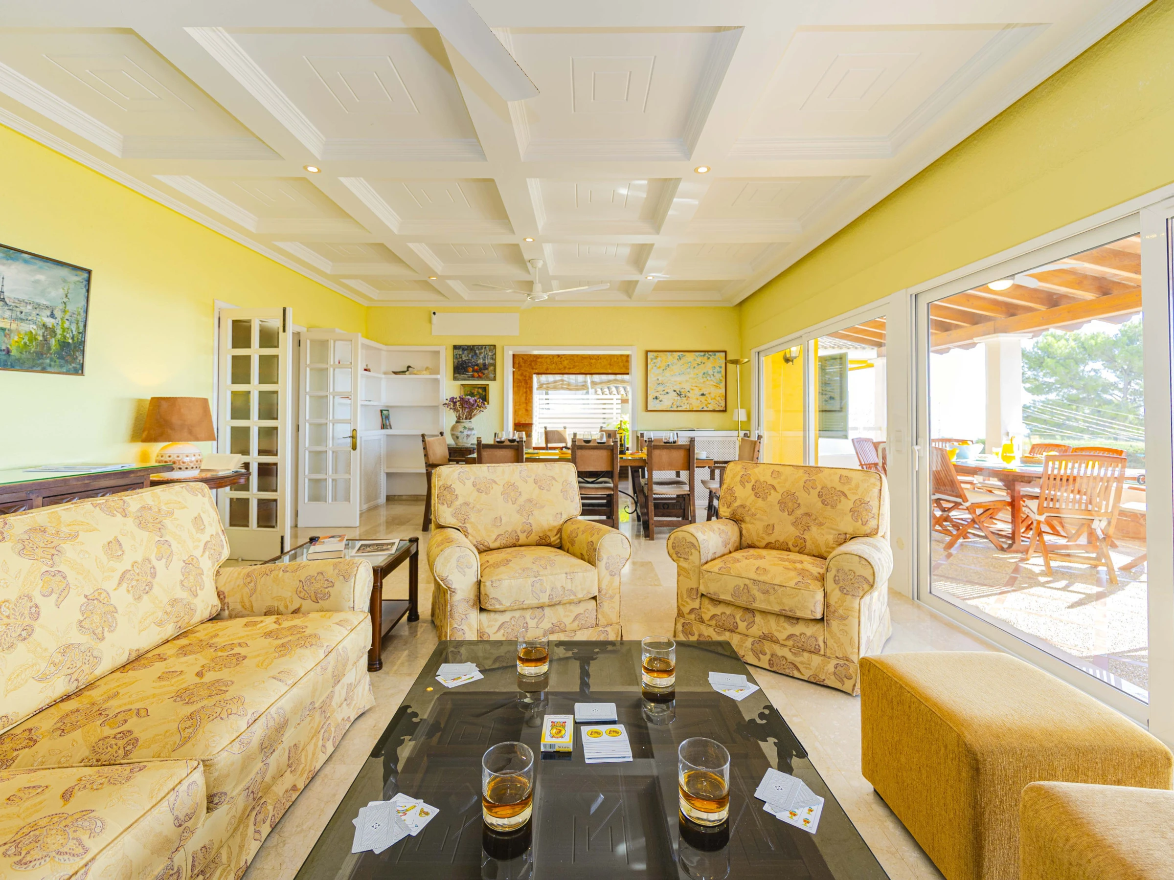 Die Villa verfügt über vier Schlafzimmer und bietet Platz für bis zu acht Personen. Sie erstreckt sich über zwei Ebenen.