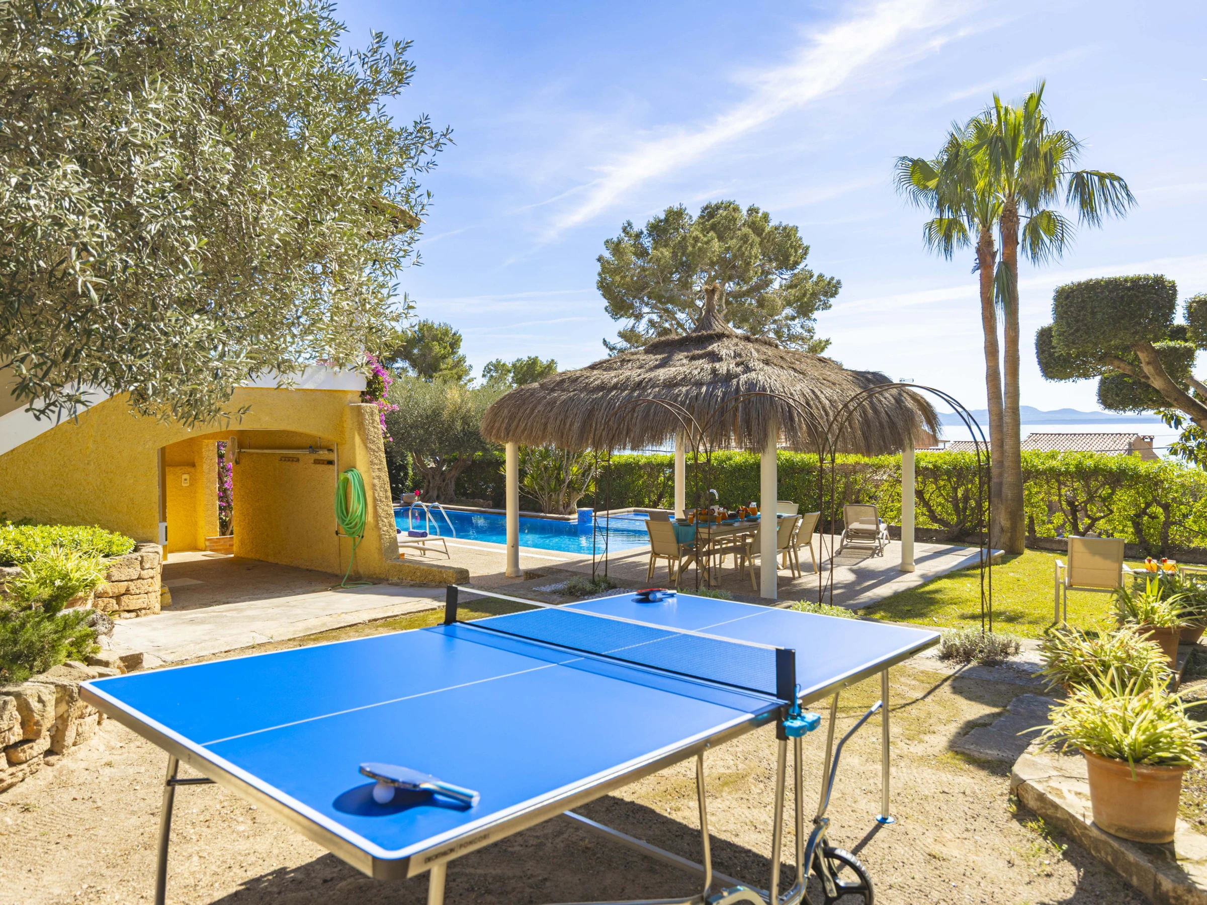 Willkommen in Ihrem idealen Urlaubsort im Norden Mallorcas. In der ruhigen Wohngegend von Alcanada, nur wenige Schritte vom Meer entfernt, bietet die Villa Farrutxet einen komfortablen Rückzugsort. Die Lage ist besonders geeignet für Familien und Gruppen, die eine entspannte Umgebung mit Nähe zu Natur und Küste suchen.