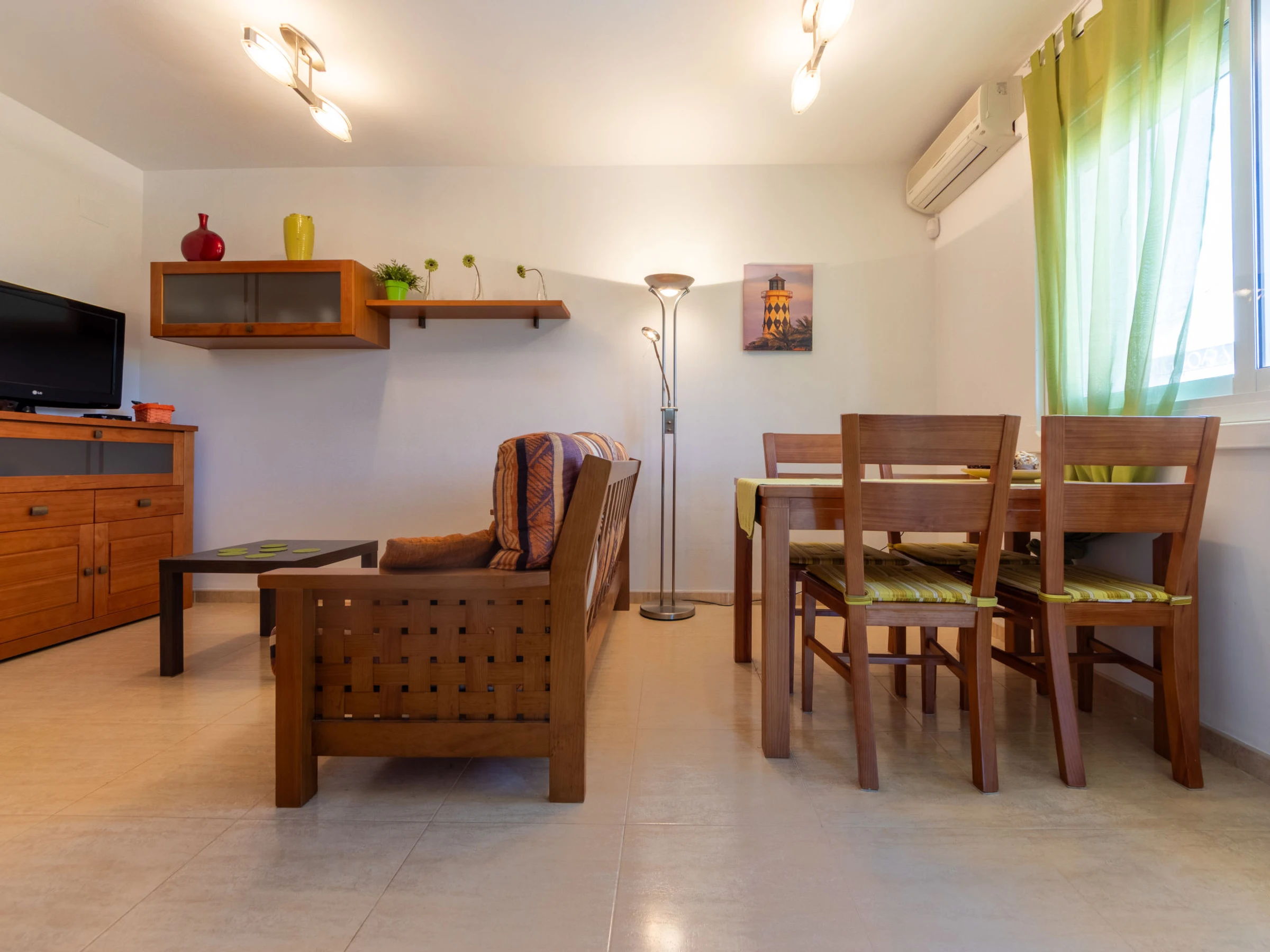 "Merida", 3-Zimmer-Wohnung 43 m2. Rustikal eingerichtet: Wohn-/Esszimmer mit Digital-TV, Klimaanlage und Warmluftheizung. Ausgang zum Balkon. 1 Zimmer mit 1 franz. Bett (1 x 150 cm, Länge 190 cm). 1 Zimmer, ohne Schrank mit 1 franz. Bett (1 x 135 cm, Länge 190 cm). Offene Küche (Backofen, 3 Glaskeramikplatten, Toaster, Wasserkocher, Mikrowelle, Tiefkühler, elektrische Kaffeemaschine). Dusche/Bidet/WC. Heizung nicht in allen Räumen. Sicht auf das Meer. Zur Verfügung: Waschmaschine, Bügeleisen, Haartrockner. Internet (WLAN, gratis). [hidden] ESFCTU[hidden][hidden]0000000[hidden]-166