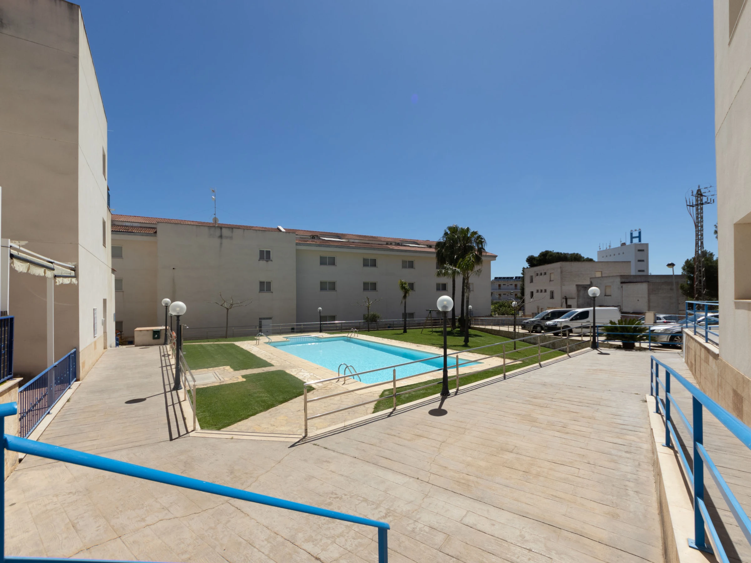 Merida: Appartementhaus "Merida". Im Ort, 3 km vom Zentrum von Sant Carles de la Rapita, im Bezirk Montsia, 100 m vom Meer, 100 m vom Strand. Zur Mitbenutzung: Schwimmbad (8 x 4 m, saisonale Verfügbarkeit: [hidden] - [hidden] Aussendusche. Im Hause: Fahrstuhl, Waschmaschine. Parkplatz Nr. 4. Einkaufsgeschäft 500 m, Lebensmittelgeschäft 3 km, Supermarkt 3 km, Einkaufszentrum 4 km, Restaurant 800 m, Bäckerei 500 m, Bushaltestelle "Hife" 50 m, Bahnstation "l'Aldea" 20 km, Sandstrand "Playa Cementera" 1.3 km, Steinstrand "Merida" 100 m (klein), Thermalbad "Montbrió del Camp" 80 km. Sporthafen 3 km, Golfplatz (18 Loch) 40 km, Surfschule 3 km, Segelschule 3 km, Tennis 1 km. Nahe gelegene Sehenswürdigkeiten: Port Aventura Salou 90 km, Vinaroz 30 km, Parque Natural del Delta 25 km, Isla de Buda Amposta 25 km, Casa de Fusta Encanyssada 25 km. Wandergebiete: La Foradada San Carlos de la Rápita 5 km.