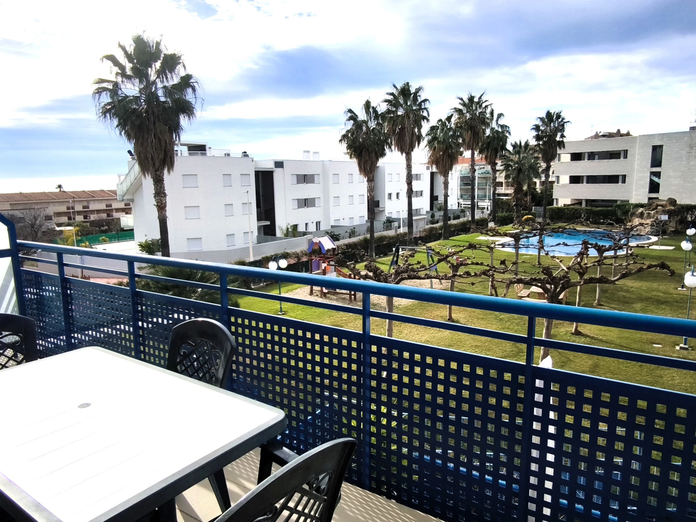 Es verfügt über einen Aufzug, Garten, eingezäuntes Grundstück, 10 m² Terrasse, Kinderbereich, Heizung-Wärmepumpe, Klimaanlage im Wohnzimmer und in einigen Schlafzimmern, Gemeinschaftspool, überdachten Parkplatz im selben Gebäude und Fernsehen.