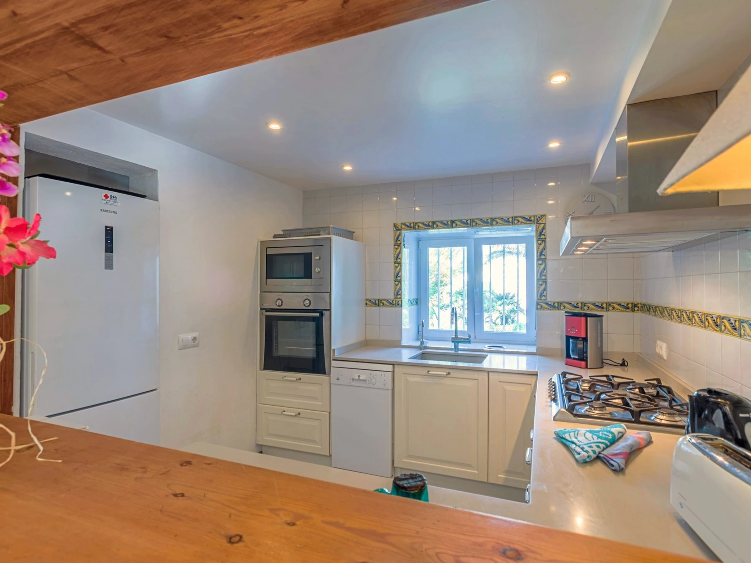 Dieses küche, ist ausgestattet in mikrowelle, backofen, kaffeemaschine und toaster.