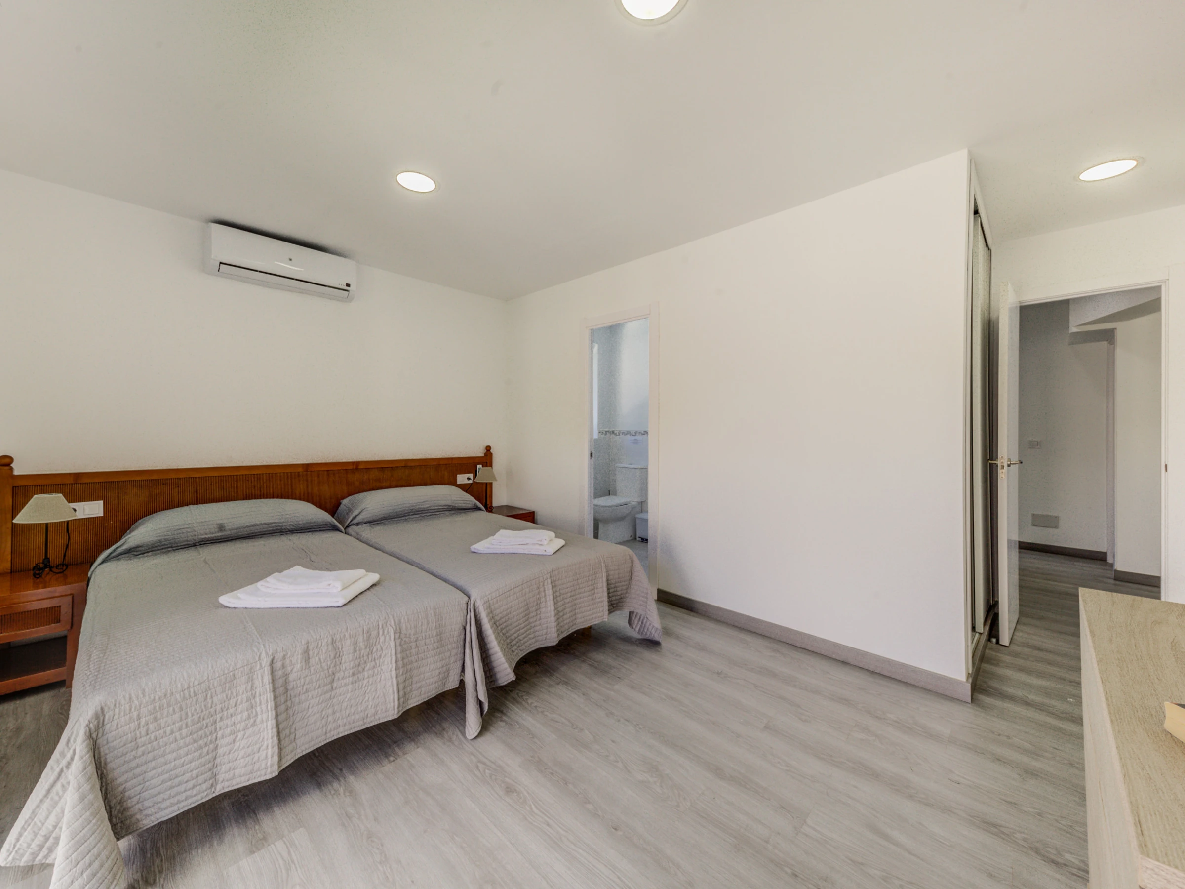 Die 3 Schlafzimmer sind geräumig und komfortabel, darauf ausgelegt, optimale Erholung zu bieten. Das Hauptschlafzimmer verfügt über ein Doppelbett und die anderen beiden über jeweils zwei Einzelbetten. Jedes Schlafzimmer hat sein eigenes Badezimmer en suite, was Privatsphäre und Komfort für alle Gäste gewährleistet.