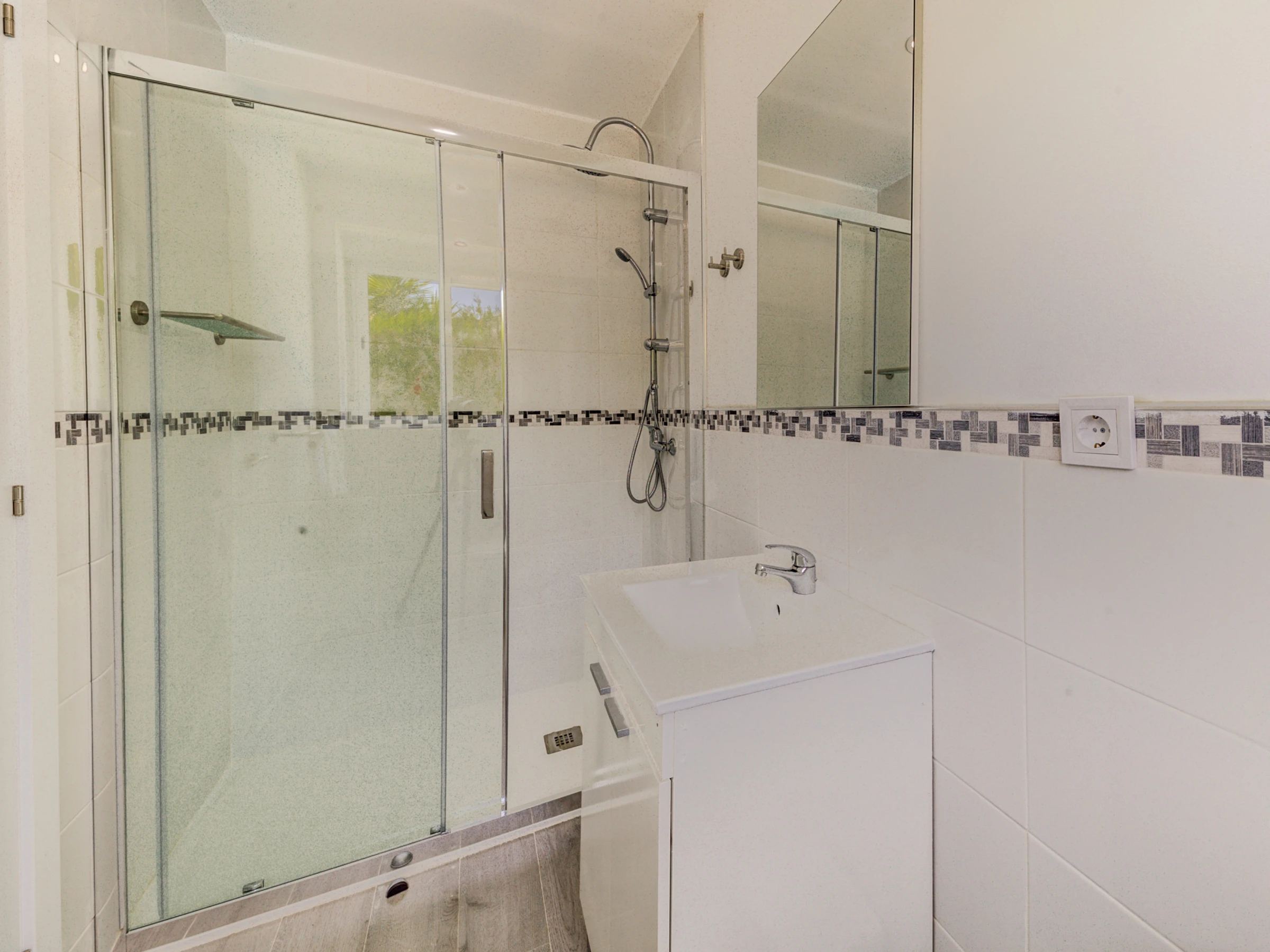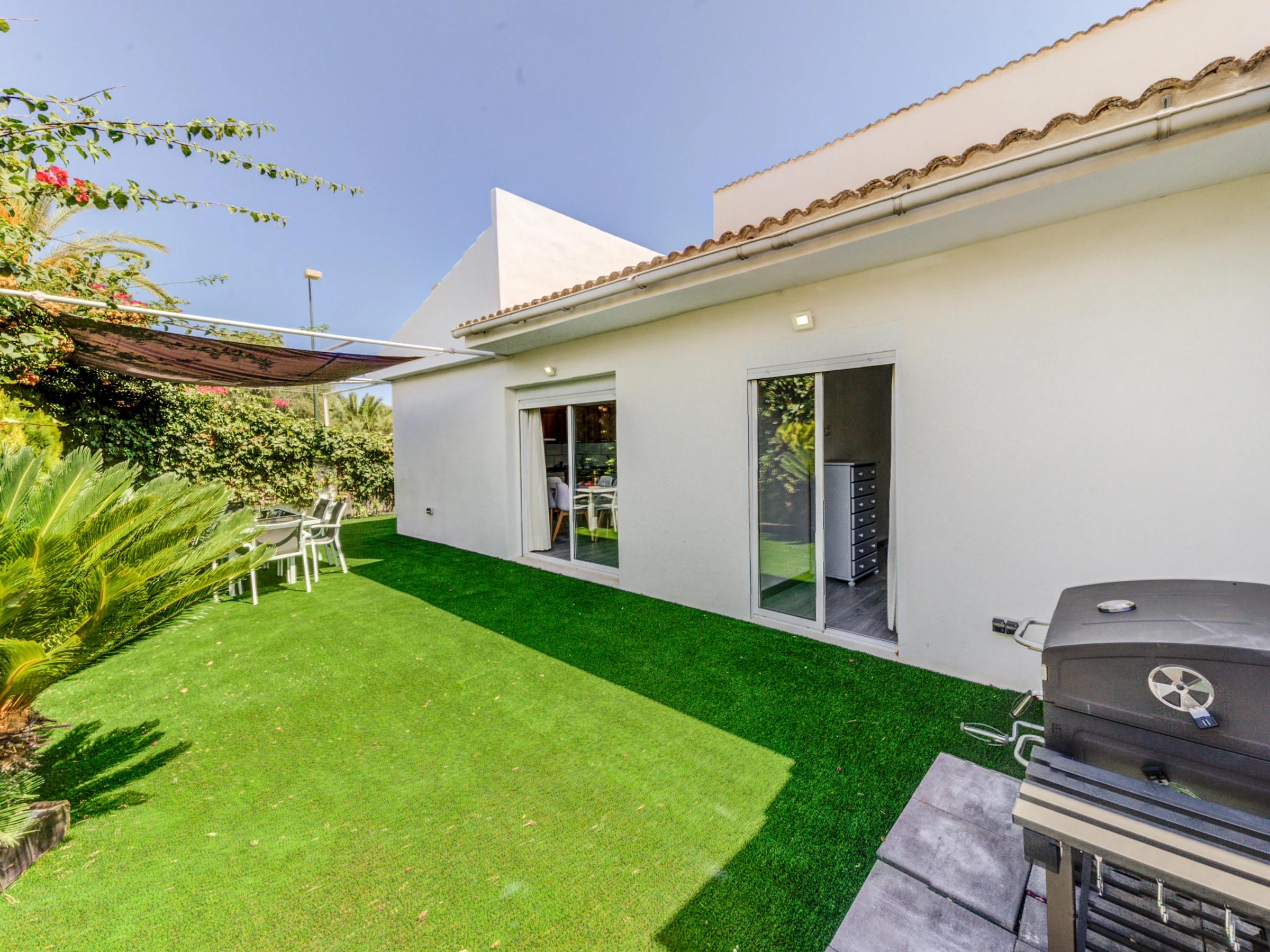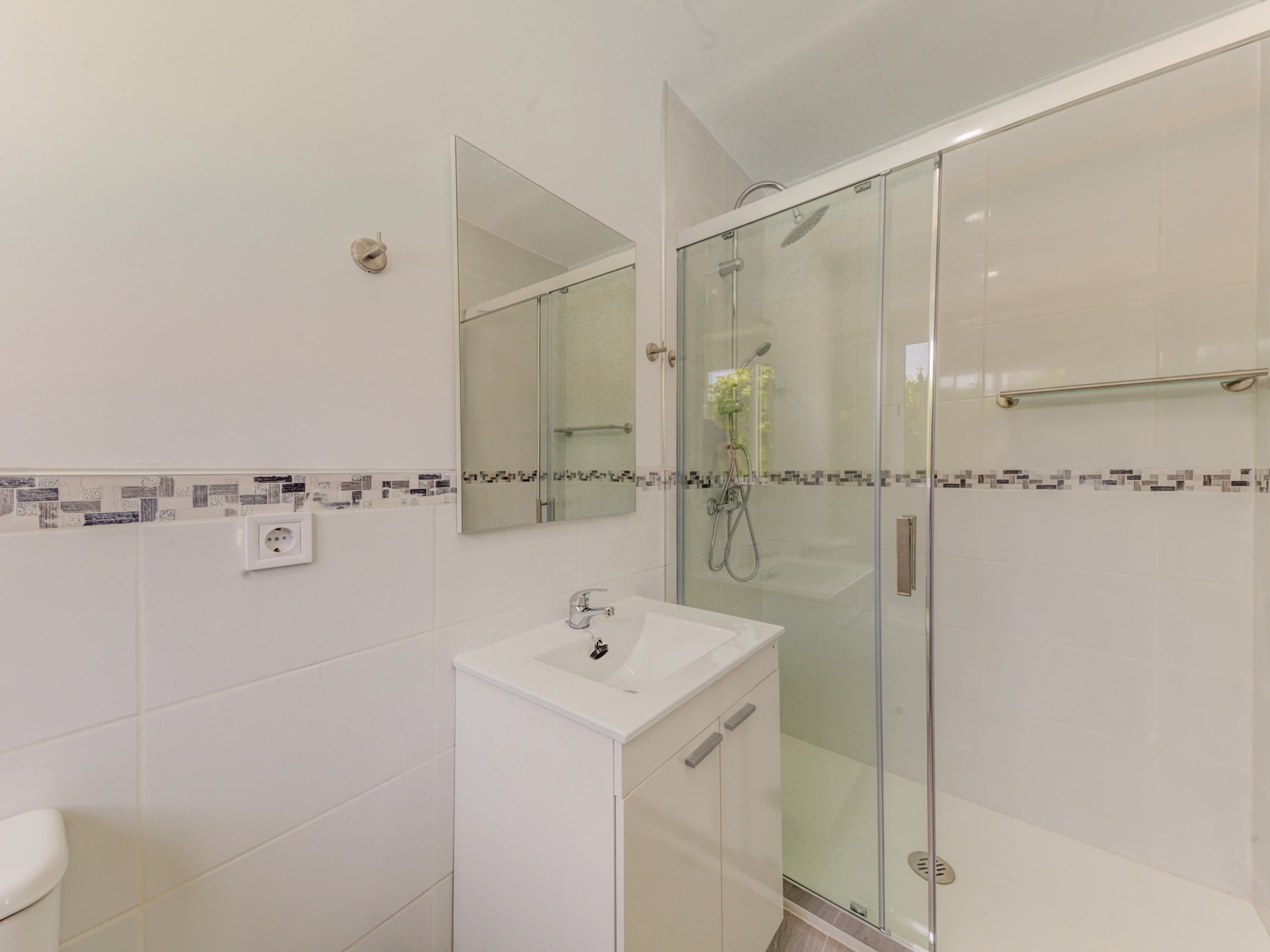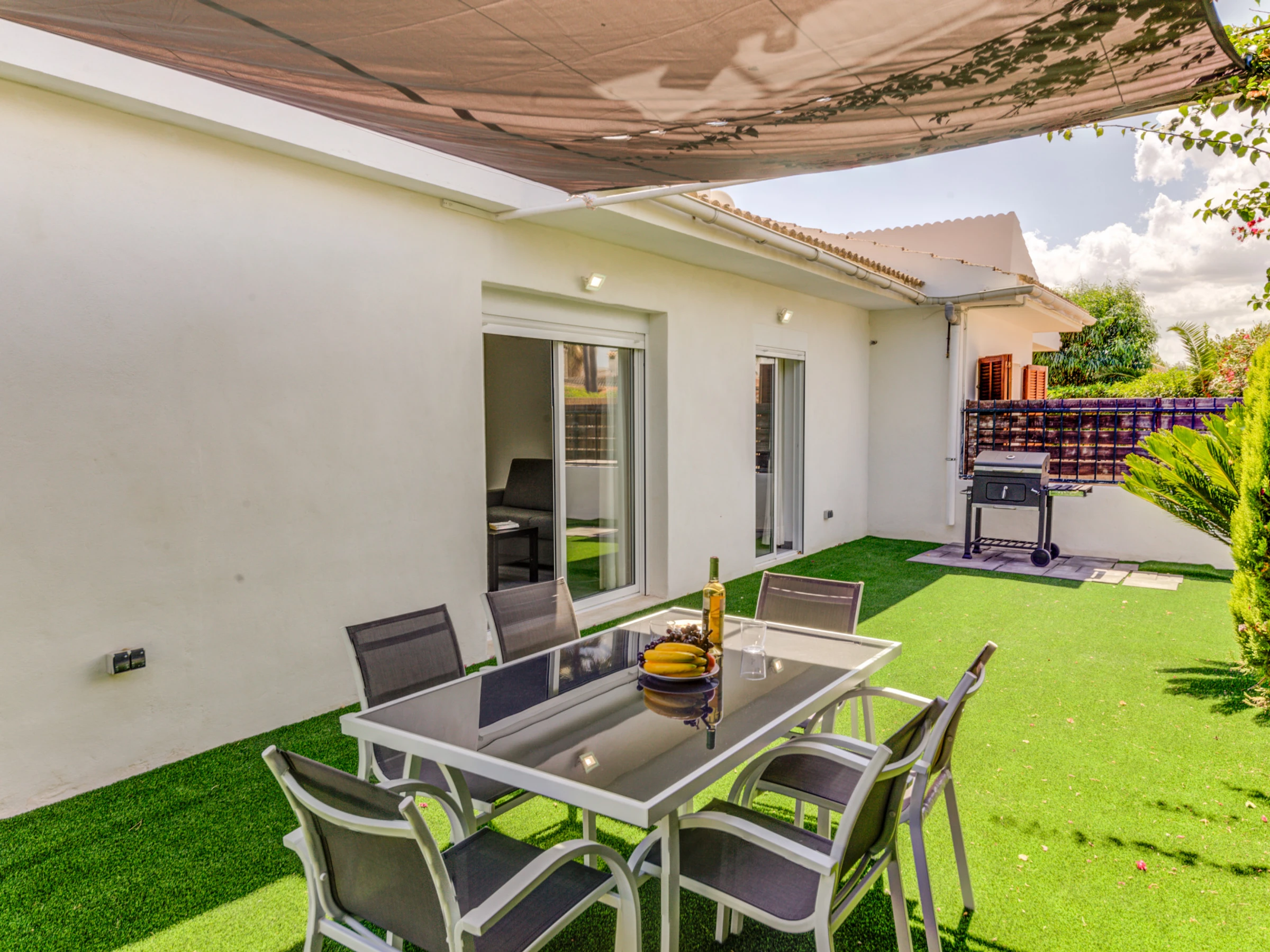 Im Inneren ist die Villa auf einer einzigen Ebene verteilt, was ihr eine geräumige und zugängliche Atmosphäre verleiht. Die Villa wurde 2019 vollständig renoviert und verbindet moderne Dekoration mit dem Komfort modernster Einrichtungen. Die Küche ist komplett mit hochwertigen Haushaltsgeräten ausgestattet und befindet sich neben dem Wohn-/Esszimmer, das sich direkt zu den Außenbereichen öffnet. Dies ermöglicht es, dass die Villa natürlich in den Außenbereich übergeht, wo Sie die mediterrane Brise und die Ausblicke der Umgebung genießen können.