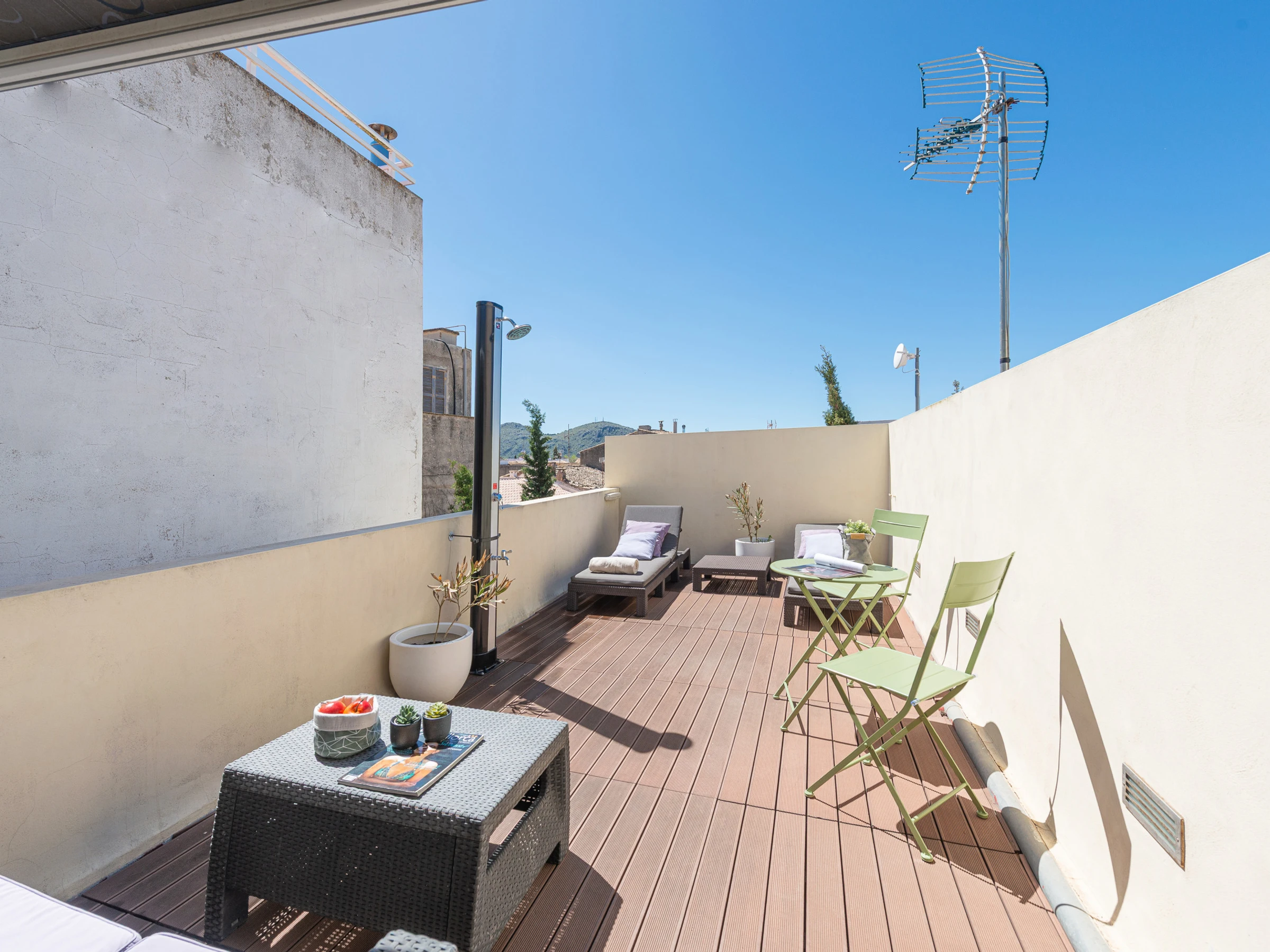 Oben bietet eine schöne Terrasse einen Blick auf das malerische Dorf, der ideale Ort zum Frühstücken in der Sonne oder zum Entspannen bei Sonnenuntergang.