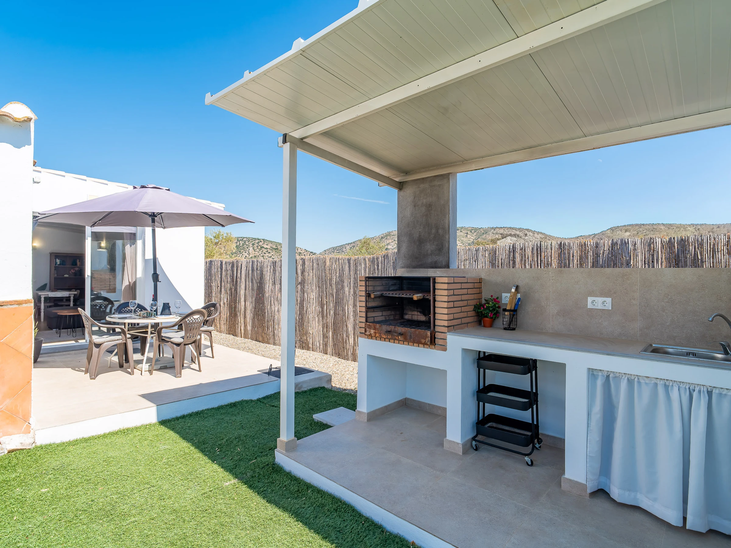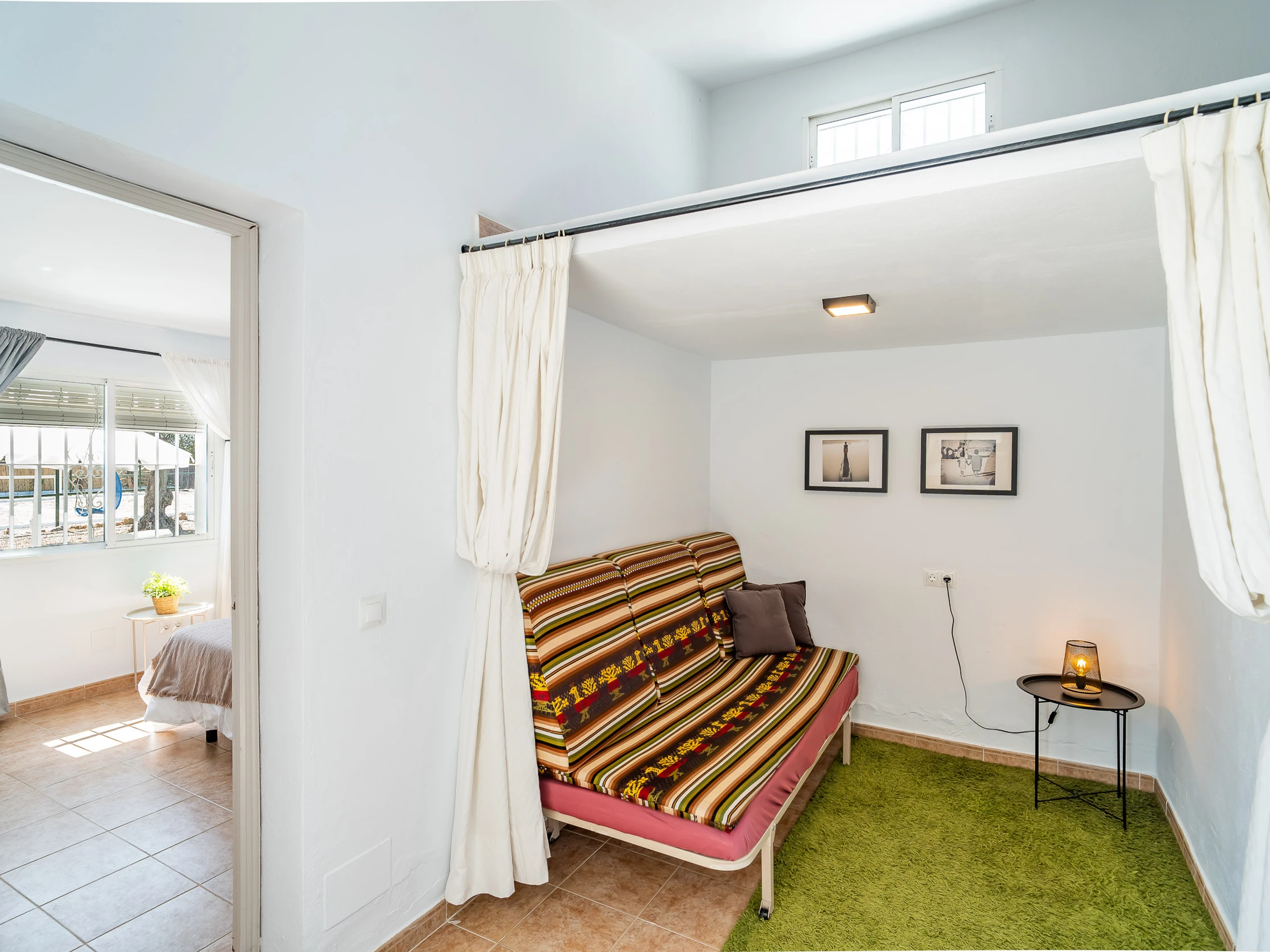 Verfügt über zwei Hauptschlafzimmer mit Doppelbetten und Kleiderschränken sowie einen dritten Bereich mit einem Schlafsofa vom Typ Klick-Klack. Es gibt zwei vollständige Badezimmer, eines im Inneren neben der Küche und ein anderes im Freien, das vom Schwimmbad aus zugänglich ist, was im Sommer sehr bequem ist 🚿.