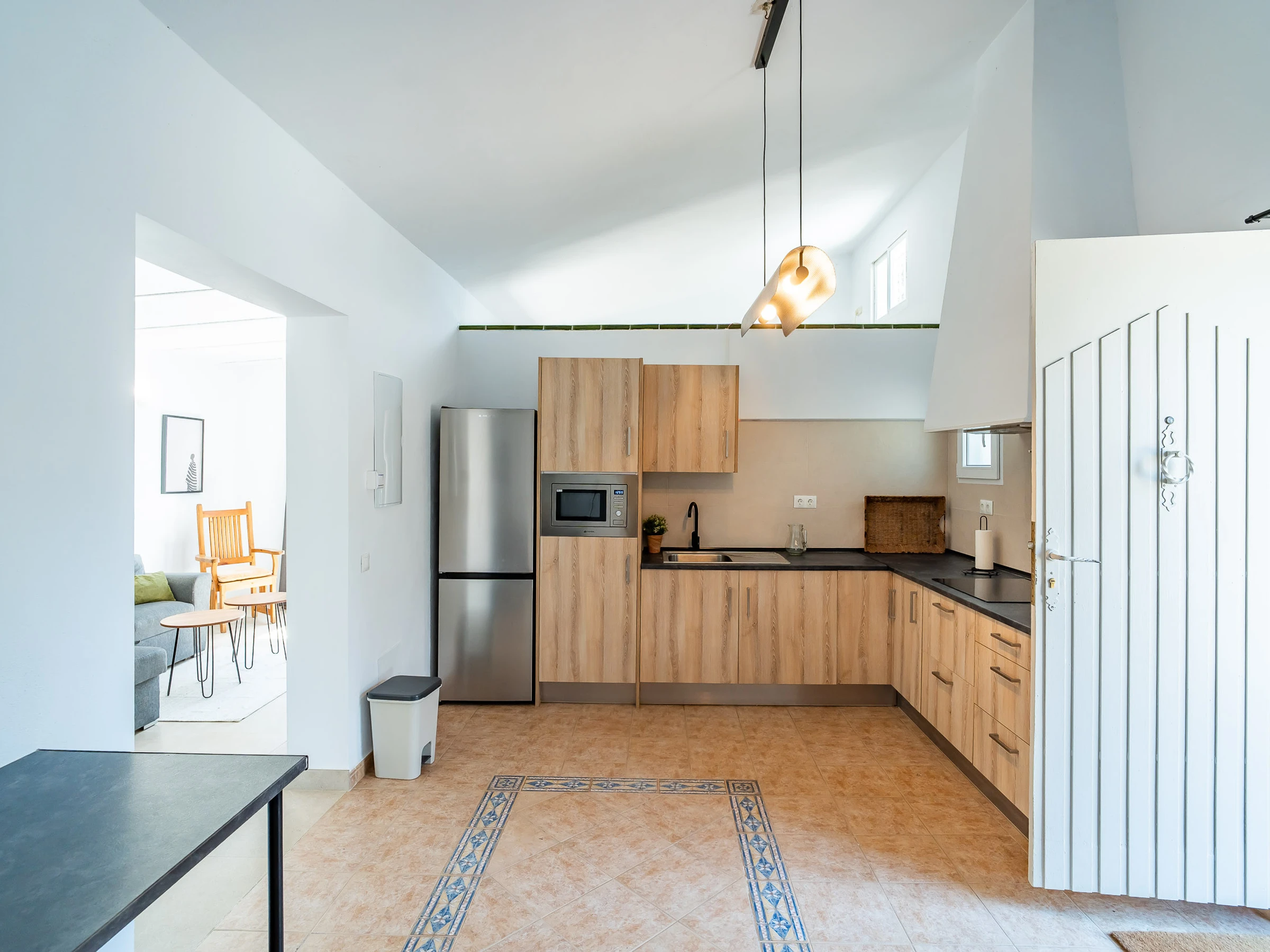 Die Wohnung ist mit Blick auf den Familienkomfort konzipiert und verfügt über zwei unabhängige Zugänge, einen über die Küche und einen über das Wohn-Esszimmer. Die Küche ist geräumig und mit allem ausgestattet, was man zum Zubereiten von Mahlzeiten für große Gruppen benötigt, einschließlich Kühlschrank, Ofen, Mikrowelle, Kaffeemaschine und mehr ☕🍳. Das Wohn-Esszimmer, das direkt nach draußen führt, verfügt über ein bequemes Doppelschlafsofa, um zwei zusätzliche Personen zu beherbergen.
