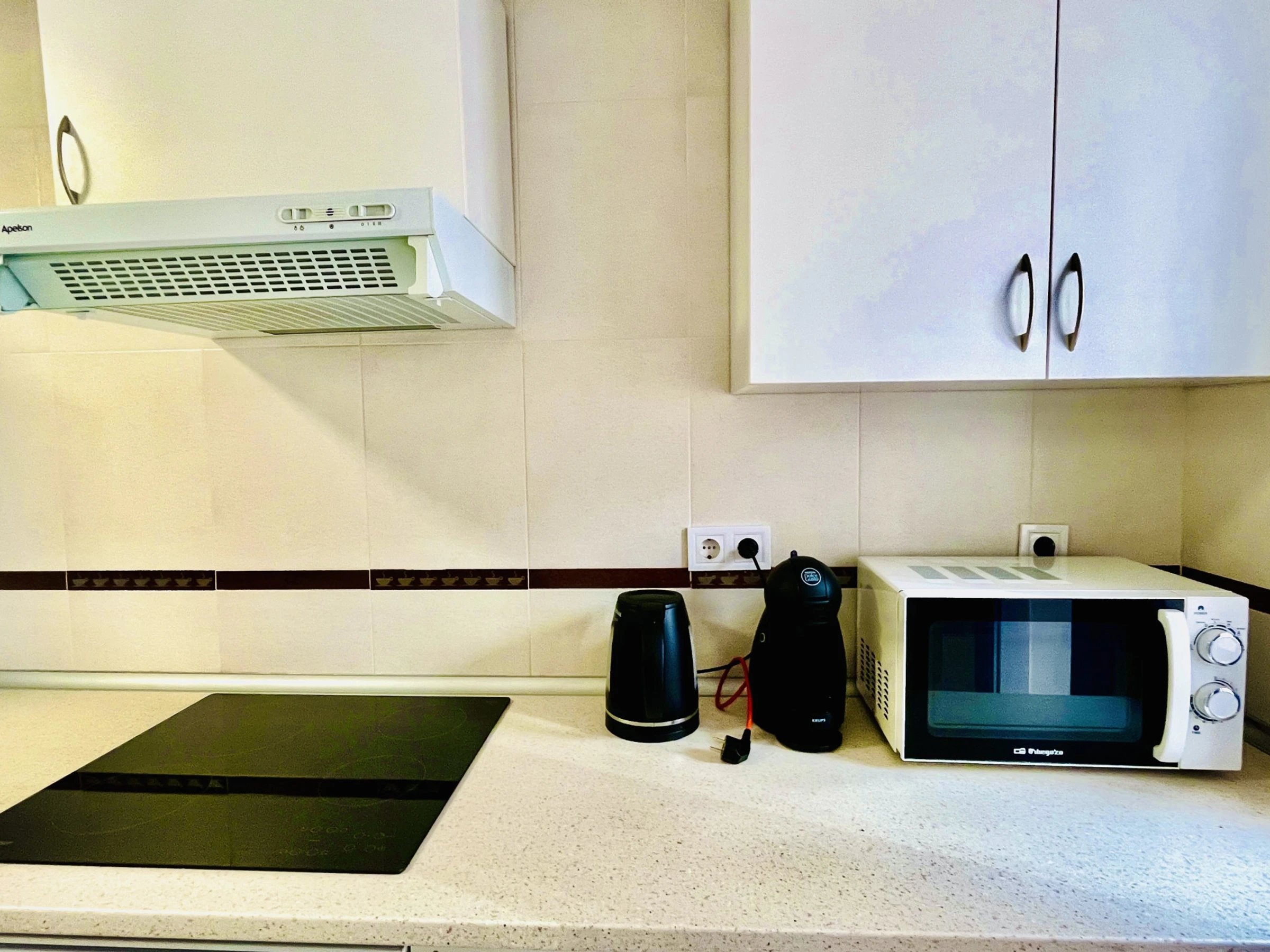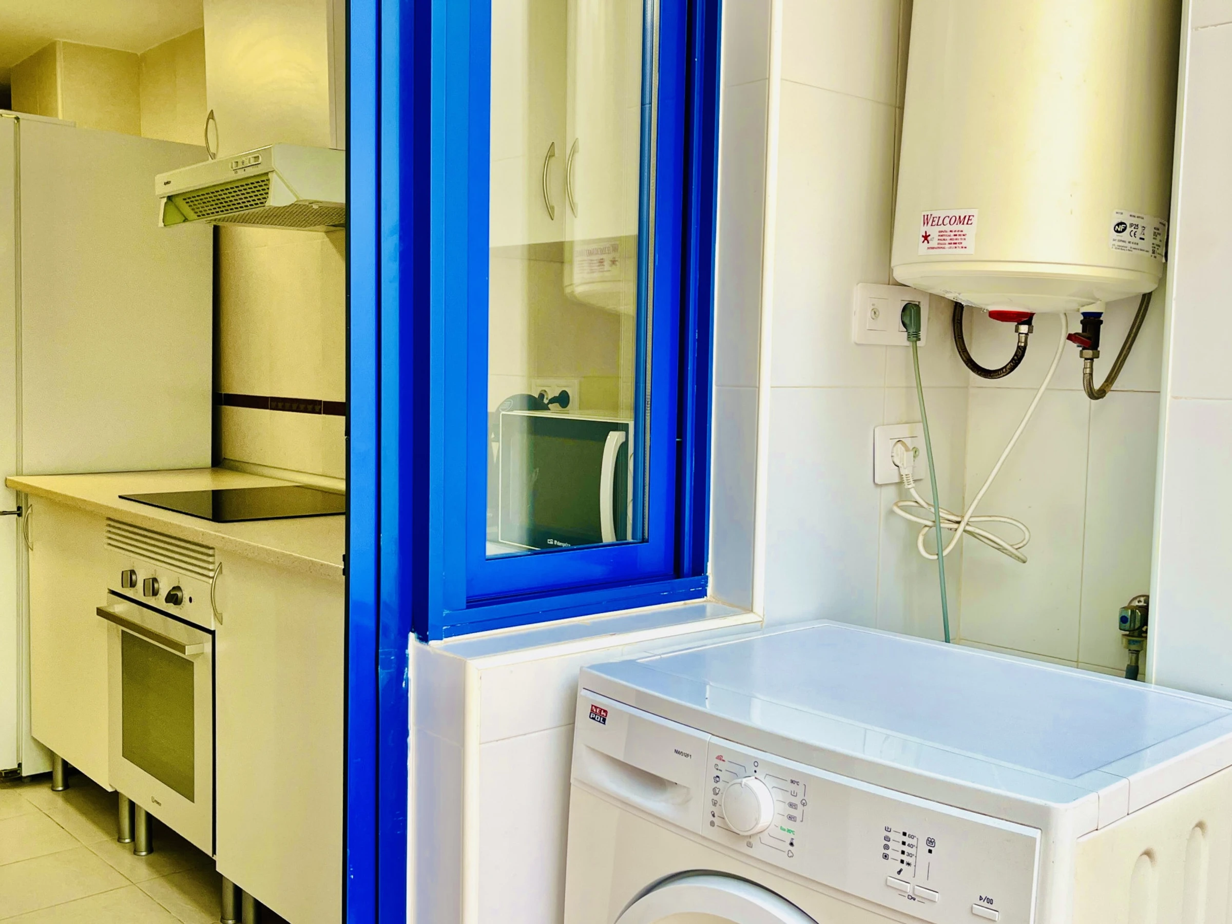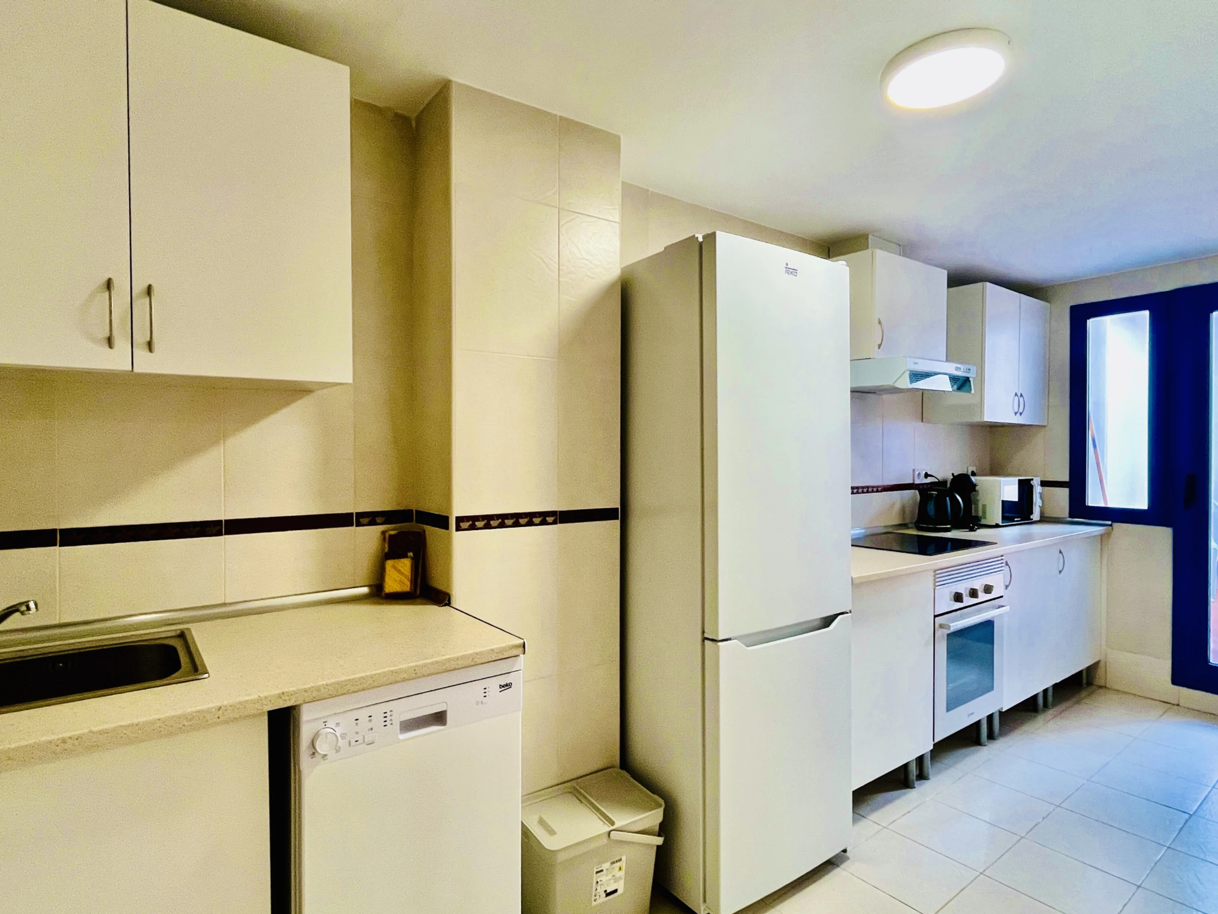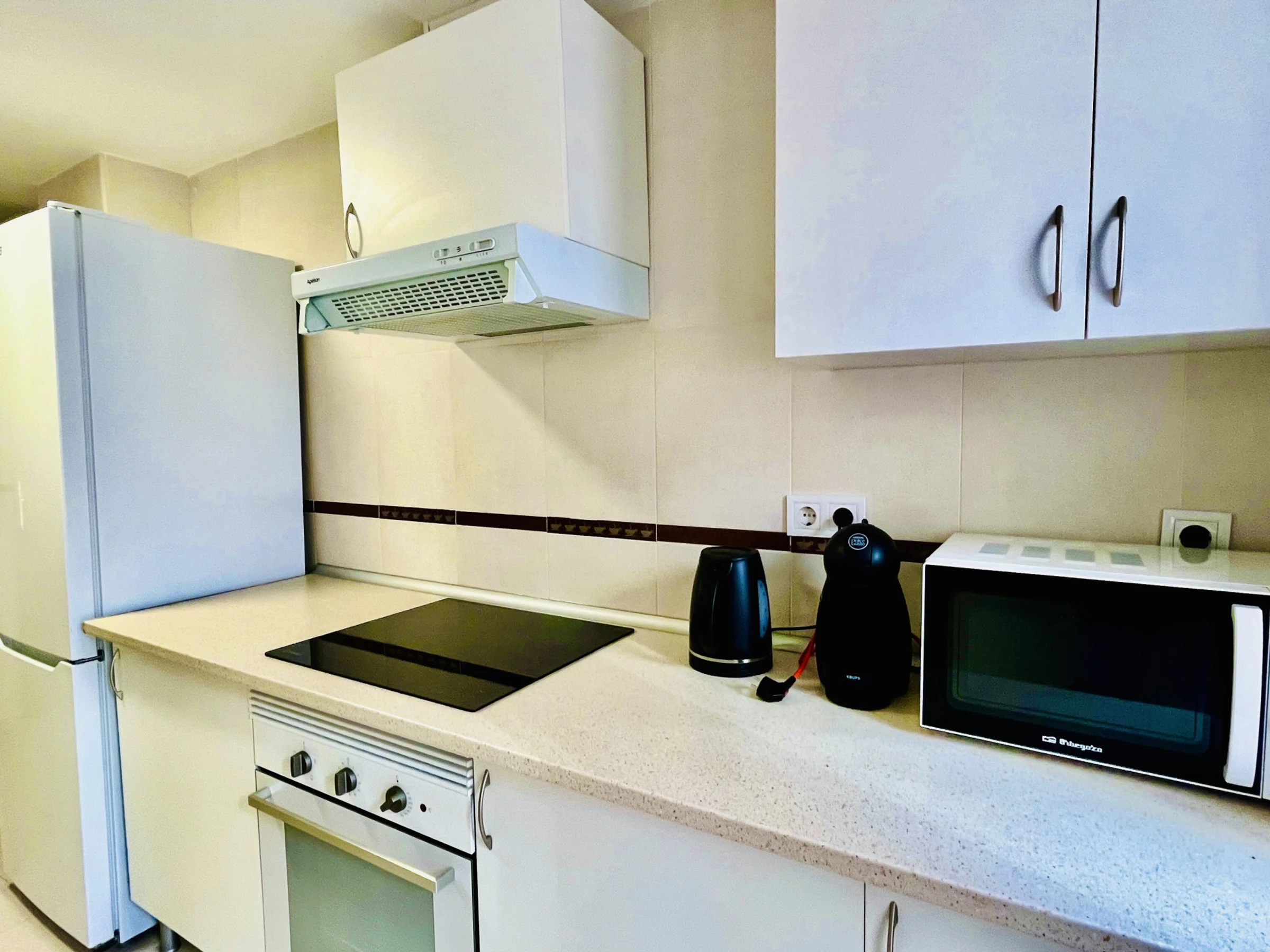 Vollständig ausgestattete, unabhängige Küche mit allem Notwendigen, einschließlich Kühlschrank mit Gefrierfach, Waschmaschine, Kaffeemaschine, Ofen, Mikrowelle, Geschirrspüler und Küchenutensilien. Sie können hausgemachte Mahlzeiten und gemeinsame Momente mit Familie oder Freunden genießen.