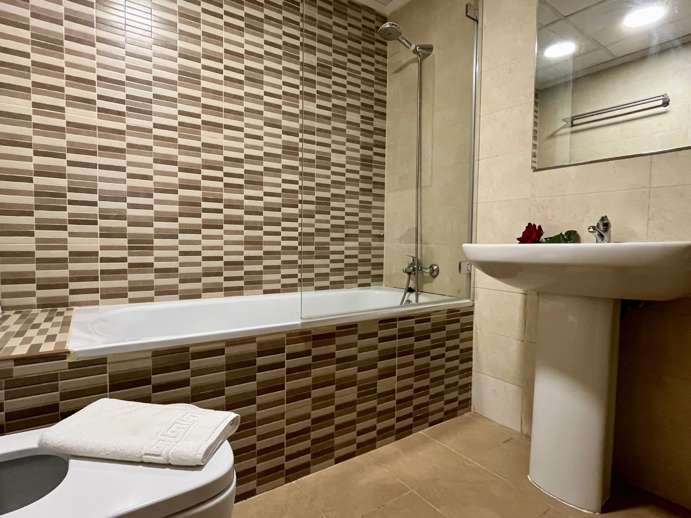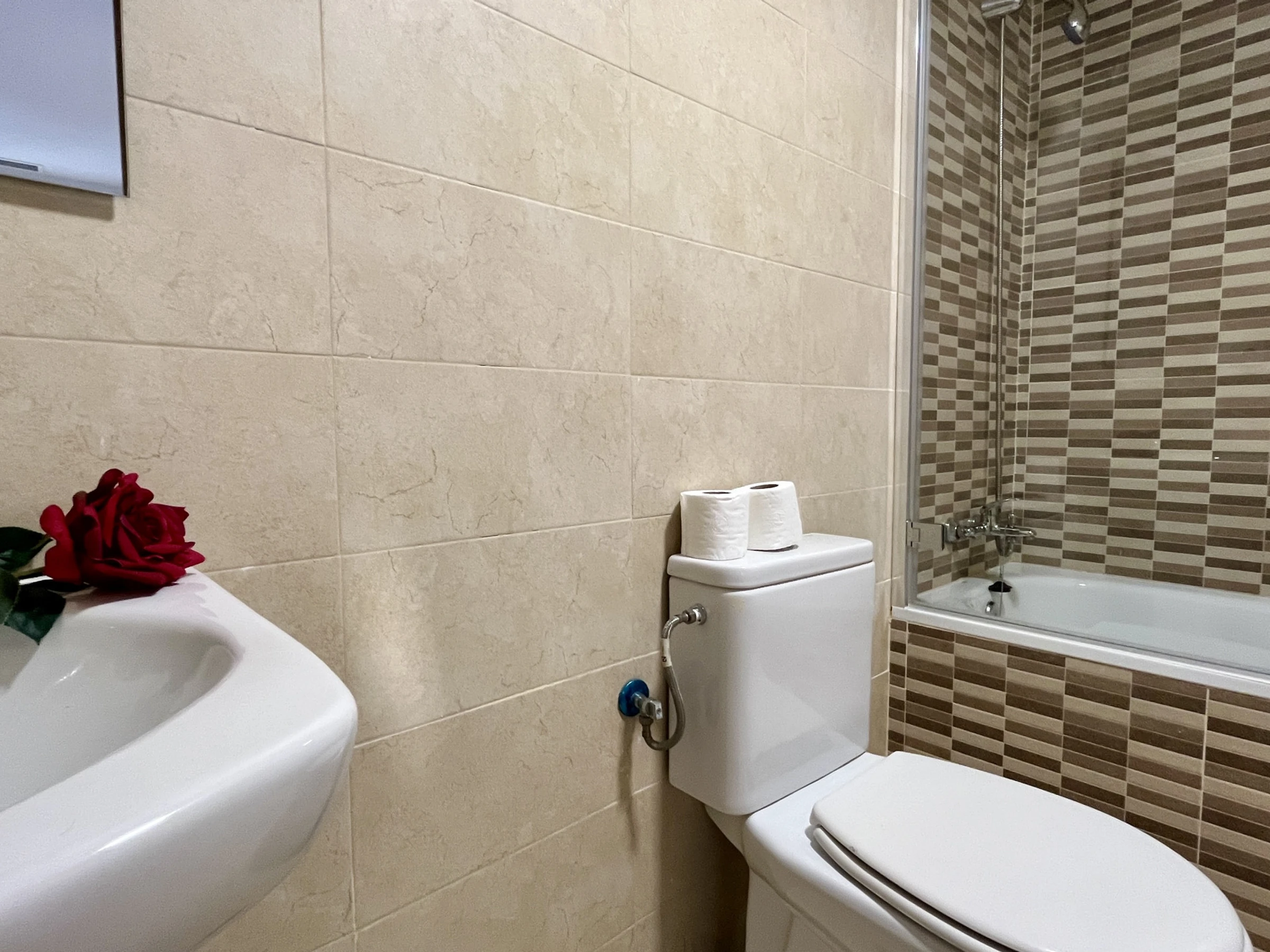Die Wohnung verfügt über 2 Badezimmer mit Badewanne. Sie verfügt über 4 Betten, 2 Doppelbetten und 2 Einzelbetten, um bis zu 6 Gäste bequem unterzubringen. Die separate Küche ist mit modernen Geräten wie Kühlschrank, Gefrierschrank, Waschmaschine, Kaffeemaschine, Ofen und Geschirrspüler komplett ausgestattet.