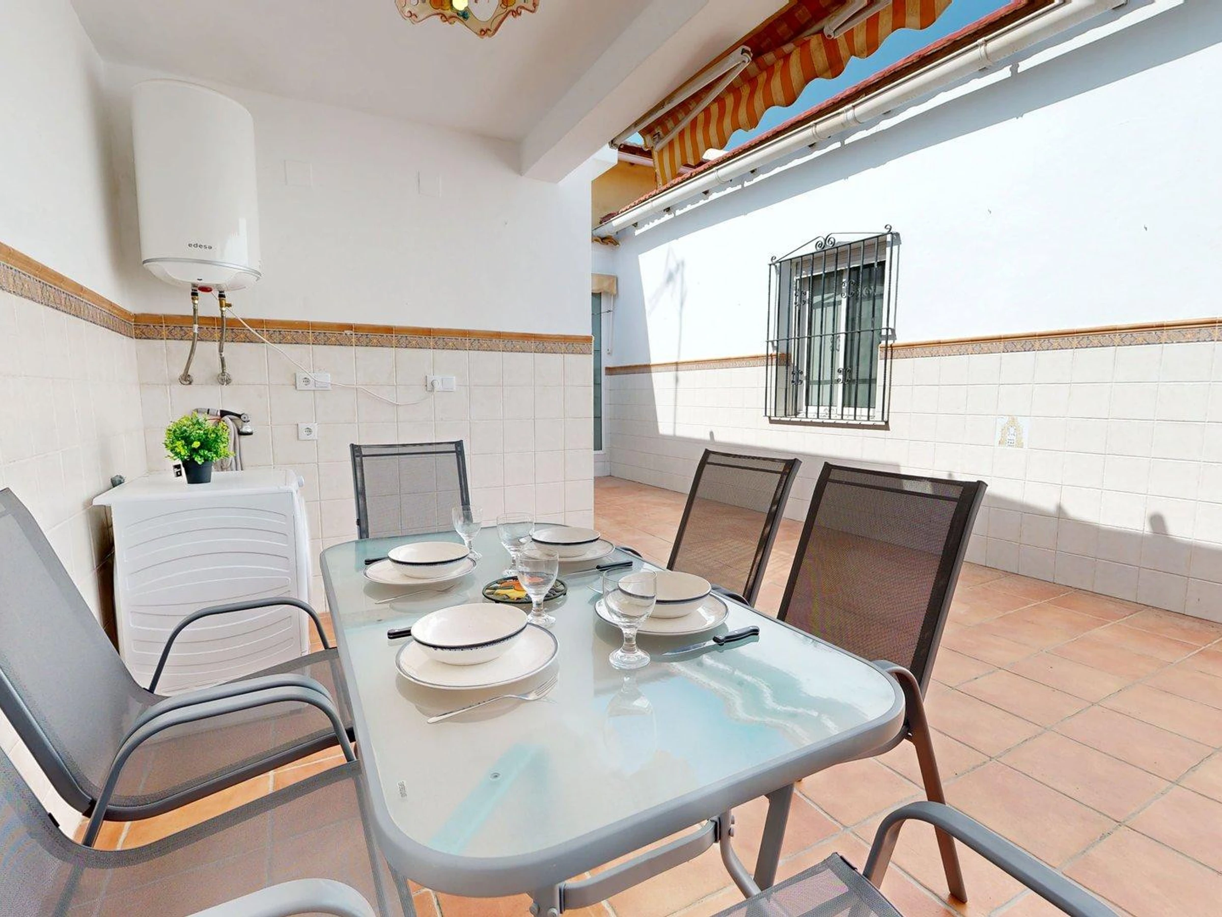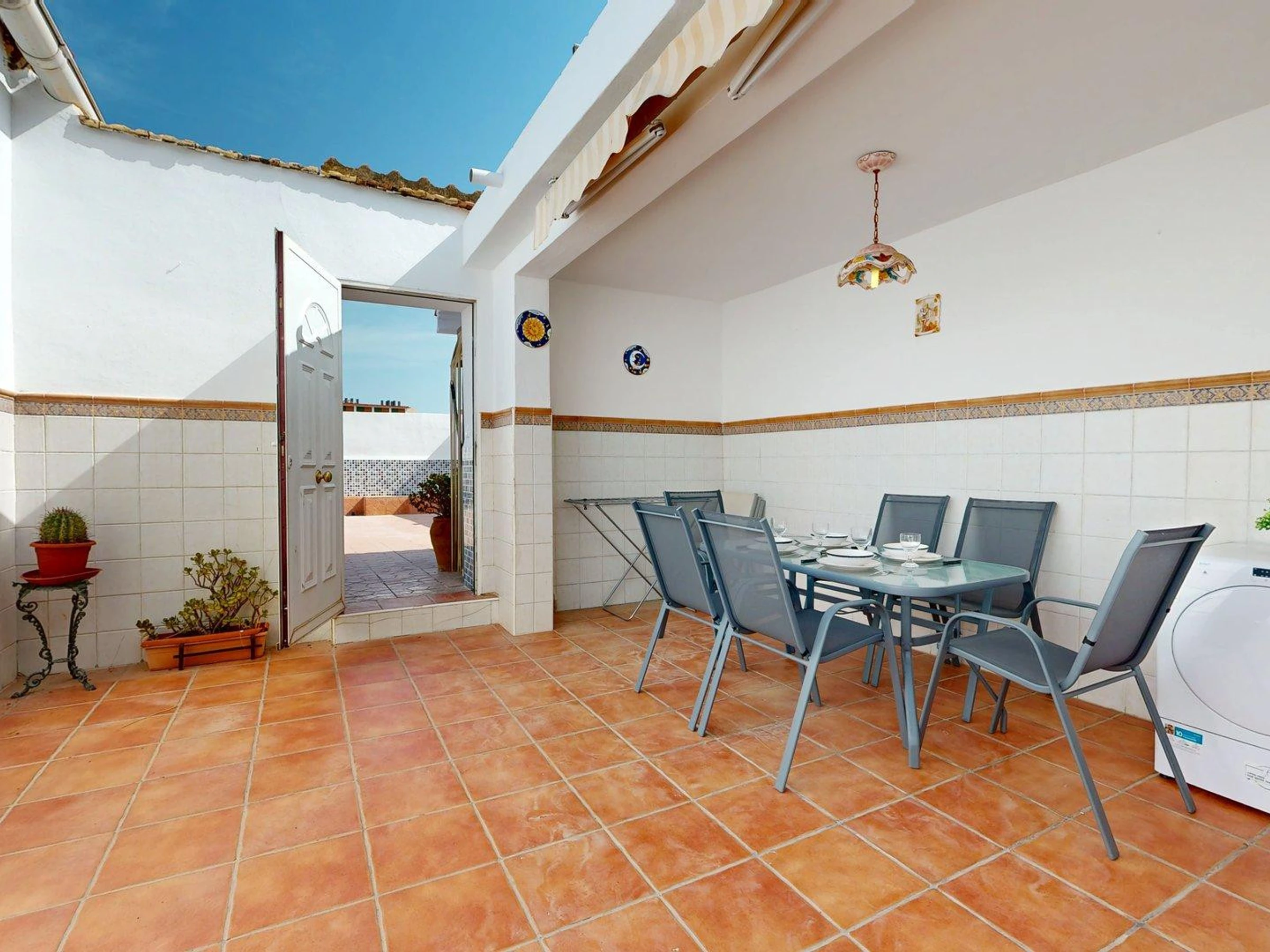Die Unterkunft verfügt über gartenmöbel, 100 m² terrasse, waschmaschine, grill, bügeleisen/-brett, internet (WLAN), heizung, klimaanlage in der ganzen unterkunft, 2 ventilatoren, 1 Fernseher.