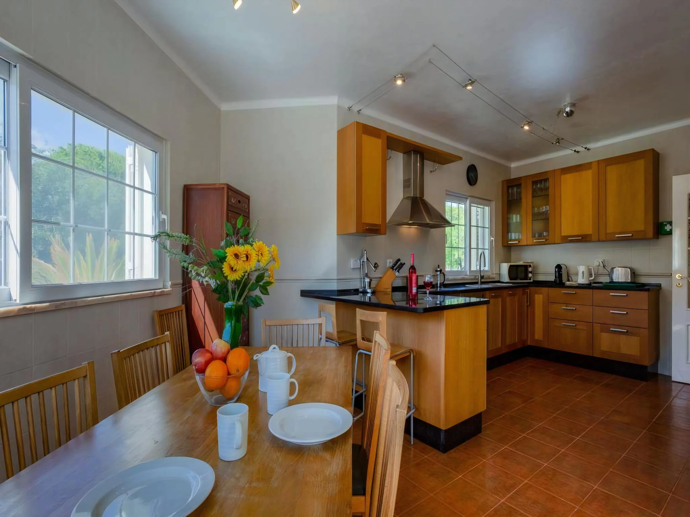 Dieses küche, ist ausgestattet in kühlschrank, mikrowelle, backofen und spülmaschine.
