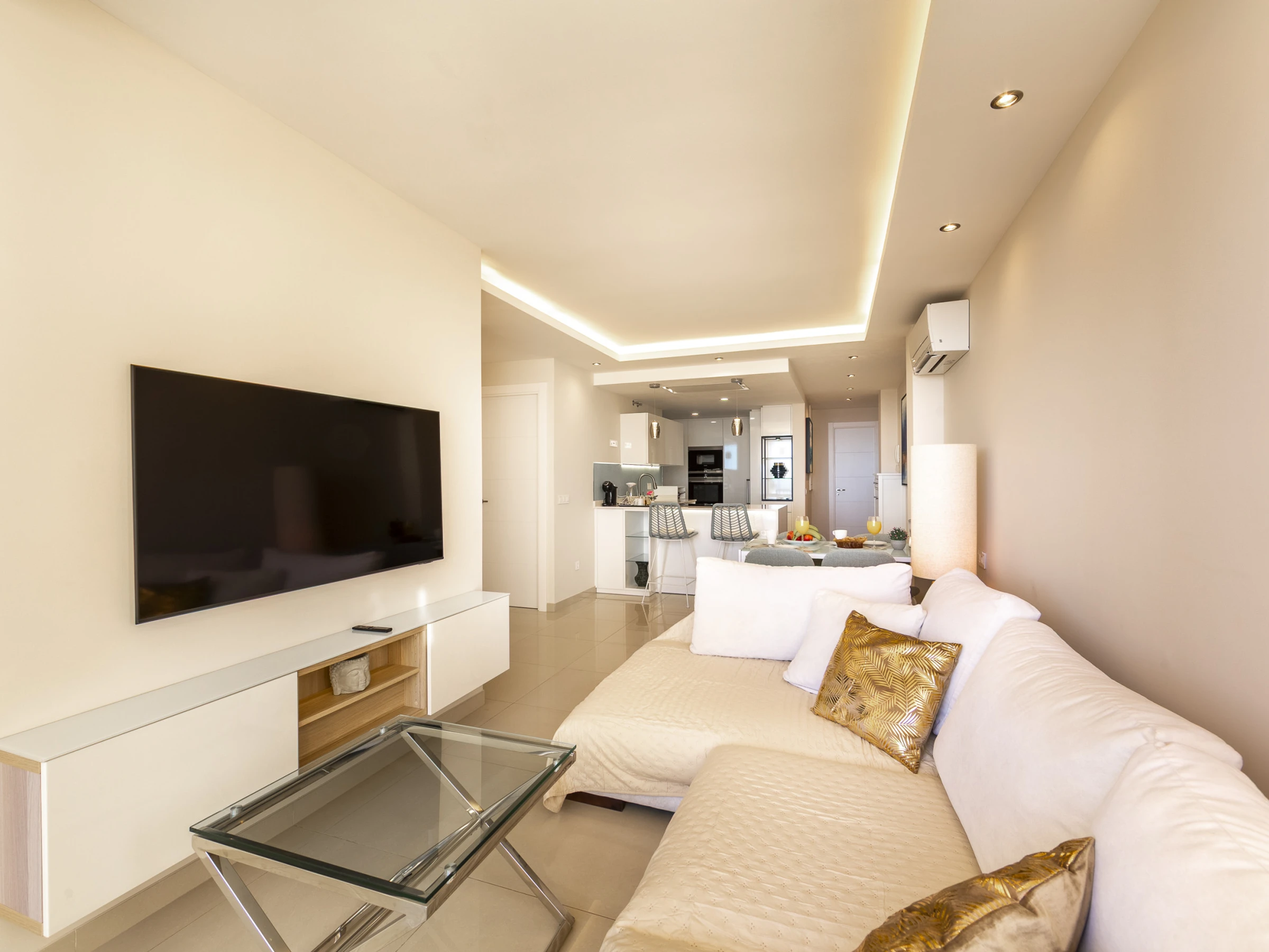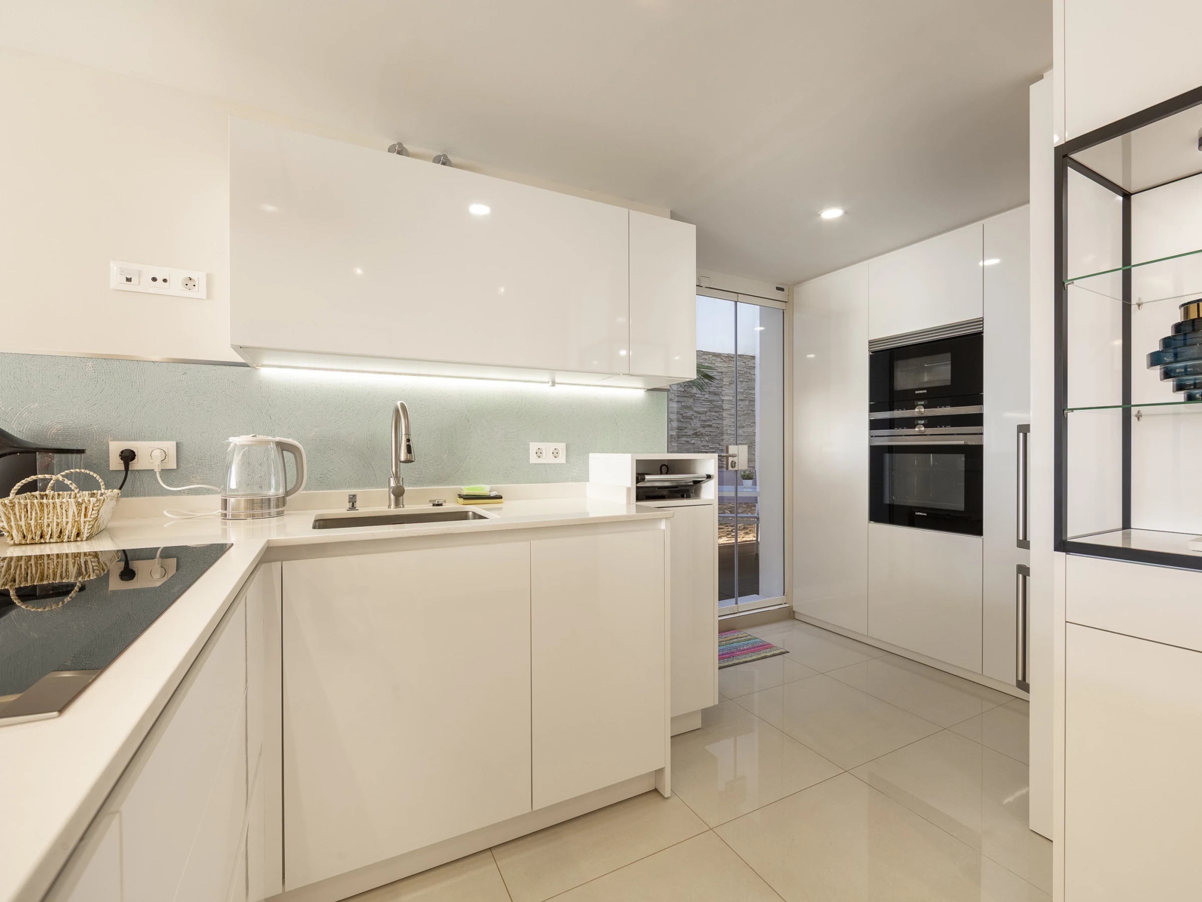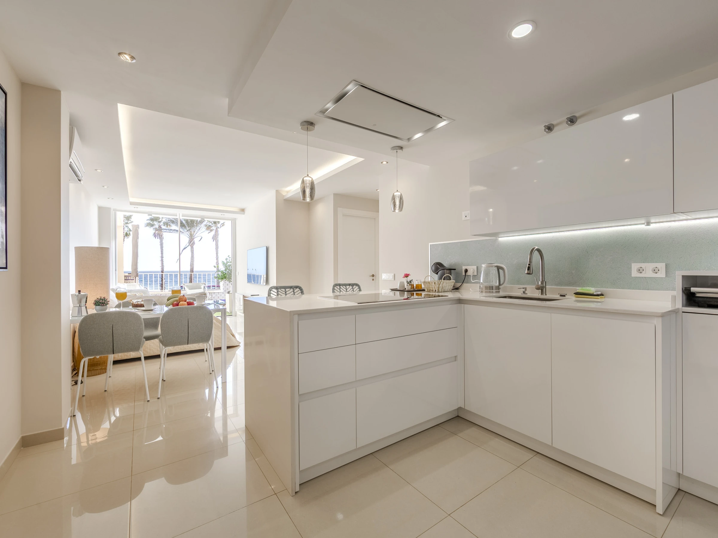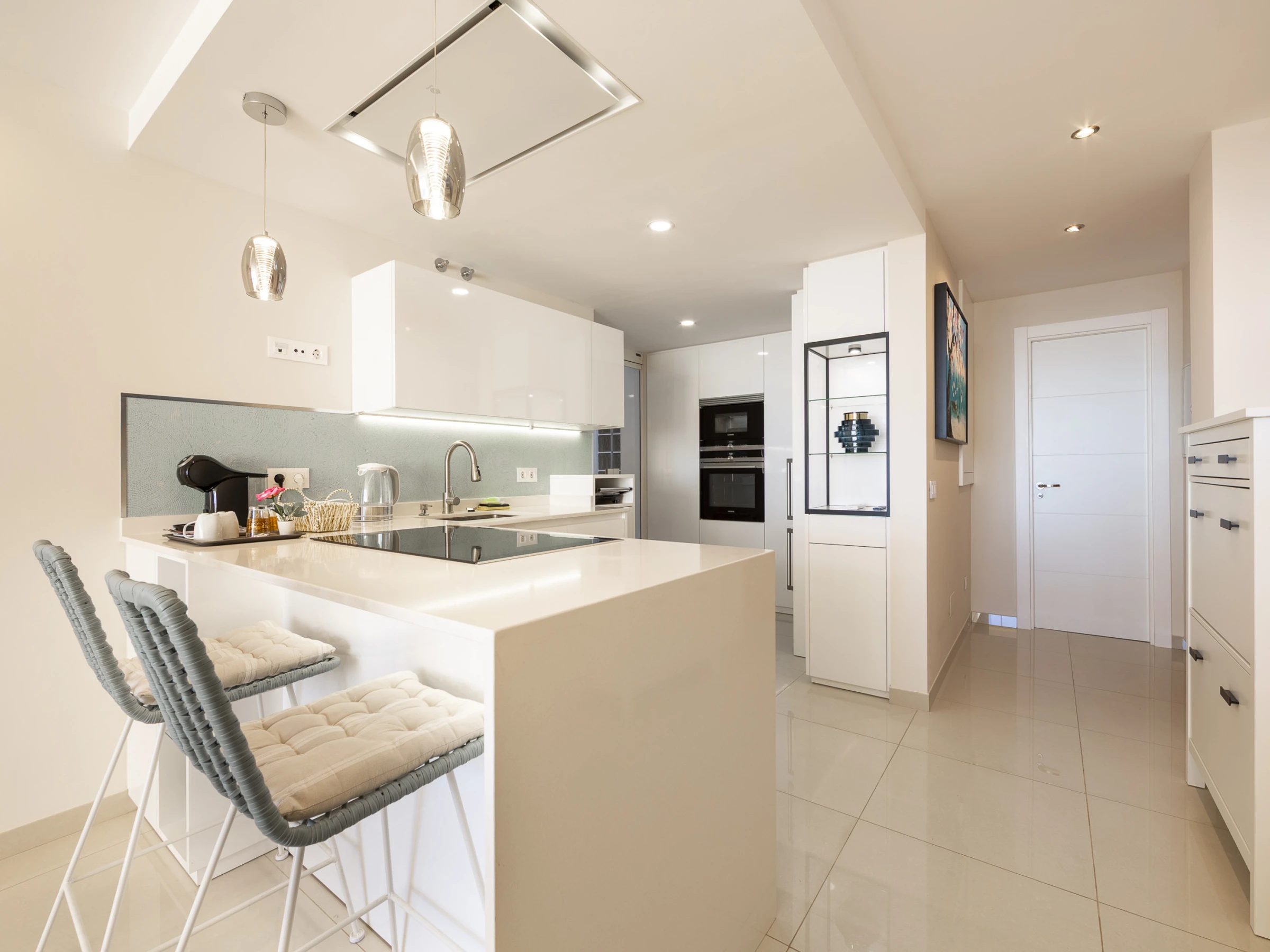 Dieses offene küche, mit ceranfeld, ist ausgestattet in kühlschrank, mikrowelle, backofen, gefrierschrank, spülmaschine, geschirr/besteck, kochutensilien, kaffeemaschine, toaster, wasserkocher und saftpresse.