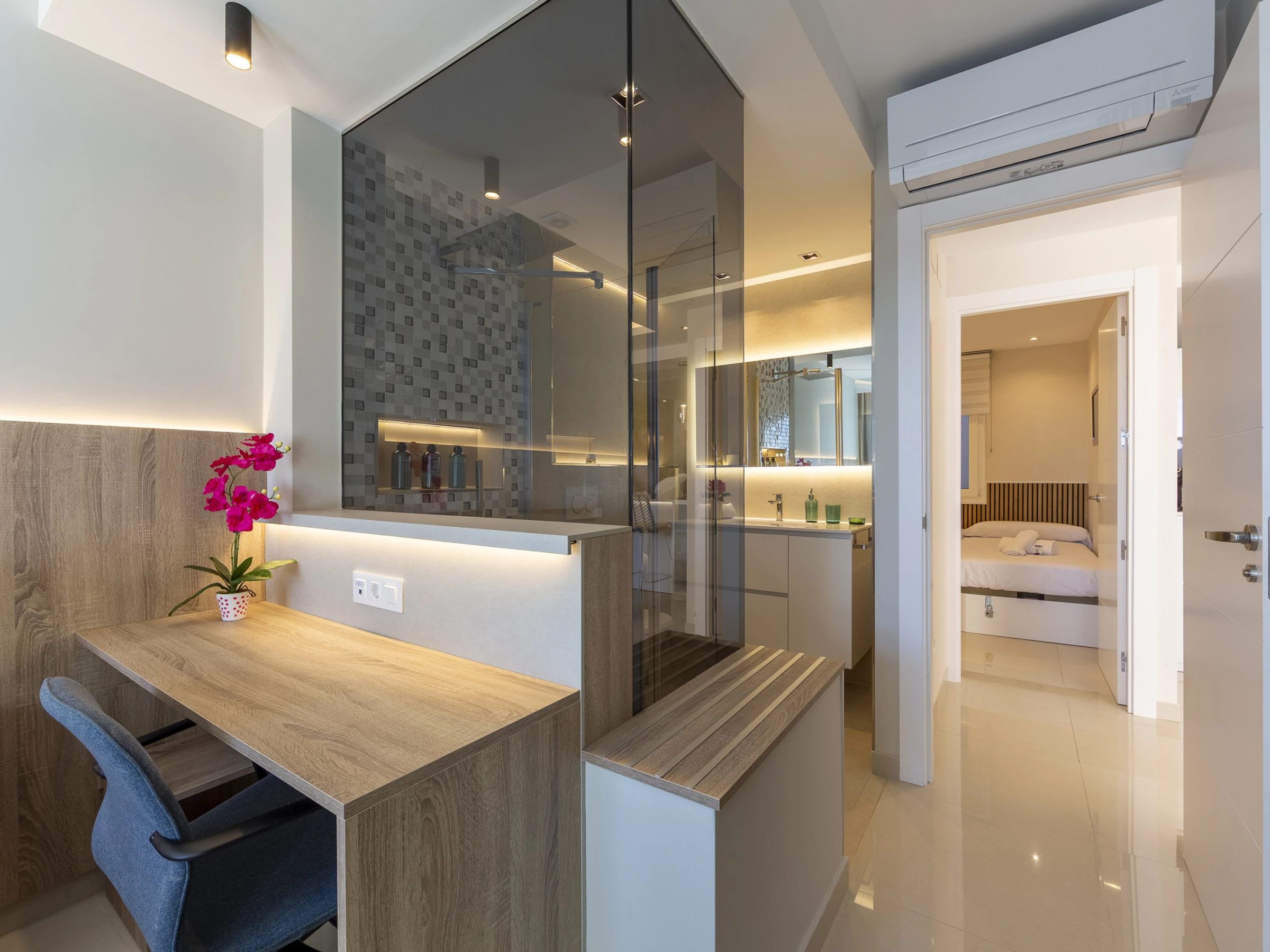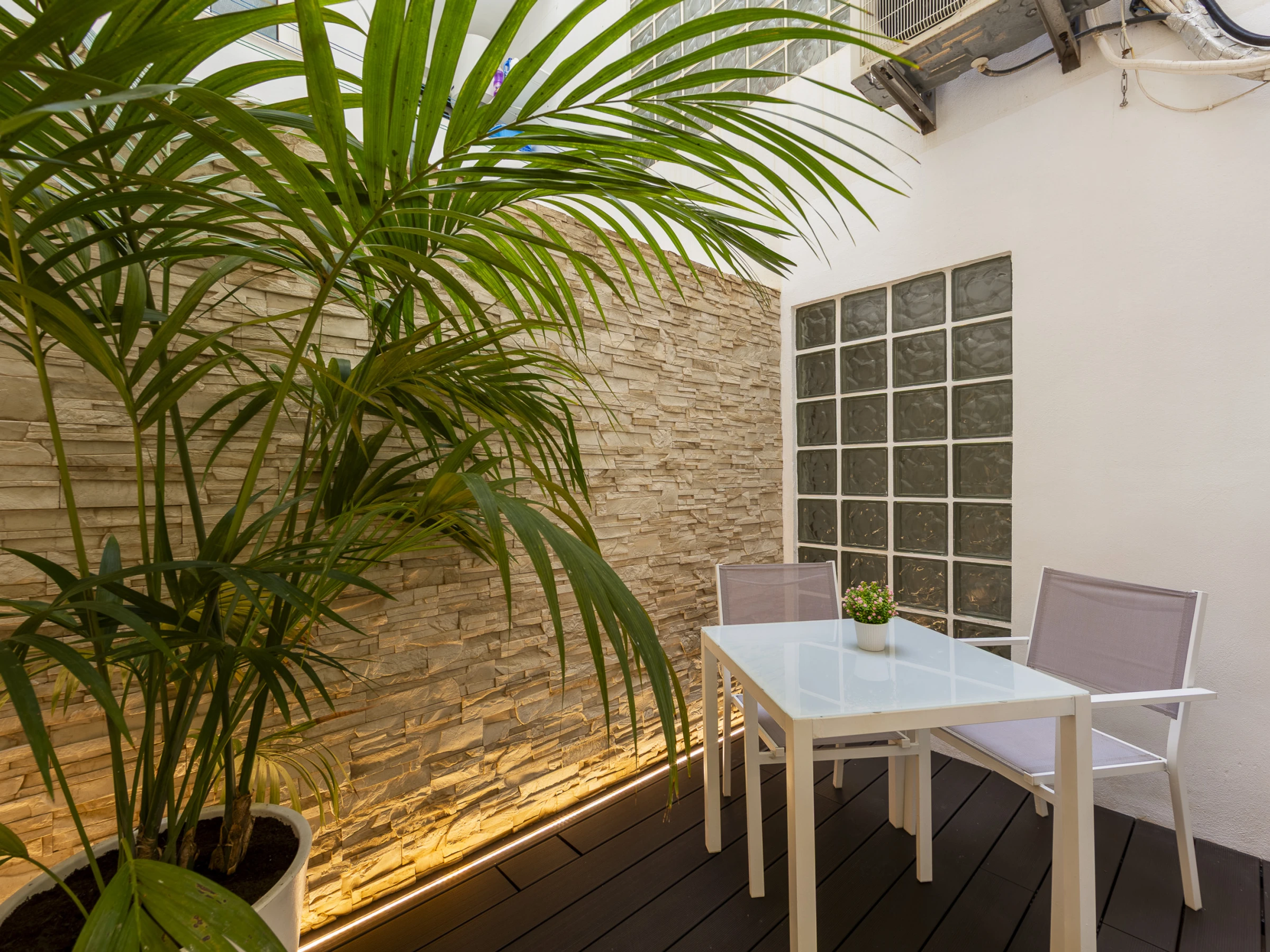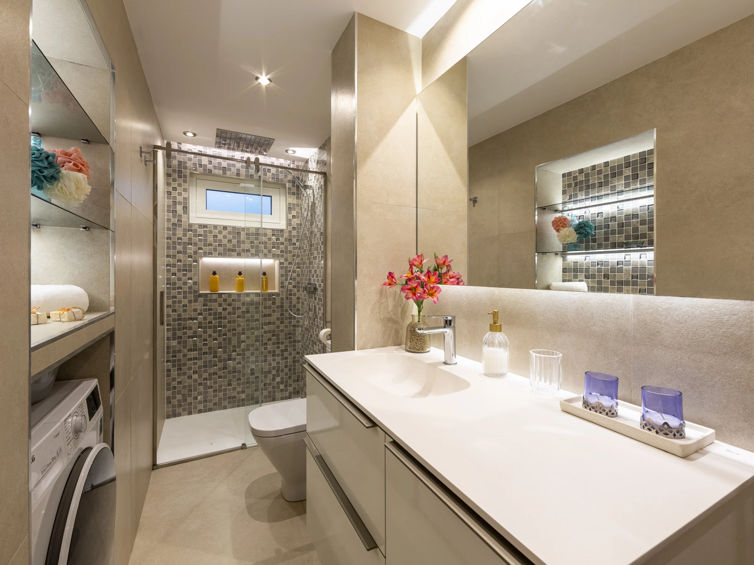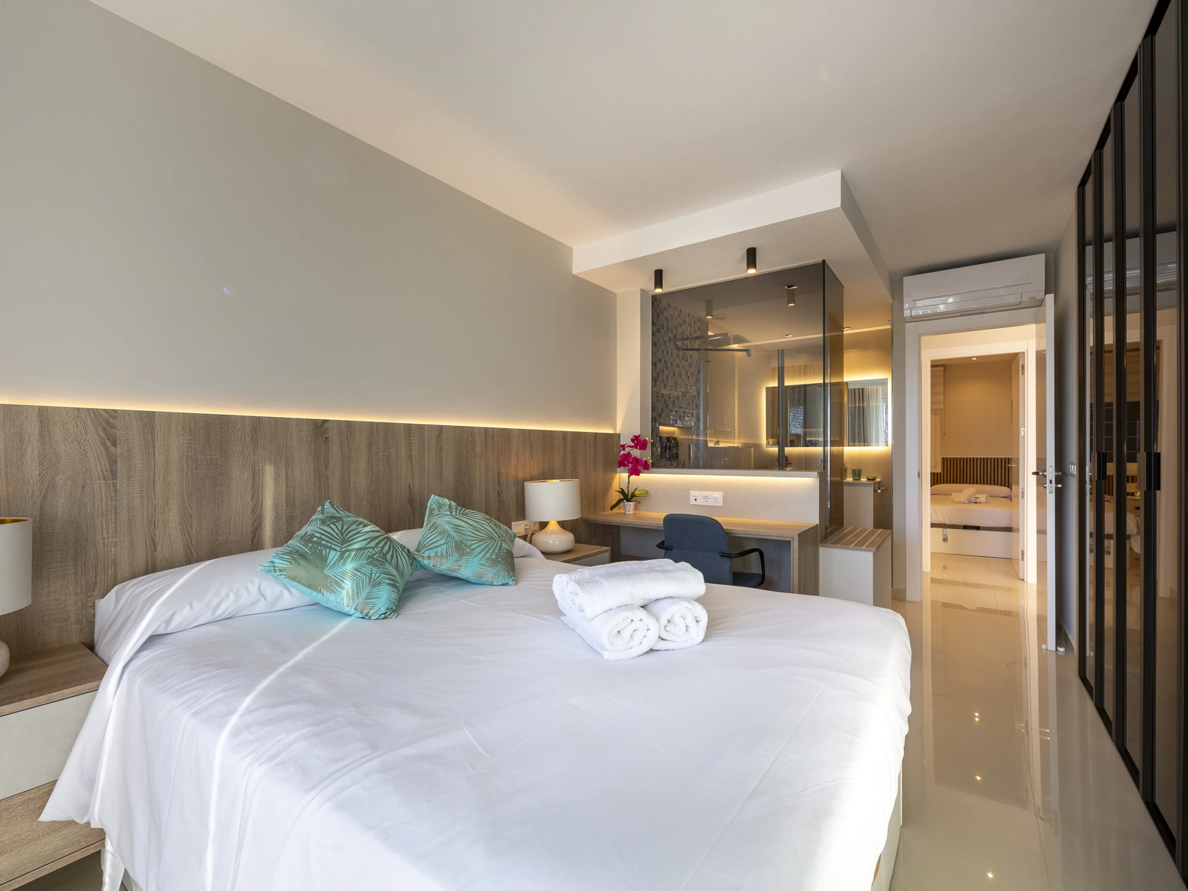 Die Unterkunft verfügt über gartenmöbel, 9 m² terrasse, waschmaschine, bügeleisen/-brett, internet (WLAN), haartrockner, heizung, klimaanlage, garage in auf dem grundstück, 3 Fernsehgeräte.