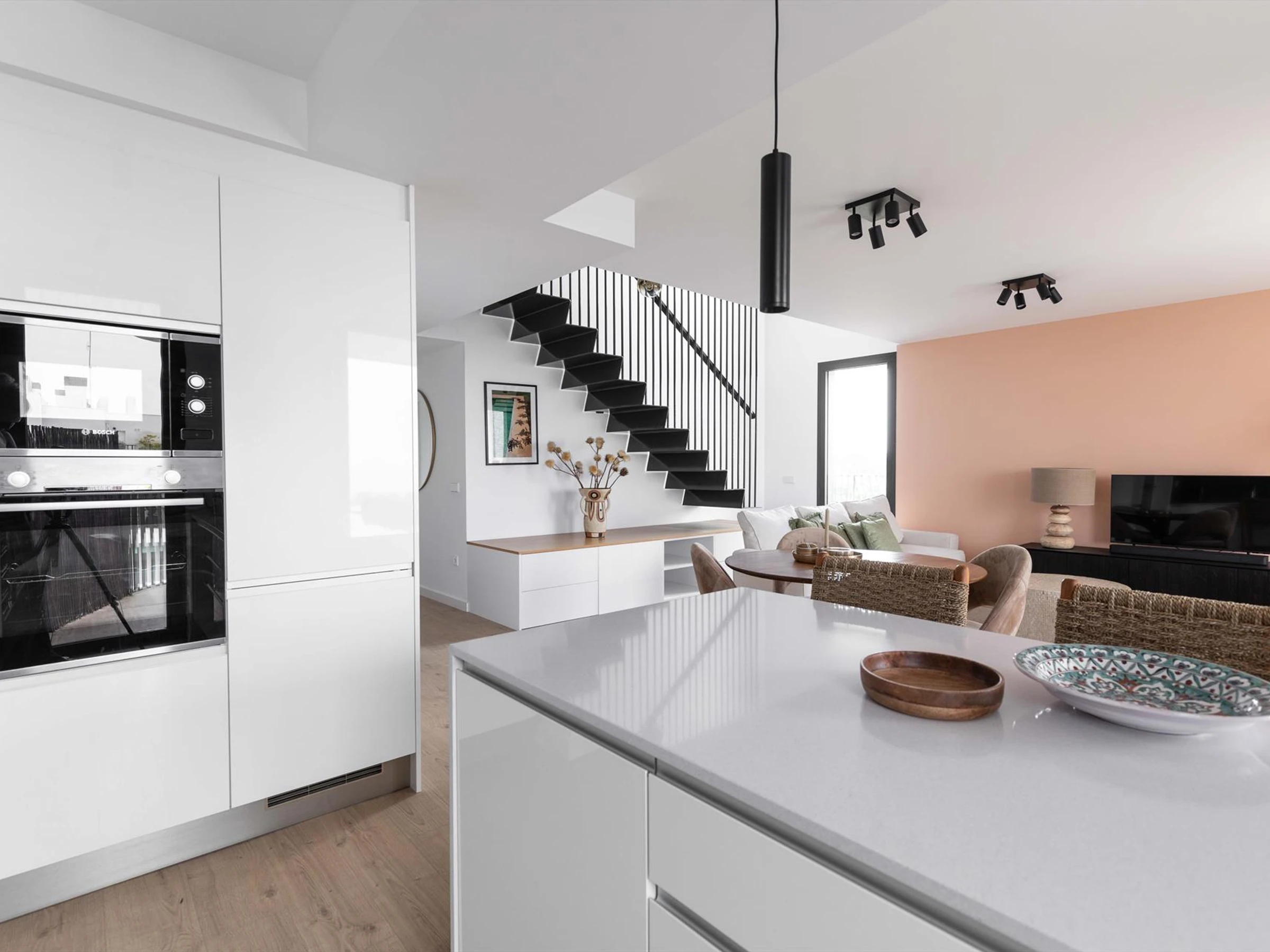 Das Penthouse hat 3 Schlafzimmer und 3 Badezimmer, verteilt über 2 Etagen. Die