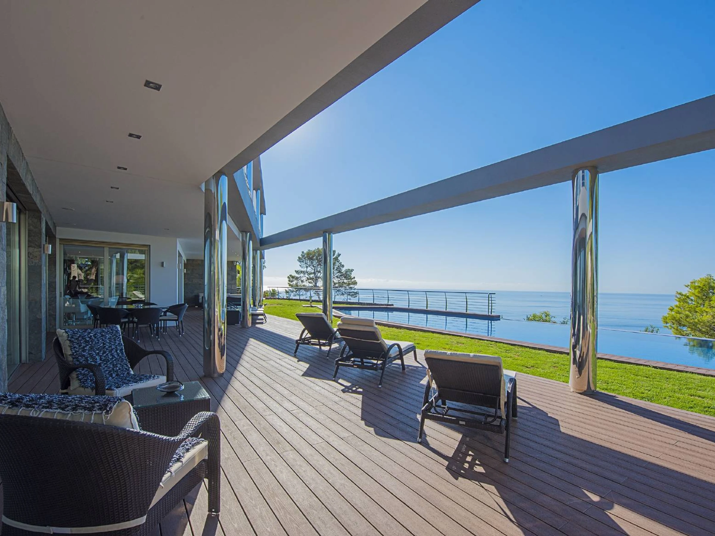 EXTERIOR: Weitläufiges Grundstück mit einem beeindruckenden 20x4 Schwimmbad mit Whirlpool und einer Rasenfläche, die ideal zum Sonnenbaden ist. Darüber hinaus können Sie draußen essen und den wunderbaren Gasgrill genießen.