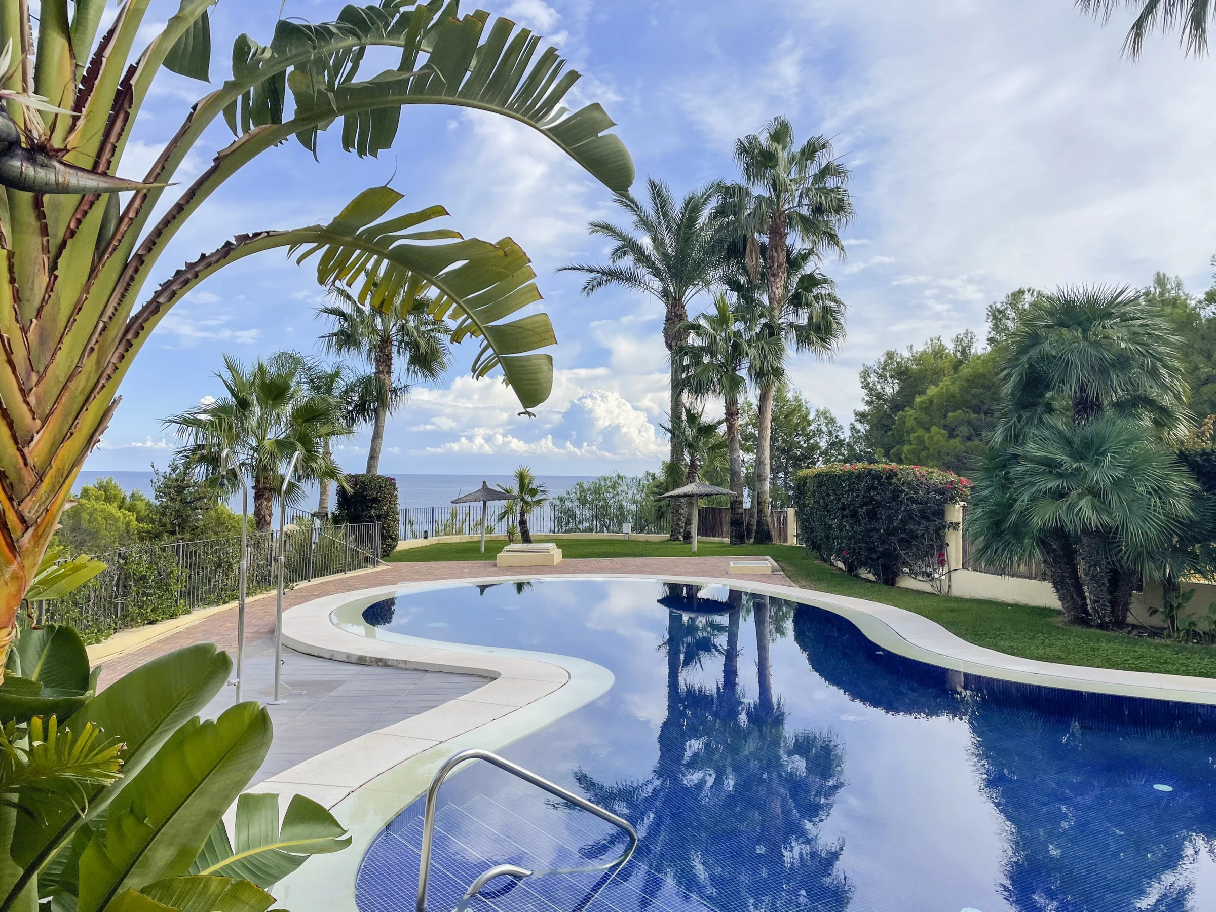 Sie erreichen die Wohnung über einen Aufzug, so dass sie auch für Behinderte leicht zugänglich ist. Von der großzügigen Terrasse aus genießen Sie einen schönen Panoramablick auf das Meer, den Garten und den Gemeinschaftspool. In dem schönen tropischen Garten mit einer schönen Rasenfläche befindet sich das Schwimmbad mit Stufen und Beleuchtung. Es gibt auch einen Weg, der direkt zum Meer und Strand führt.