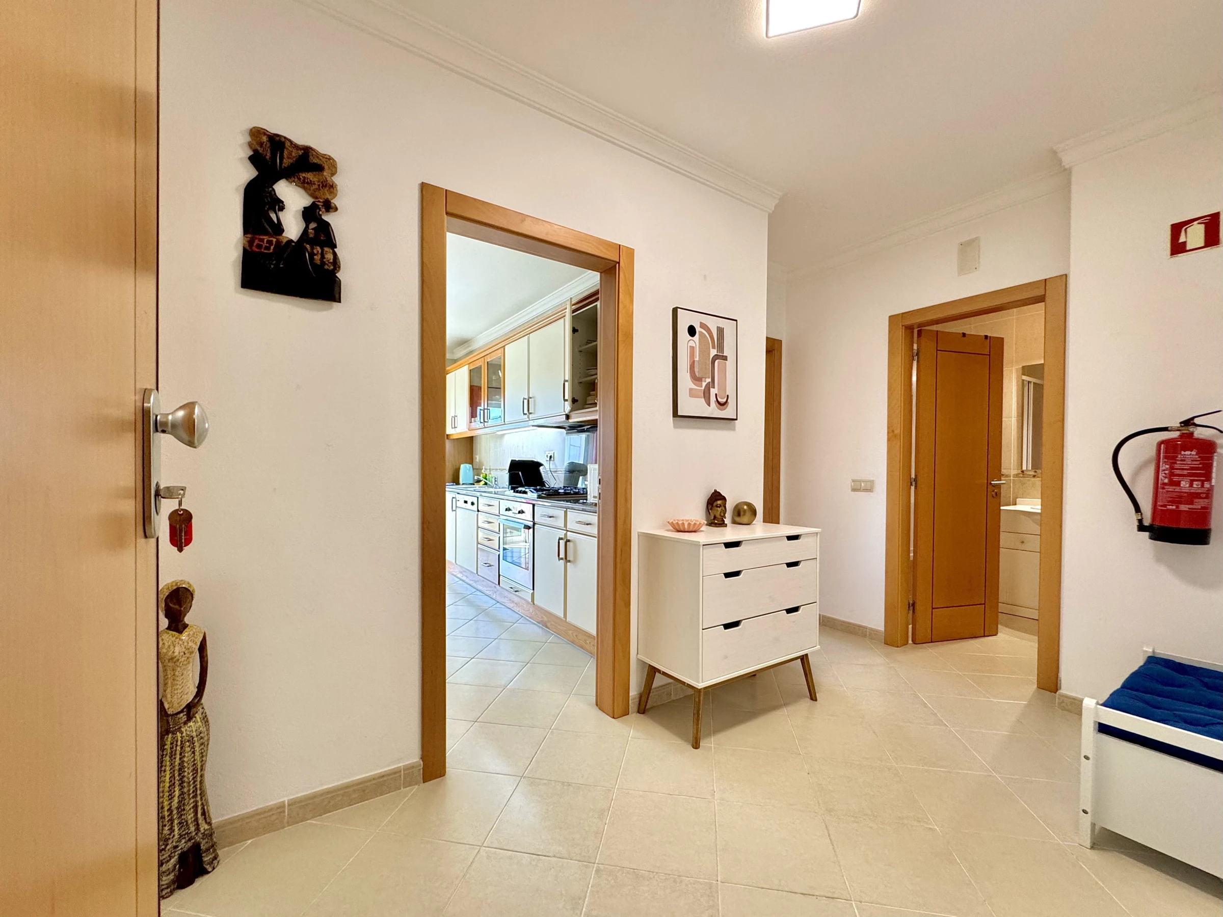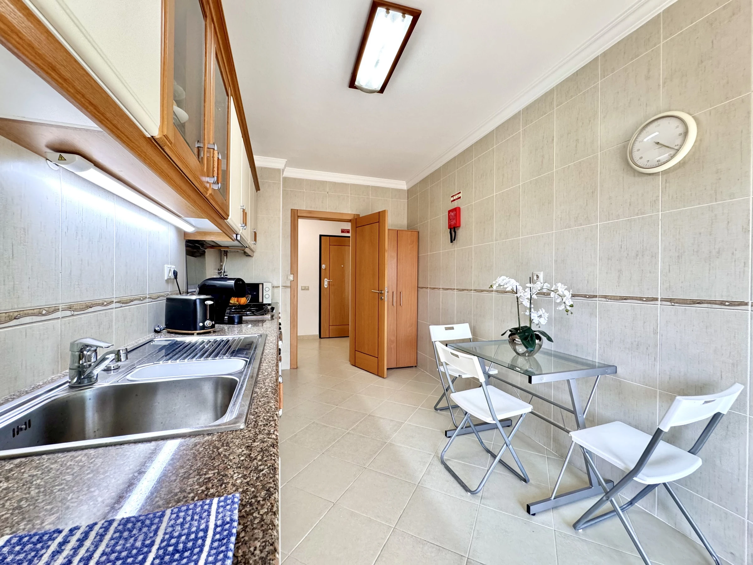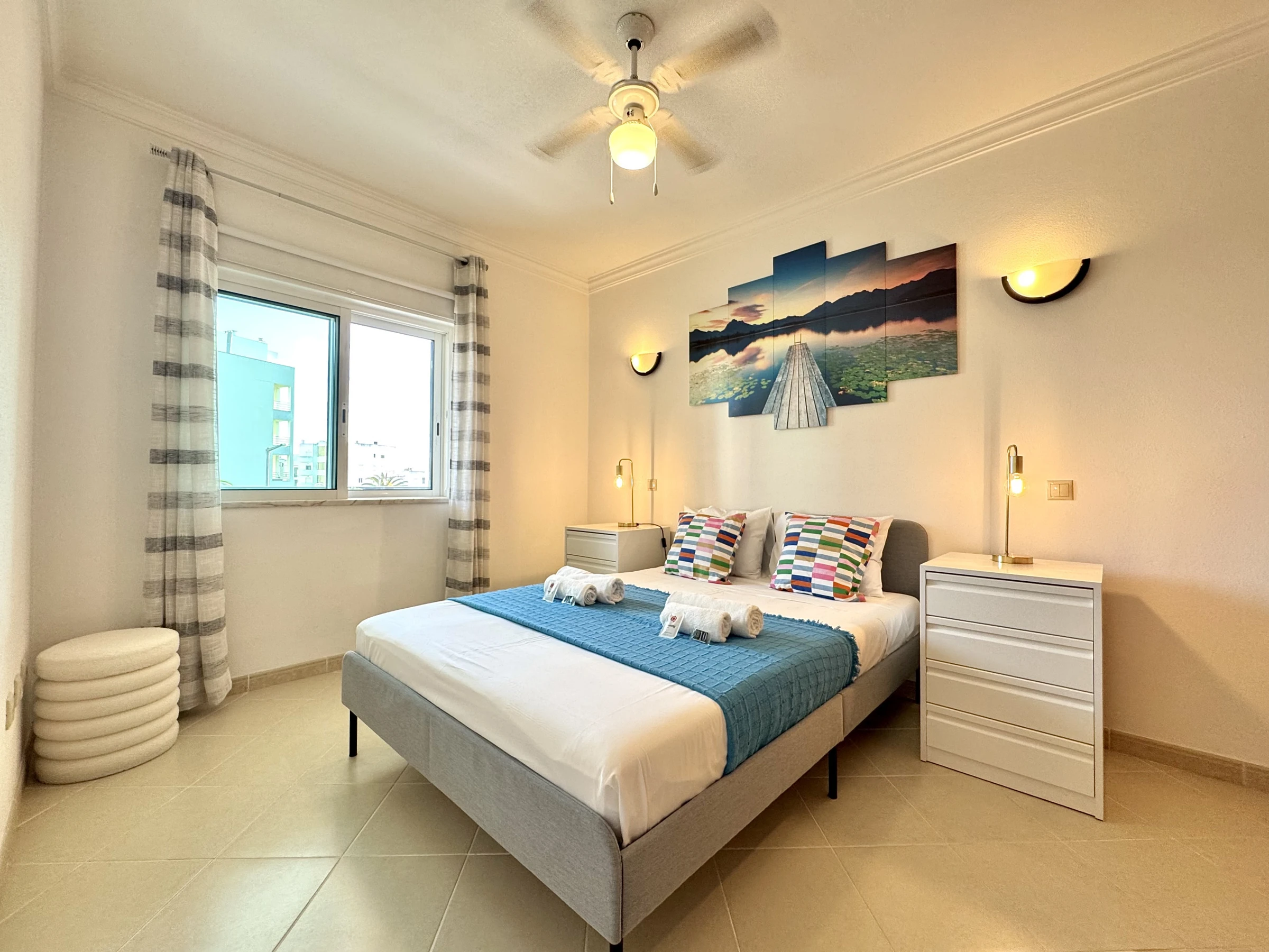 Das Schlafzimmer verfügt über ein bequemes Bett und reichlich Stauraum. Das Wohnzimmer lädt zur Erholung ein, mit reichlich natürlichem Licht und direktem Zugang zum Balkon - der perfekte Ort, um ein Frühstück im Freien zu genießen oder am Ende des Tages zu entspannen.