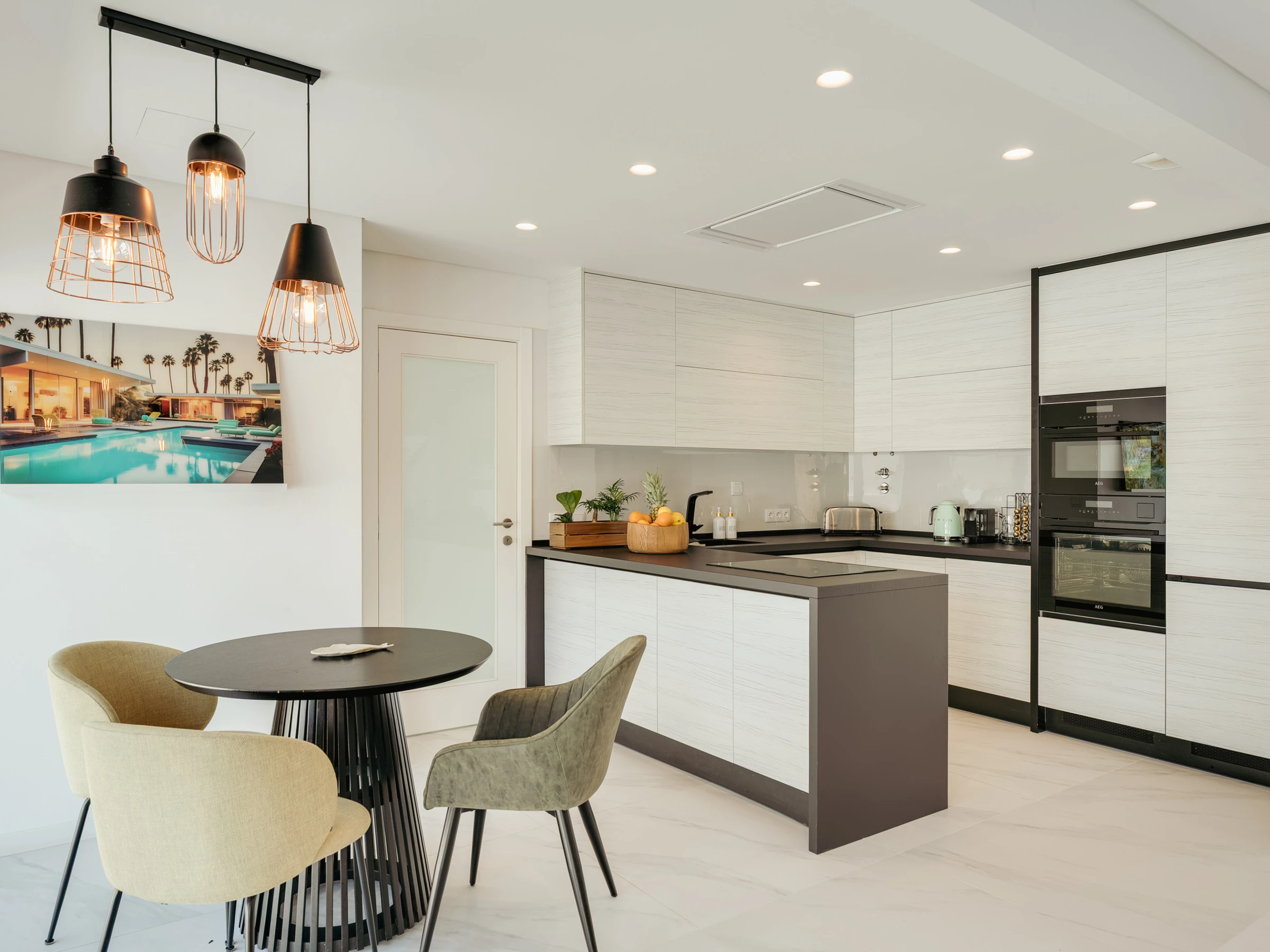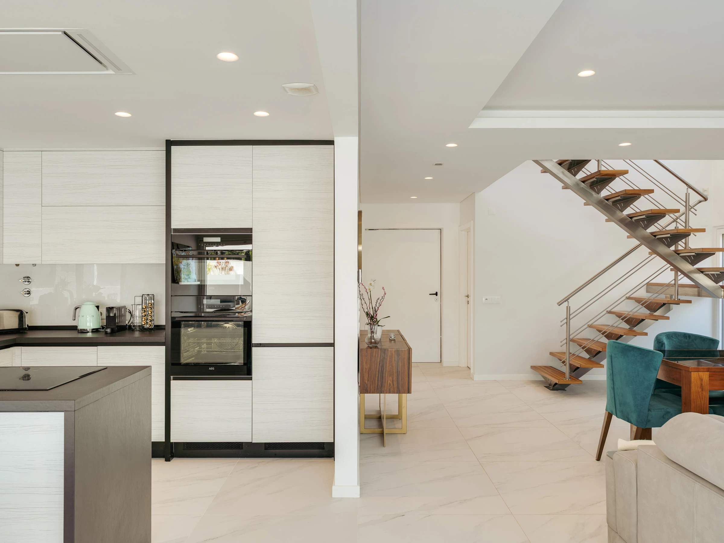 Versteckt in einer ruhigen Gegend nahe eines wunderschönen Kiefernwaldes bietet diese elegante Zwei-Etagen-Villa die perfekte Kombination aus Komfort, Privatsphäre und modernem Wohnen, nur fünf Minuten mit dem Auto oder einen 15-minütigen Spaziergang vom Strand entfernt.