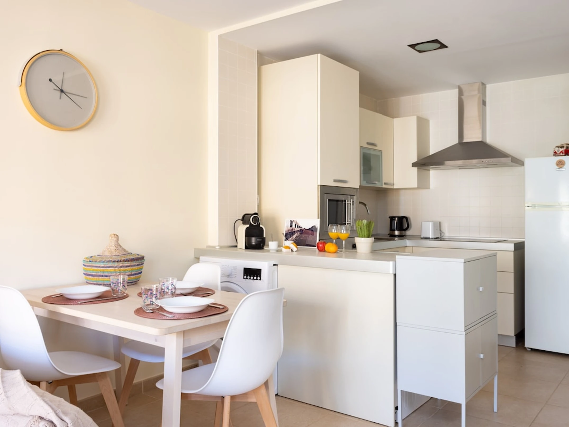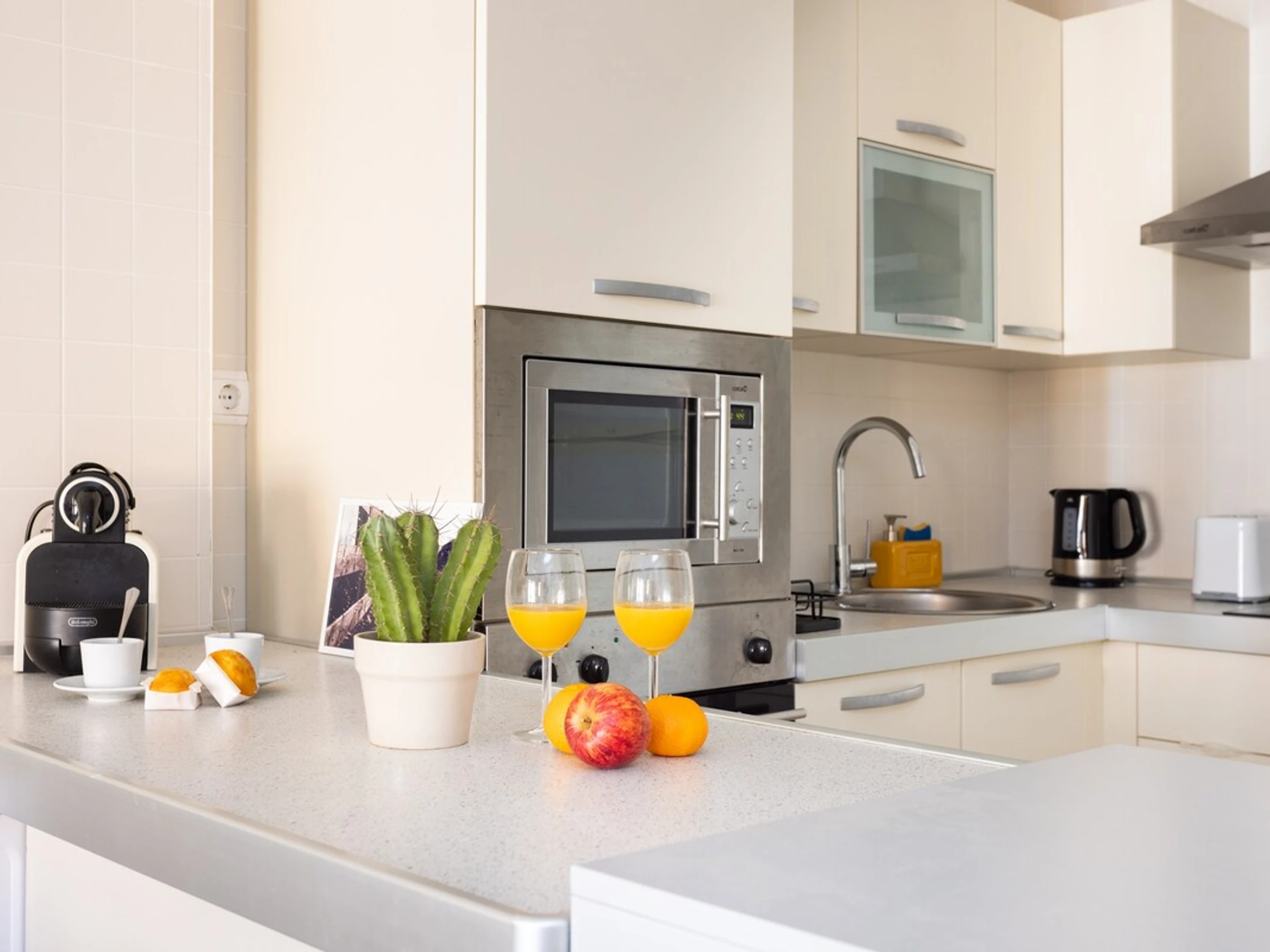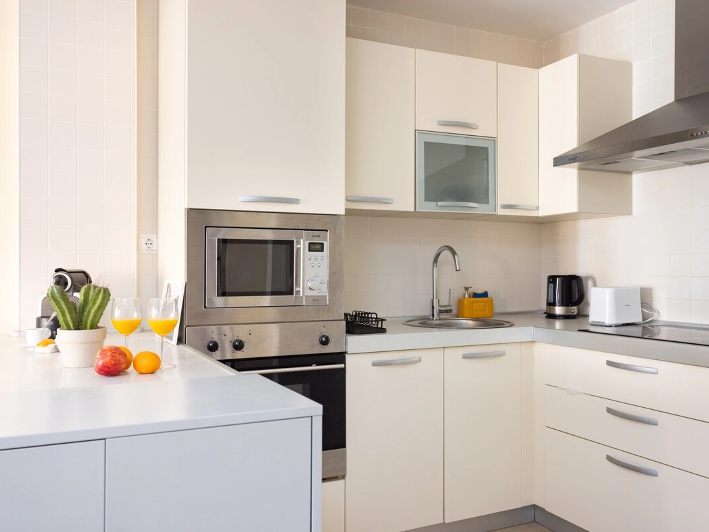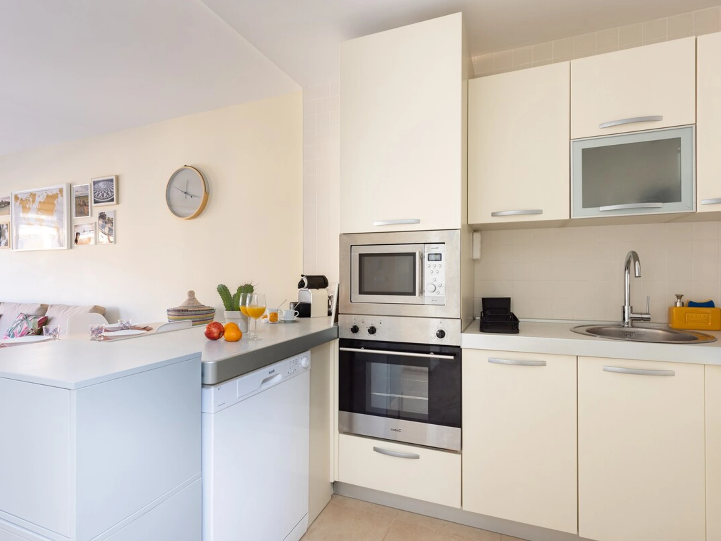 Dieses küche, ist ausgestattet in mikrowelle, backofen, spülmaschine, kochutensilien und kaffeemaschine.