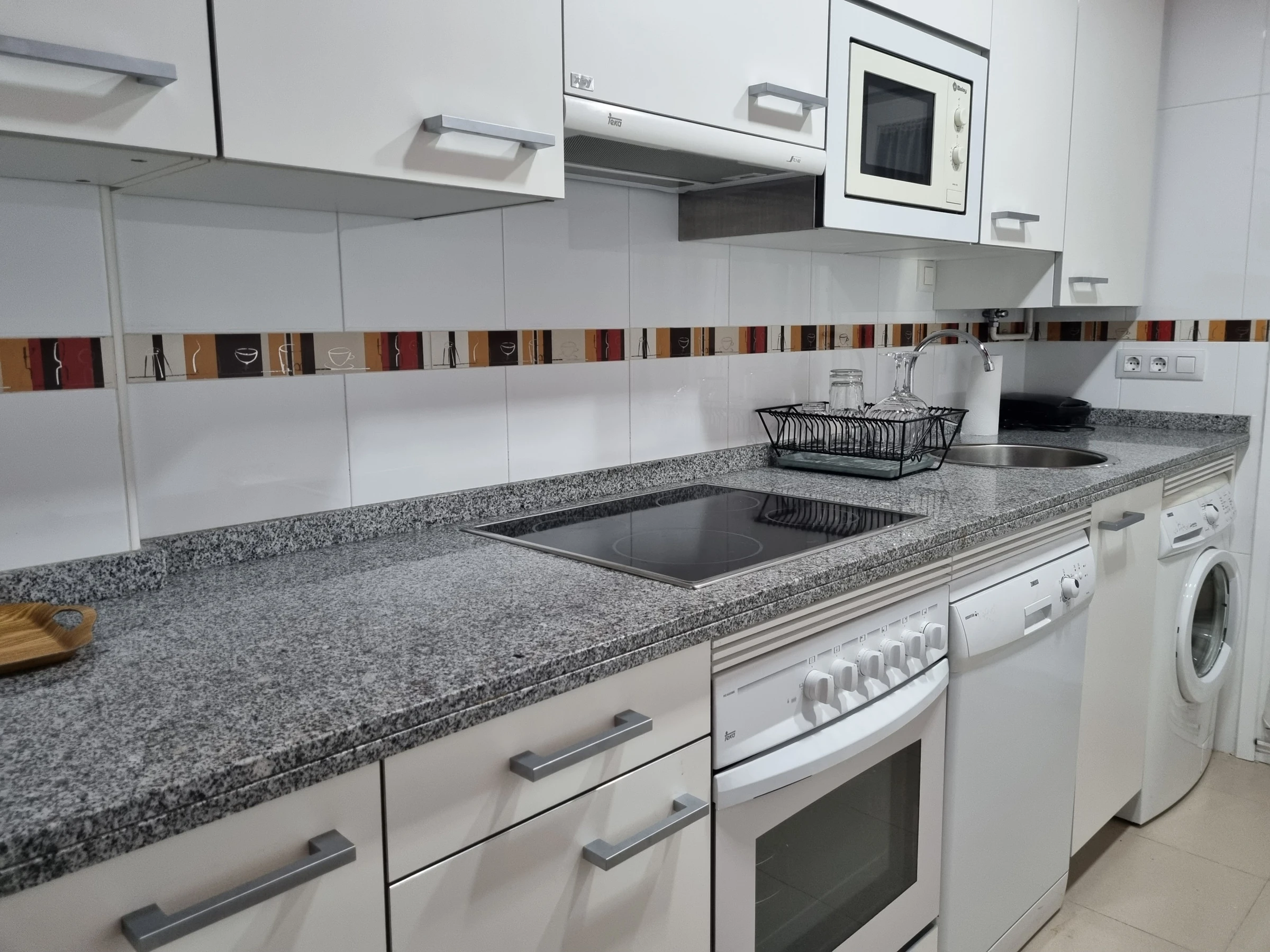 Dieses separate küche, mit ceranfeld, ist ausgestattet in kühlschrank, mikrowelle, backofen, gefrierschrank, geschirr/besteck, kochutensilien, kaffeemaschine, toaster und saftpresse.