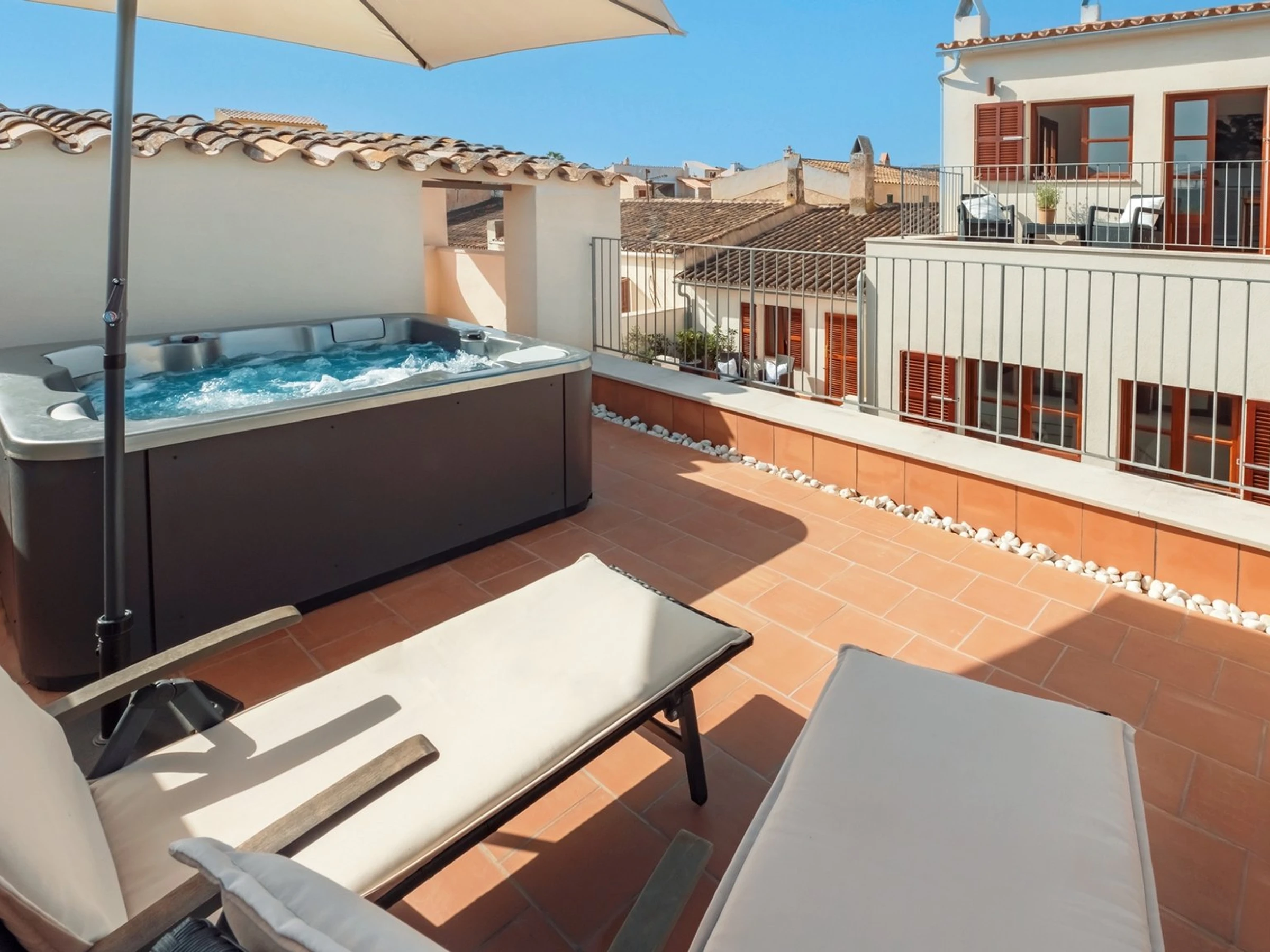 Die Unterkunft verfügt über terrasse, waschmaschine, trockner, grill, kamin, bügeleisen/-brett, safe, internet, balkon, fitnessraum, zentralheizung, klimaanlage, 1 Fernseher.