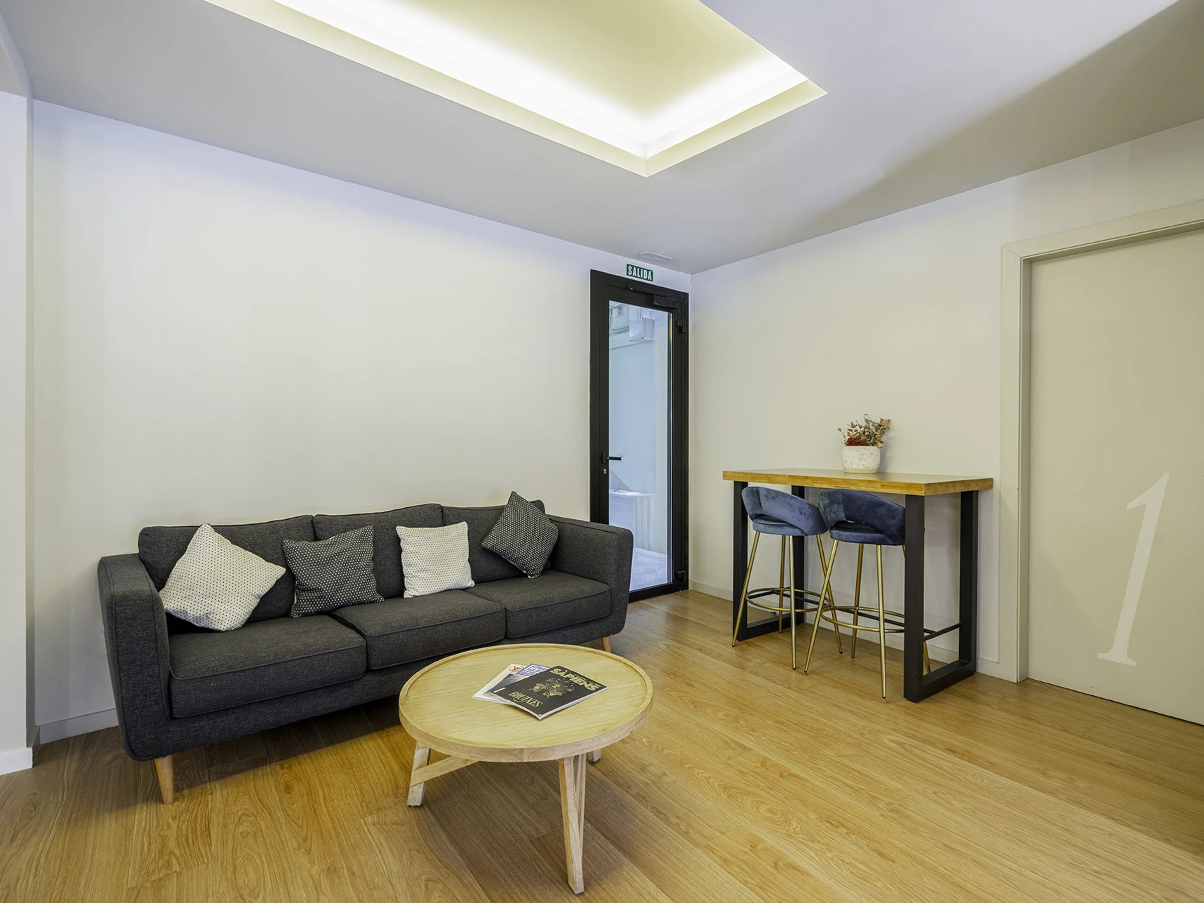 Das Gebäude verfügt über eine Gemeinschaftsfläche auf dem Dach mit einem Chill-out-Bereich, wo Sie sich nach einem langen Tag entspannen können.