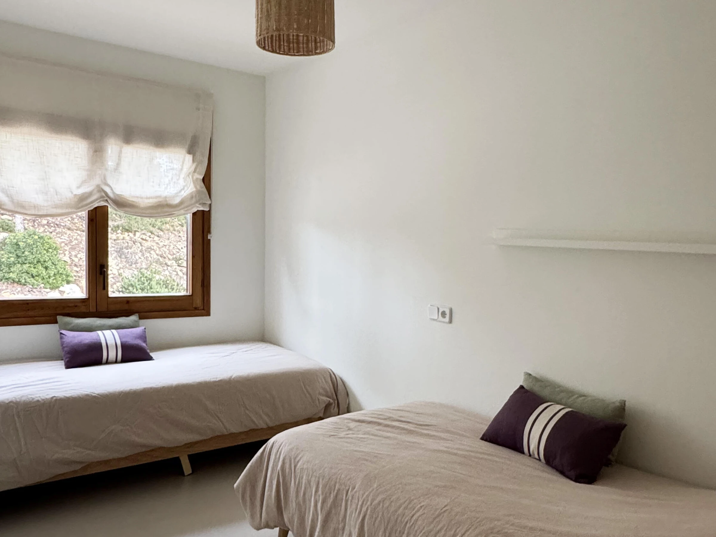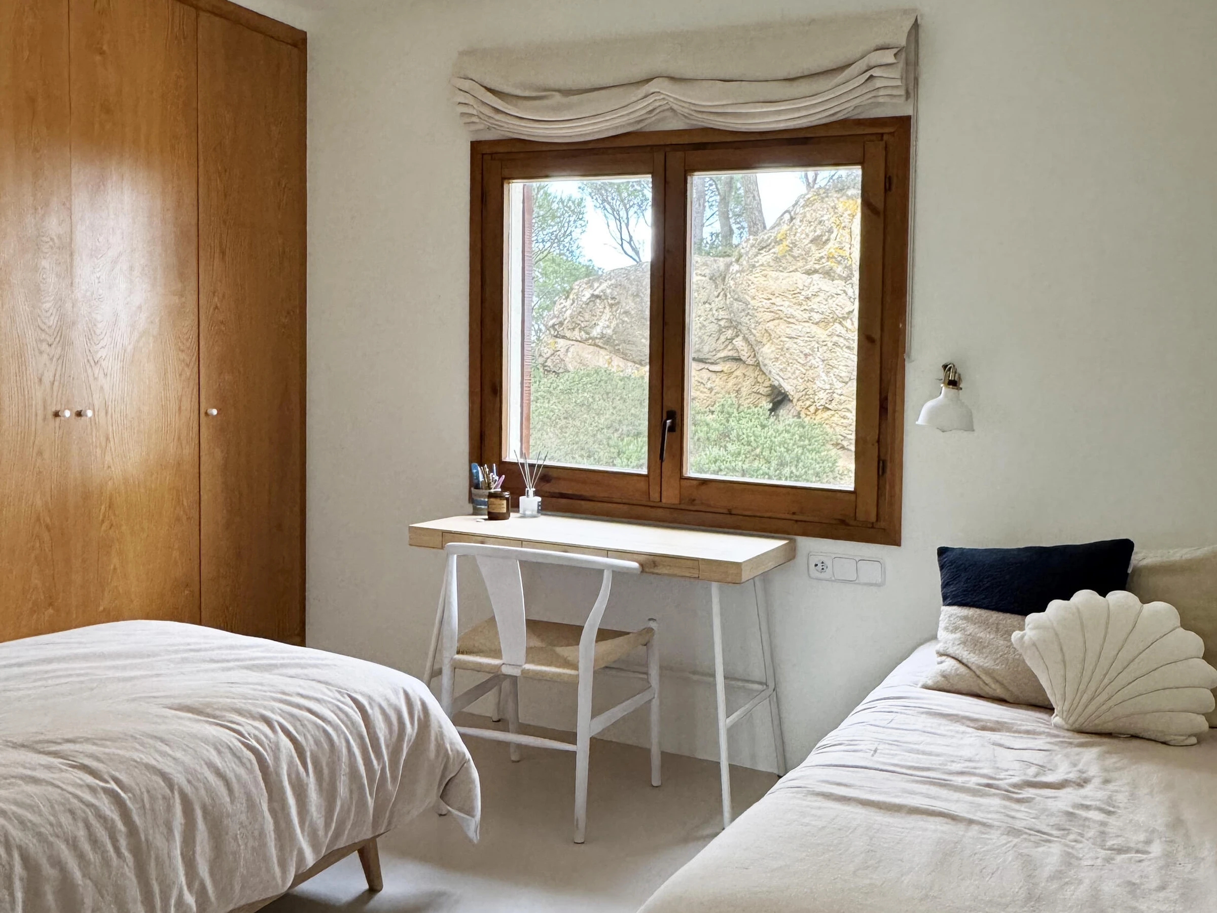 Dieses helle und kürzlich renovierte Haus liegt in einer ruhigen Wohngegend, nur wenige Schritte vom berühmten Strand Sa Tuna entfernt. Im Erdgeschoss befindet sich ein geräumiges, lichtdurchflutetes Wohn-/Esszimmer mit Zugang zu einer großen Terrasse mit atemberaubendem Meerblick. Die Terrasse ist mit Grill und Markise ausgestattet und lädt zum Essen und Entspannen im Freien ein. Ebenfalls auf dieser Ebene befinden sich eine separate, voll ausgestattete Küche, ein WC und eine Garage. Im Obergeschoss befinden sich die vier Schlafzimmer: zwei mit Doppelbetten und zwei mit je zwei Einzelbetten sowie zwei Badezimmer mit Dusche. Das Haus ist Teil einer gepflegten Anlage mit einem großen Gemeinschaftspool, umgeben von einer weitläufigen Rasenfläche – ideal zum Entspannen, Sonnenbaden oder für Zeit mit der Familie. Dieses Anwesen bietet Komfort, viel Platz, Außenbereiche und Meerblick in idyllischer Lage für einen unvergesslichen Urlaub.