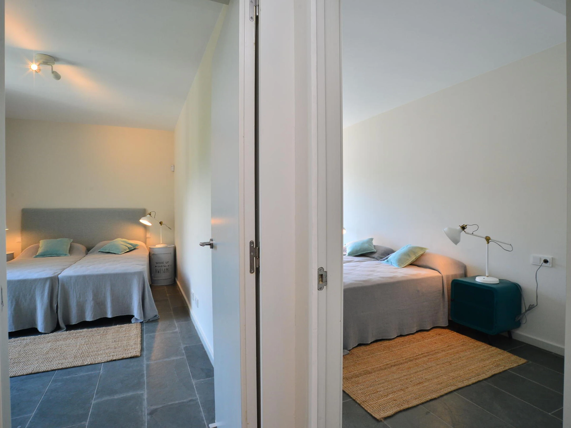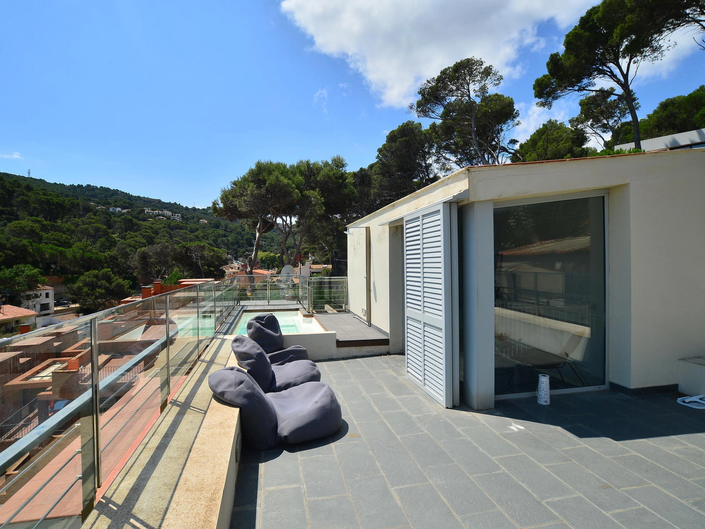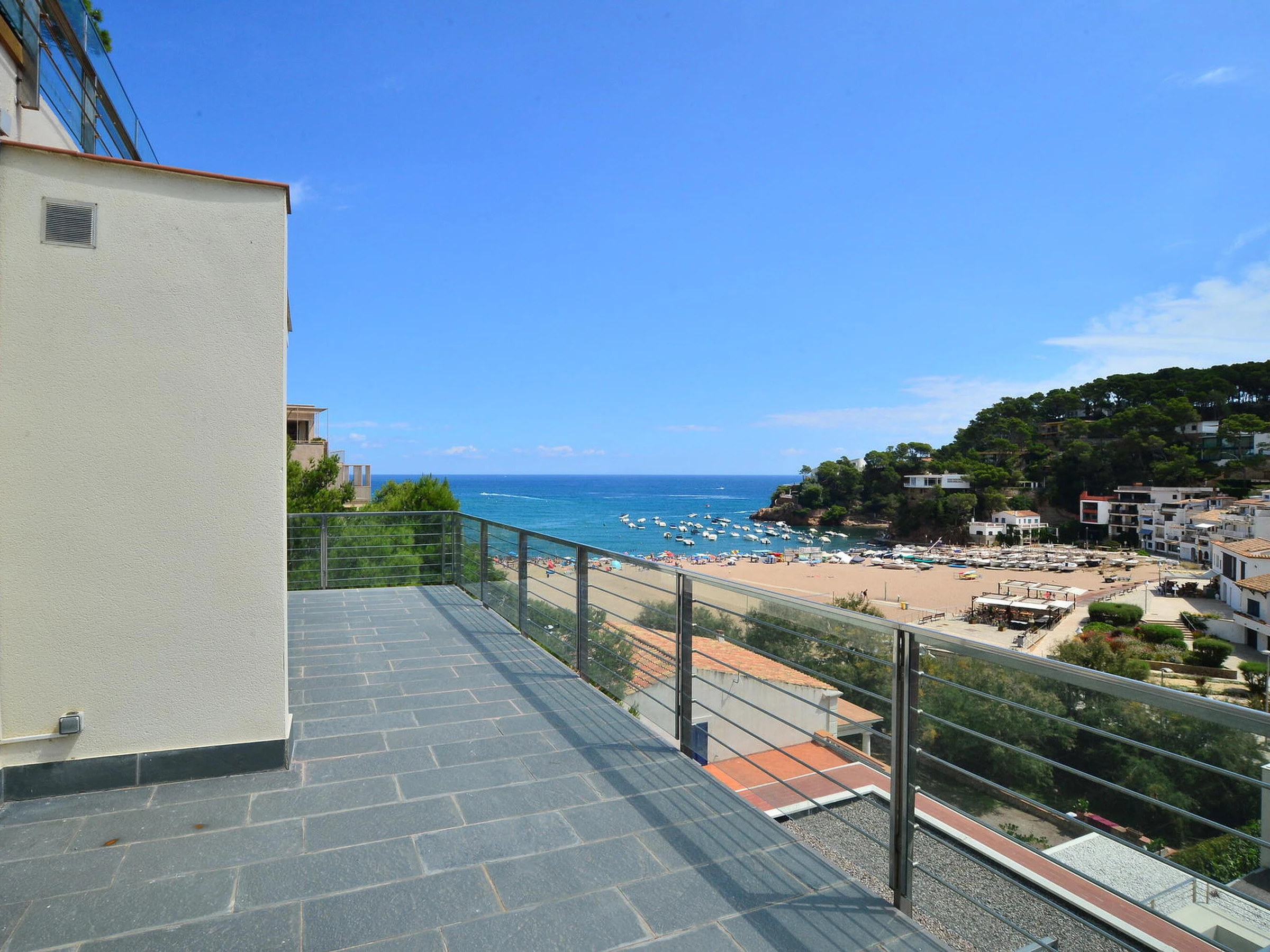 Schöne und komfortable Mietwohnung am Strand von Sa Riera, 5 Autominuten vom Zentrum von Begur, Costa Brava, entfernt. Kapazität für 6 Personen, 3 Schlafzimmer. Die Wohnung erstreckt sich über drei Etagen: Im Hauptgeschoss befinden sich ein Wohn-Esszimmer mit Zugang zu einer Terrasse mit Blick auf den Strand von Sa Riera, ein Badezimmer und eine voll ausgestattete Küche. Im oberen Stockwerk gibt es einen Raum mit Sofa und Zugang zu einer großen Terrasse mit einem kleinen, flachen Pool (180x470, Tiefe 60 cm). Im Untergeschoss befinden sich die drei Doppelschlafzimmer (eines davon als Suite mit Badewanne) sowie ein weiteres vollständiges Badezimmer. Kleiner Garten am Eingang der Wohnung. Ein Parkplatz steht zur Verfügung. Zum Strand gelangt man über einige Treppenstufen. Fernseh- und 3G-Internetservice können aufgrund schlechter Netzabdeckung in der Gegend nicht garantiert werden. Für weitere Fragen zur Immobilie stehen wir Ihnen gerne zur Verfügung.
