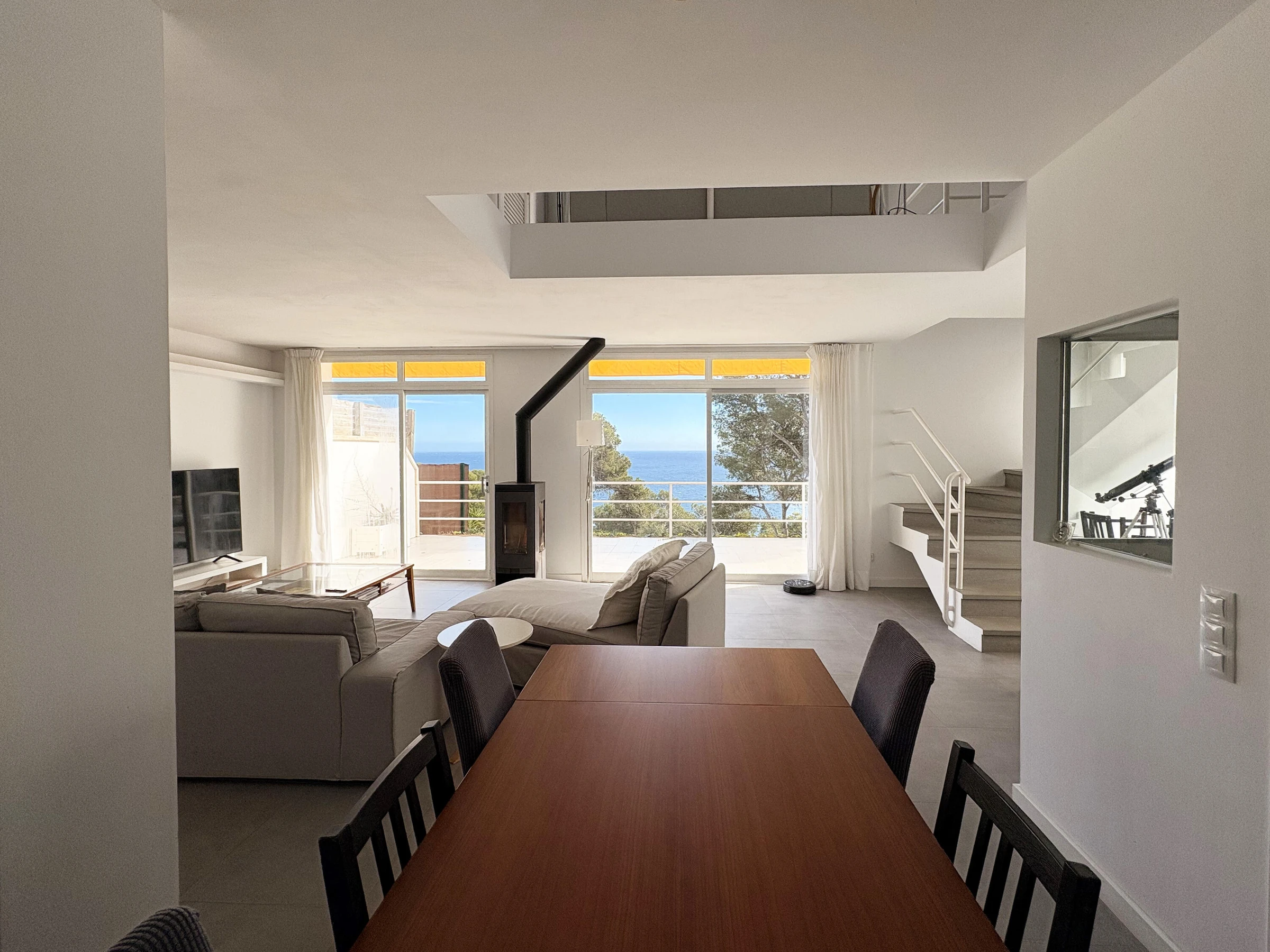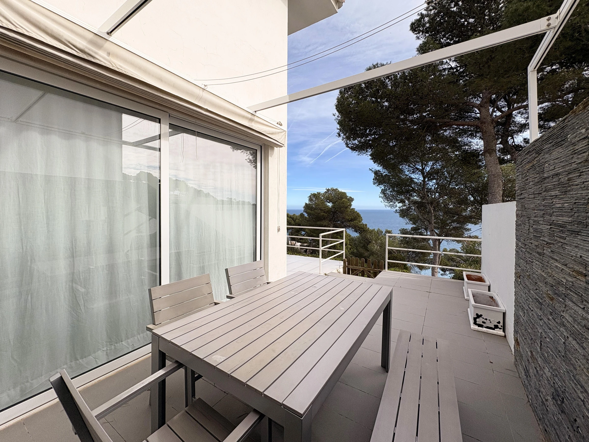Dieses charmante Stadthaus bietet einen atemberaubenden Meerblick und liegt in einer ruhigen Wohnanlage mit nur sechs Häusern, was eine intime und entspannte Atmosphäre gewährleistet. Das Anwesen verfügt über einen Gemeinschaftspool, der ideal ist, um sonnige Tage zu genießen und sich in einer ruhigen Umgebung abzukühlen. Das Hotel liegt nur 1,5 km vom malerischen Strand Sa Tuna entfernt, der für seine natürliche Schönheit und sein kristallklares Wasser bekannt ist, und 4 km vom lebhaften Zentrum von Begur, wo Sie eine Vielzahl von Restaurants, Geschäften und die reiche lokale Kultur entdecken können. Das Haus erstreckt sich über zwei Ebenen und bietet ein funktionales und warmes Design. Im ersten Stock werden Sie von einem Flur begrüßt, der Zugang zu zwei großen Doppelzimmern bietet, eines davon mit eigenem Bad, das Privatsphäre und Komfort bietet. Zusätzlich gibt es ein Einzelschlafzimmer mit Etagenbett, ideal für Kinder oder Gäste. Außerdem steht Ihnen ein zusätzliches Badezimmer mit Dusche zur Verfügung, das allen Bewohnern des Hauses Komfort bietet. Im Erdgeschoss öffnet sich der Raum zu einem geräumigen und hellen Wohn-Esszimmer, wo Sie angenehme Momente mit der Familie oder Freunden verbringen können. Dieser Raum ist komfortabel und funktional gestaltet und eignet sich perfekt zum Entspannen nach einem Tag am Strand. Die voll ausgestattete Küche geht nahtlos in das Wohnzimmer über und bietet Zugang zu einer großen Terrasse, auf der Sie im Freien speisen, ein Sonnenbad nehmen oder einfach entspannen und dabei den Meerblick bewundern können. Zusätzlich gibt es auf dieser Etage eine Gästetoilette, die den Komfort Ihrer Gäste noch weiter erhöht. Zum Haus gehört außerdem ein PKW-Stellplatz, der Ihnen das Parken erleichtert und einen bequemen Zugang zu Ihrer Unterkunft ermöglicht. Kurz gesagt, dieses Doppelhaus ist nicht nur ein idealer Ort zum Leben, sondern auch ein perfekter Zufluchtsort, um die Schönheit der Costa Brava zu genießen. Mit seiner erstklassigen Lage, dem Meerblick und dem Zugang zu einer ruhigen Gemeinde ist es der perfekte Ort, um unvergessliche Erinnerungen in einer natürlichen und einladenden Umgebung zu schaffen.