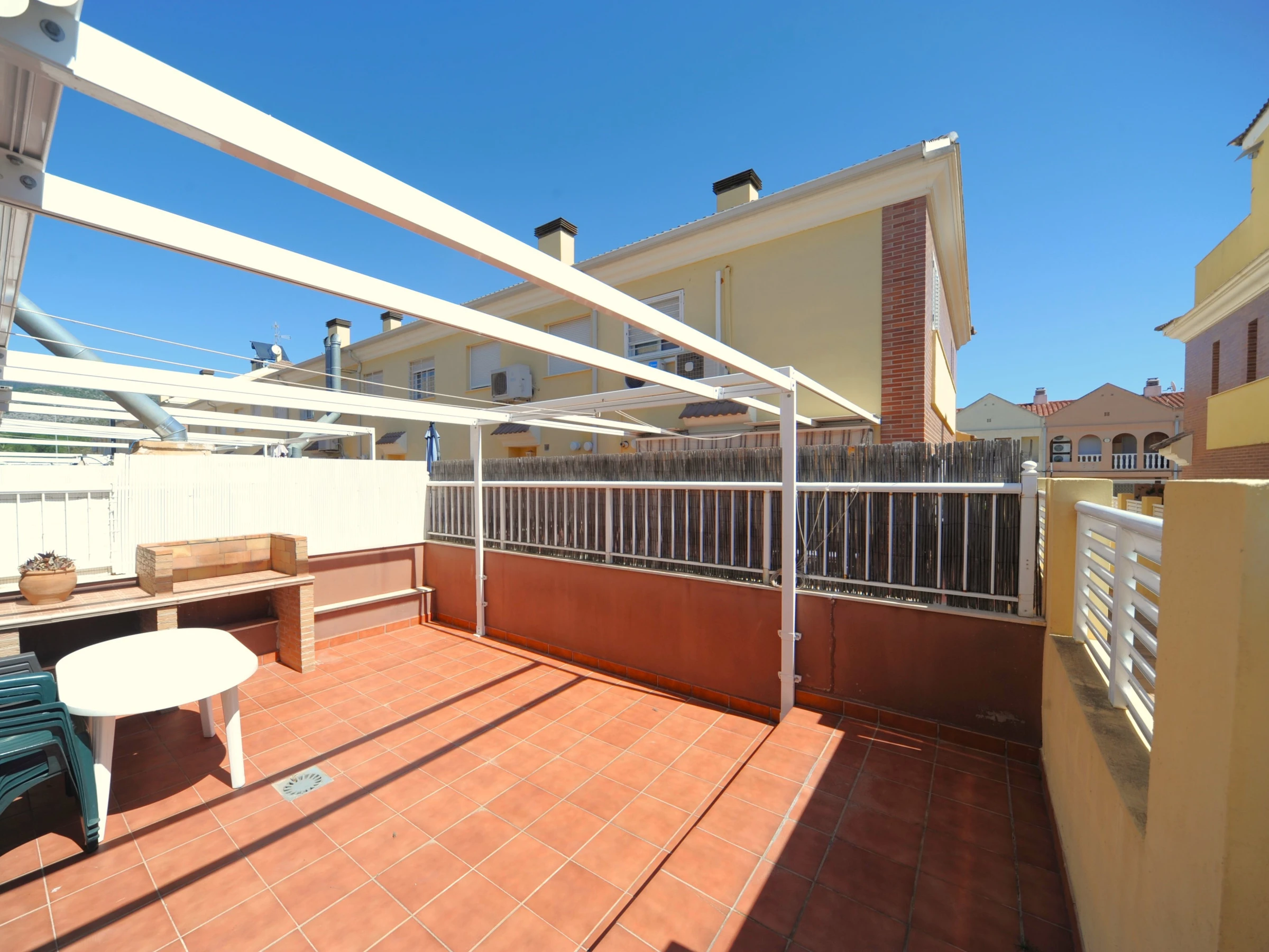 "Entdecken Sie den Charme dieses gemütlichen Reihenhauses in Benicàssim, das Platz für 9 Personen in 4 Schlafzimmern bietet. Mit 100 m² großzügigem und komfortablem Raum, in einer ruhigen Wohnanlage nur 1 km vom Supermarkt 'CONSUM' und 2 km vom schönen Sandstrand 'HELIOPOLIS' entfernt. Diese Unterkunft verfügt über eine private Terrasse, Gartenmöbel, Waschmaschine, Bügeleisen, Kinderspielplatz, Klimaanlage und Zugang zu einem Gemeinschaftspool. Darüber hinaus umfasst sie eine Garage im selben Gebäude und einen Fernseher für Ihre Unterhaltung. Die separate und voll ausgestattete Küche bietet alle notwendigen Annehmlichkeiten, vom Kühlschrank und Mikrowelle bis zur Spülmaschine und Kaffeemaschine. Genießen Sie einen unvergesslichen Urlaub in dieser Oase der Ruhe, nur 4 km vom Dorf 'Benicàssim' entfernt!"