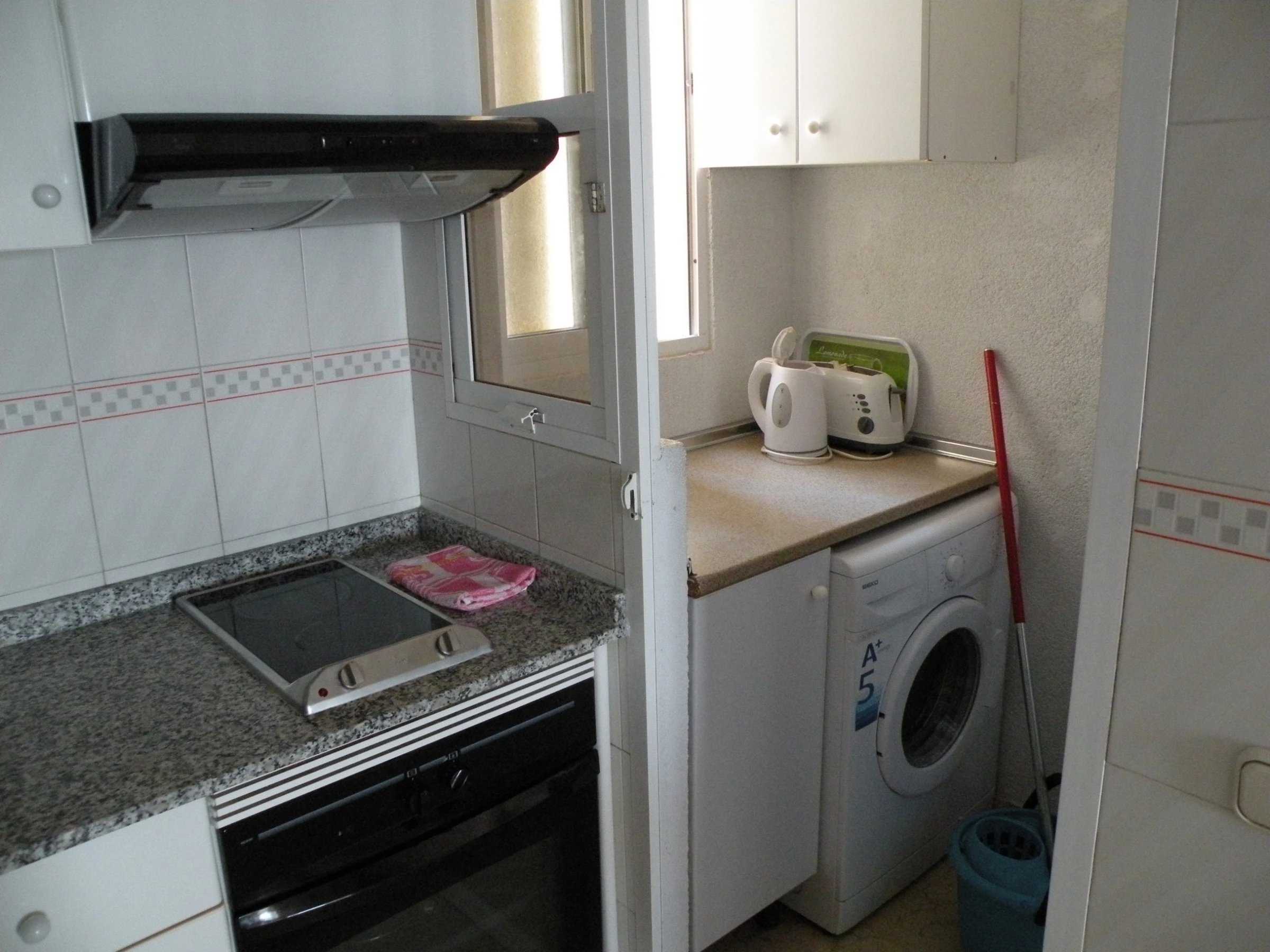 Dieses offene küche, elektrisches kochfeld, ist ausgestattet in kühlschrank, mikrowelle, backofen, gefrierschrank, geschirr/besteck, kochutensilien, kaffeemaschine, toaster, wasserkocher und saftpresse.