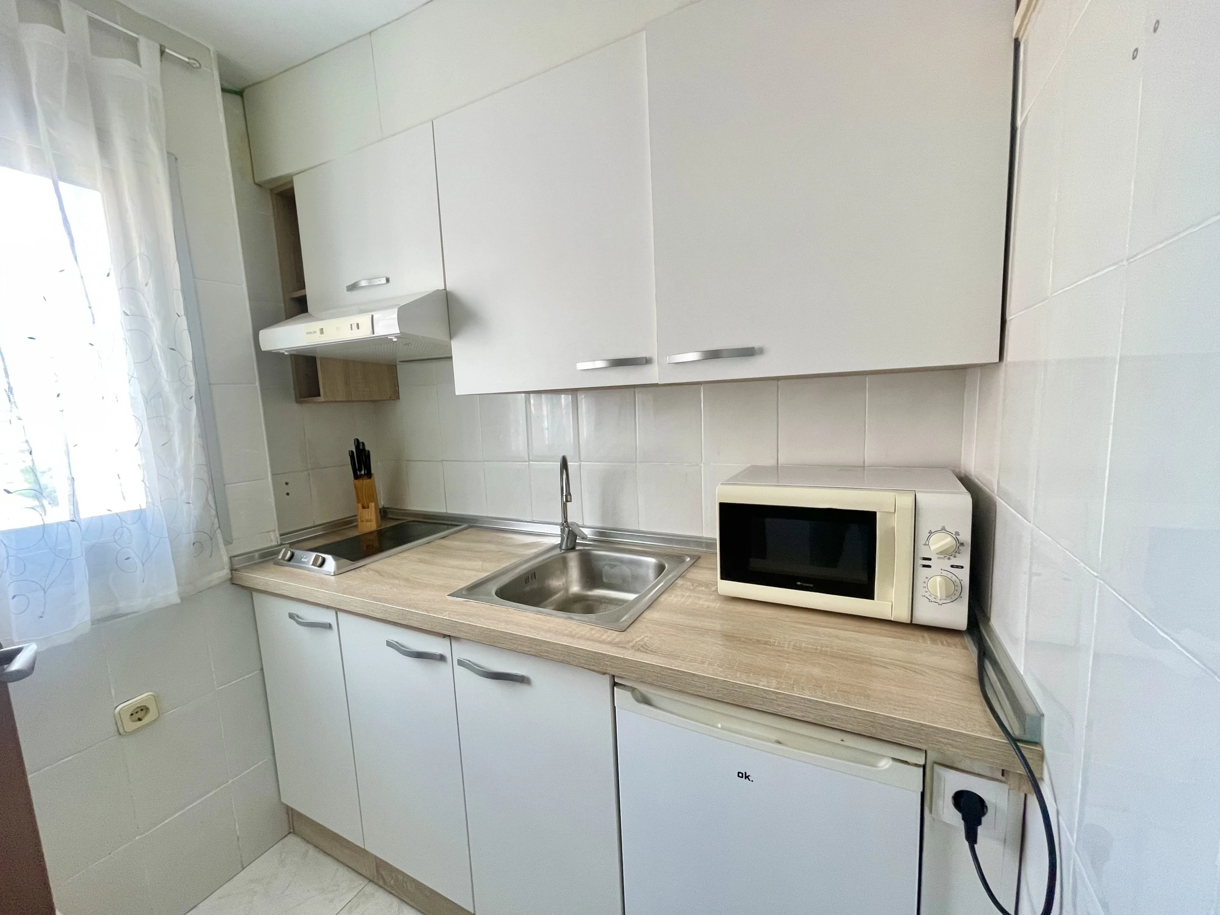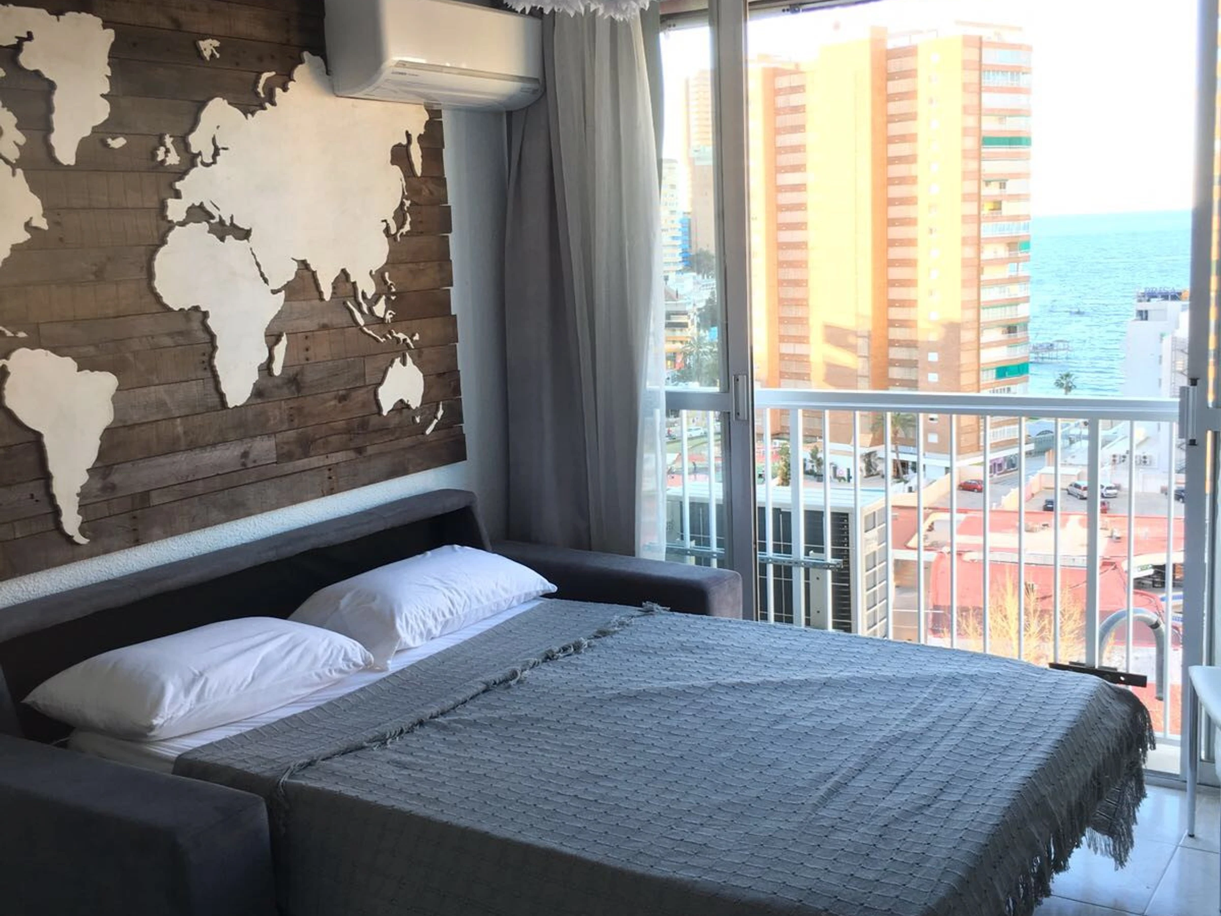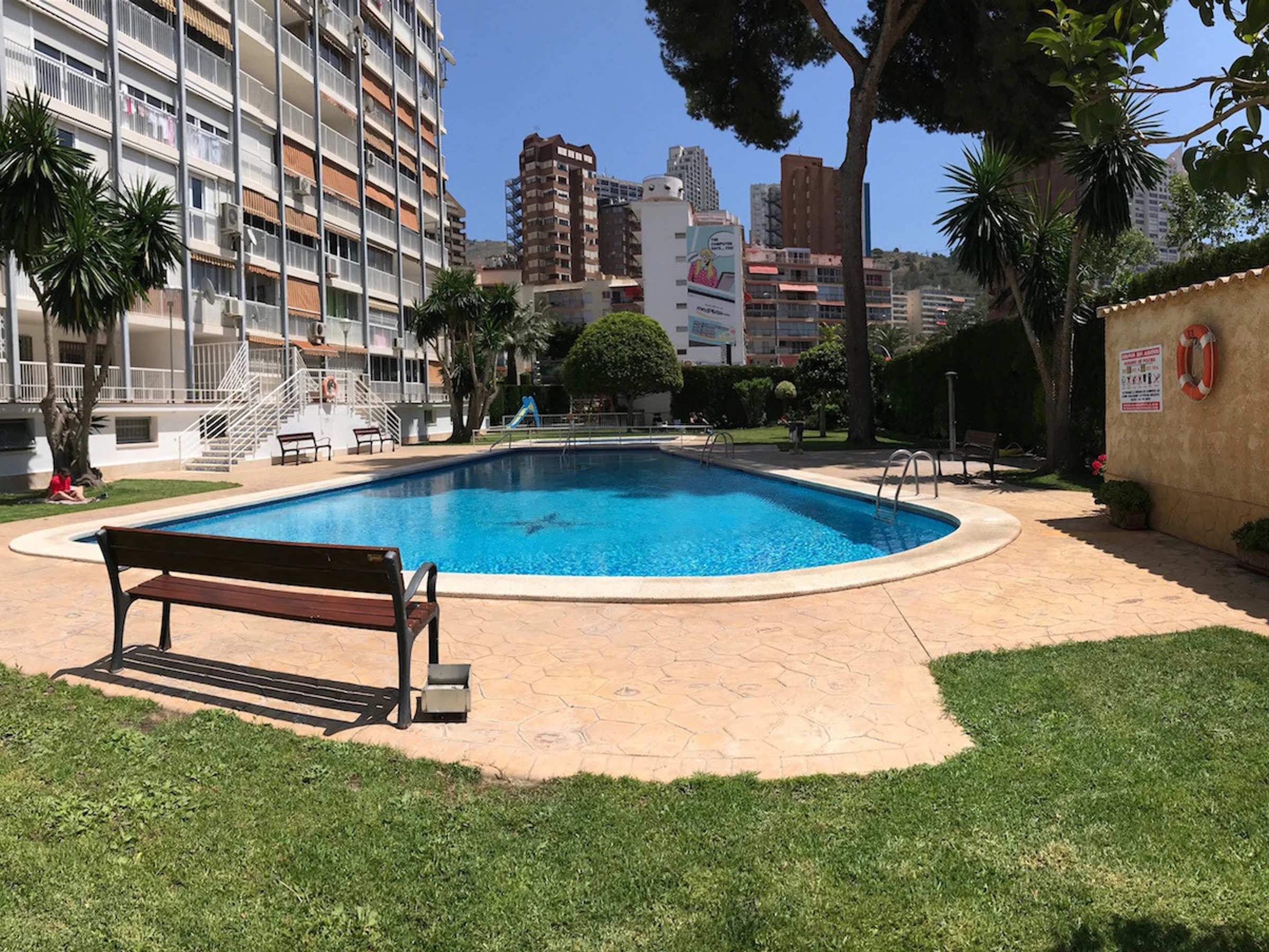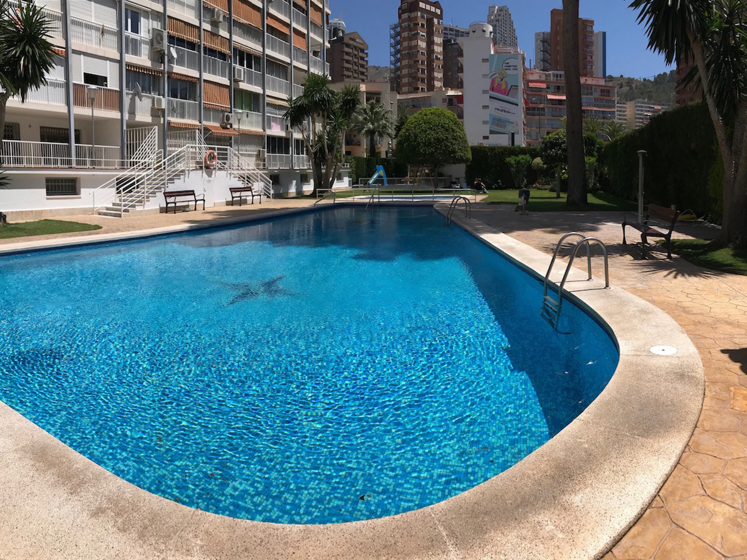 Die Wohnung in Benidorm verfügt über 1 Schlafzimmer und Platz für 4 Personen. Eine gemütliche Unterkunft von 38 m² mit Blick auf das Meer und den Garten. Sie befindet sich 100 m vom Sandstrand "PLAYA LEVANTE", 100 m vom Supermarkt "SUPERMERCADO", 100 m vom Restaurant "PLAYA DE LEVANTE", 1 km vom Naturpark "SERRA GELADA", 2 km vom Wasserpark "AQUALANDIA", 2 km von der Stadt "CASCO ANTIGUO", 2 km vom Busbahnhof "ESTACIÓN BENIDORM", 5 km vom Freizeitpark "TERRA MÍTICA", 5 km vom Golfplatz "VILLAITANA", 60 km vom Bahnhof "ALICANTE", 65 km vom Flughafen "AEROPUERTO DE ALICANTE" und liegt in einer idealen Zone für Familien direkt am Meer. Sie verfügt über einen Aufzug, Waschmaschine, Bügeleisen, Heizung mit Wärmepumpe, Klimaanlage nur im Wohnzimmer, Gemeinschaftspool, Parkplatz im Freien im selben Gebäude, Fernsehen. Die separate Küche mit Glaskeramikkochfeld ist ausgestattet mit Kühlschrank, Mikrowelle, Gefrierschrank, Geschirr/Besteck, Küchenutensilien, Kaffeemaschine, Toaster und Wasserkocher.