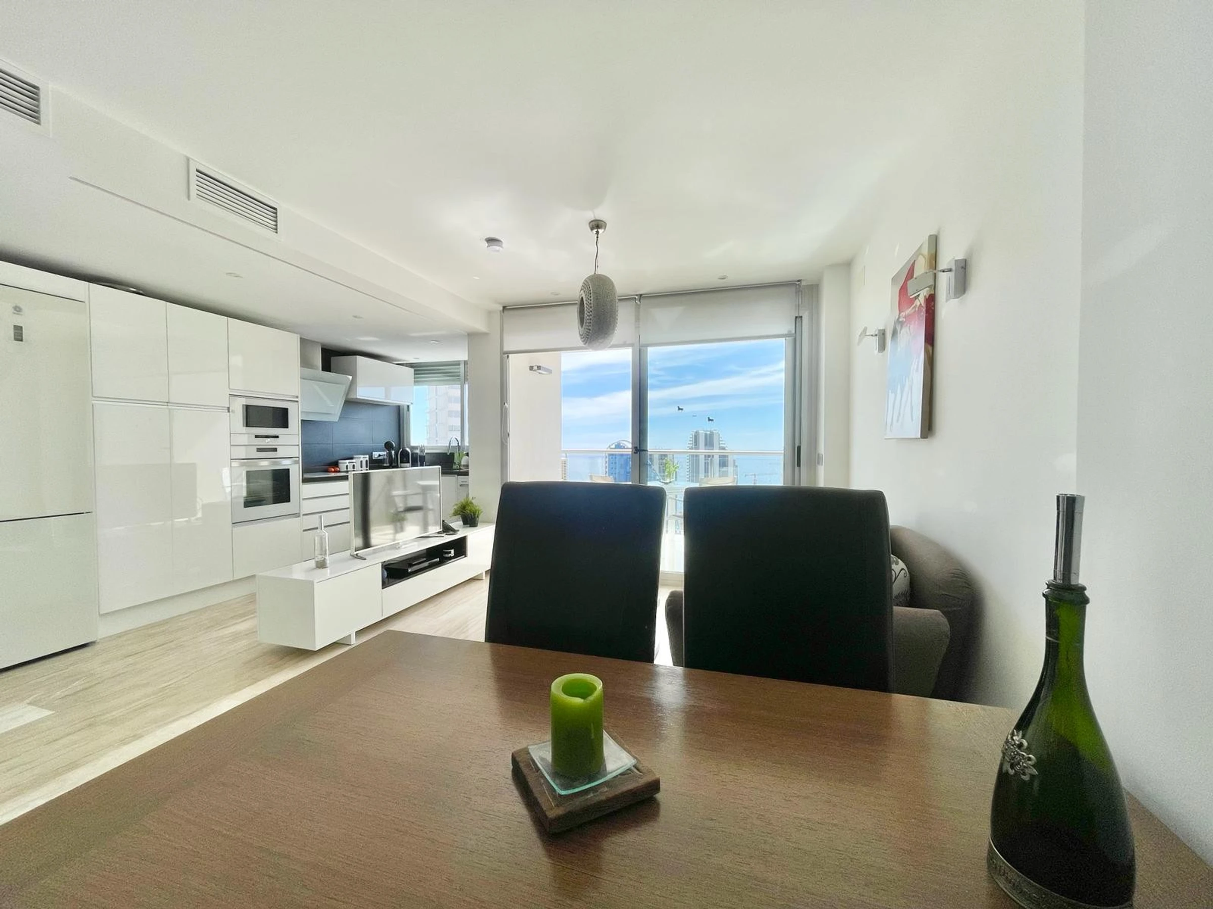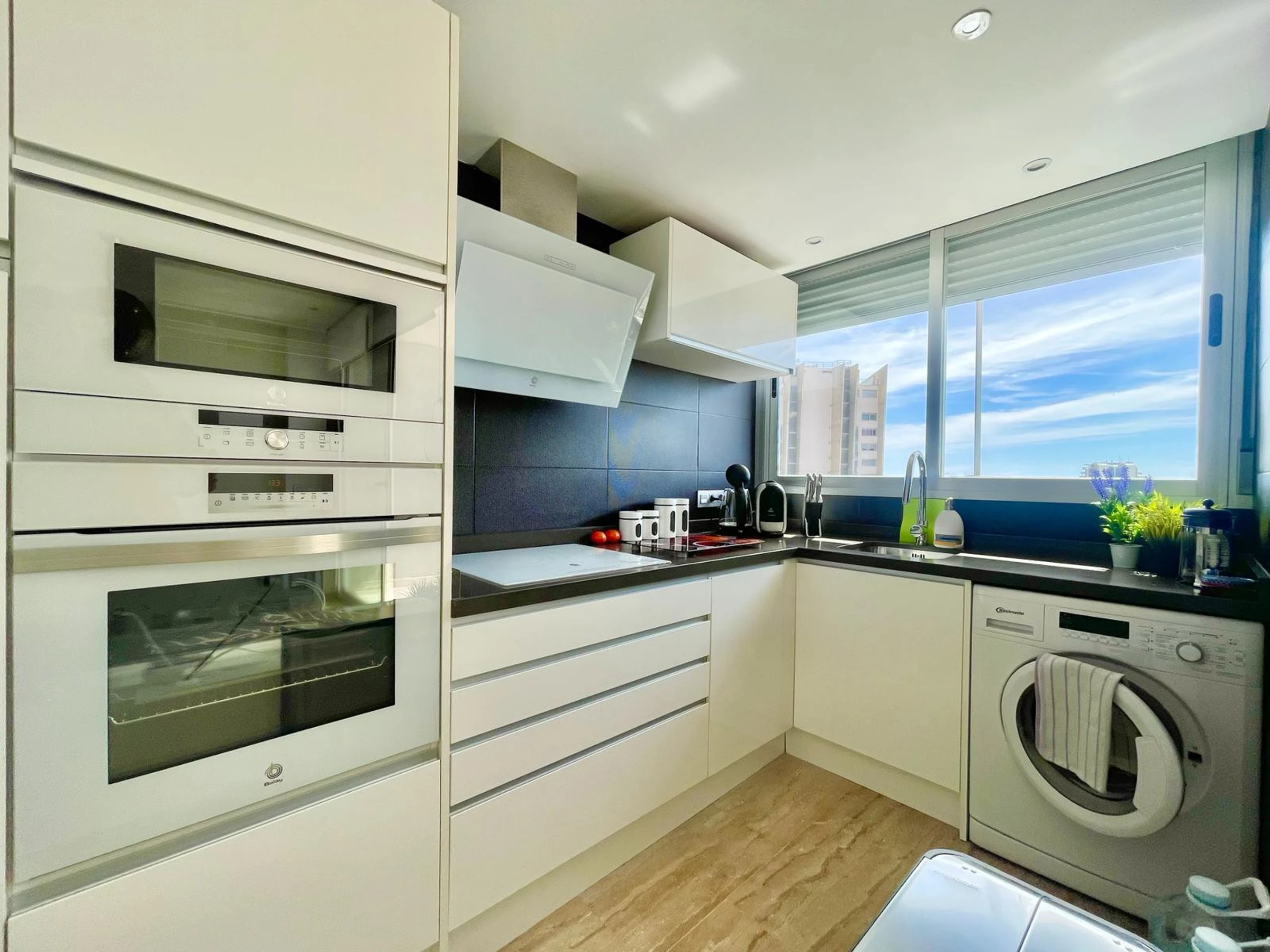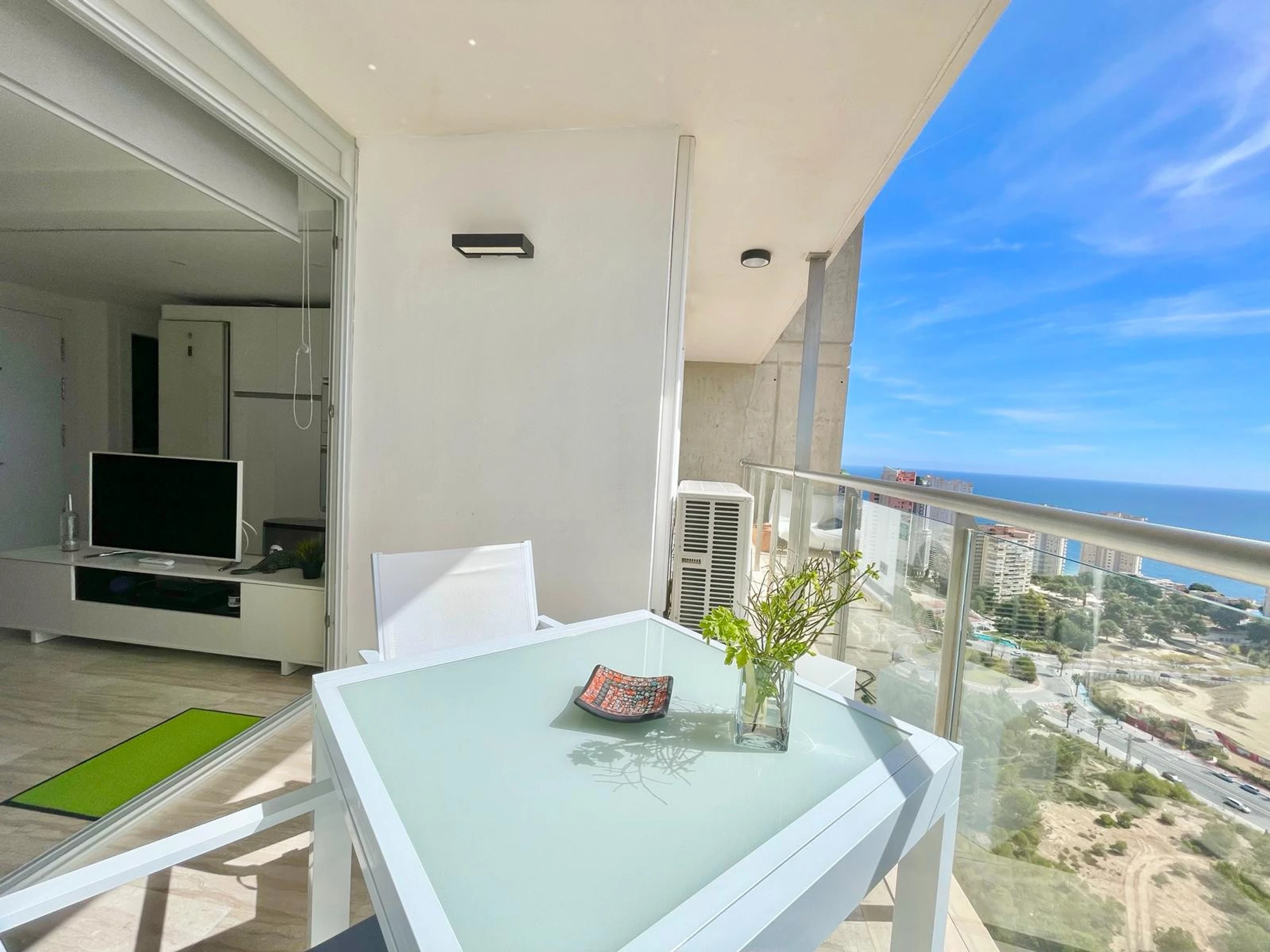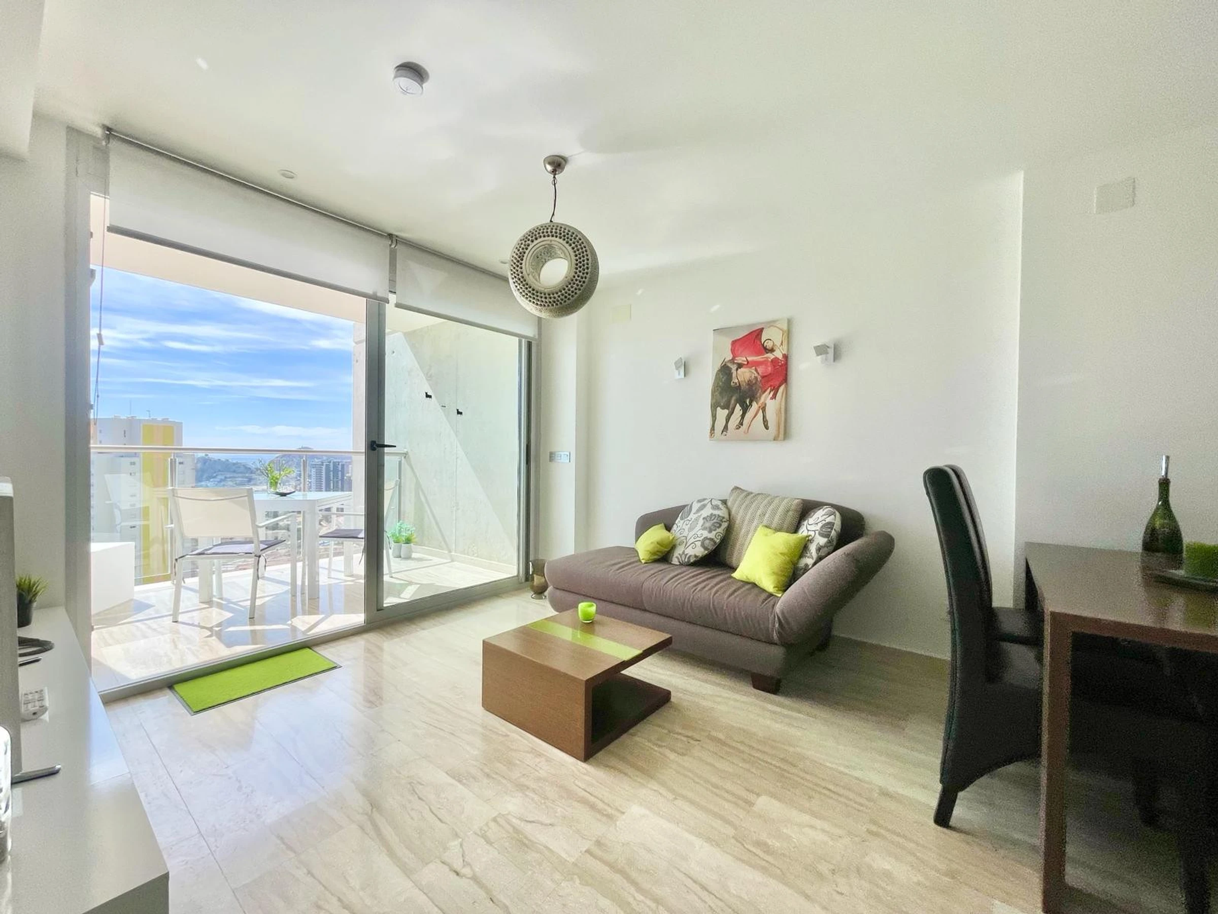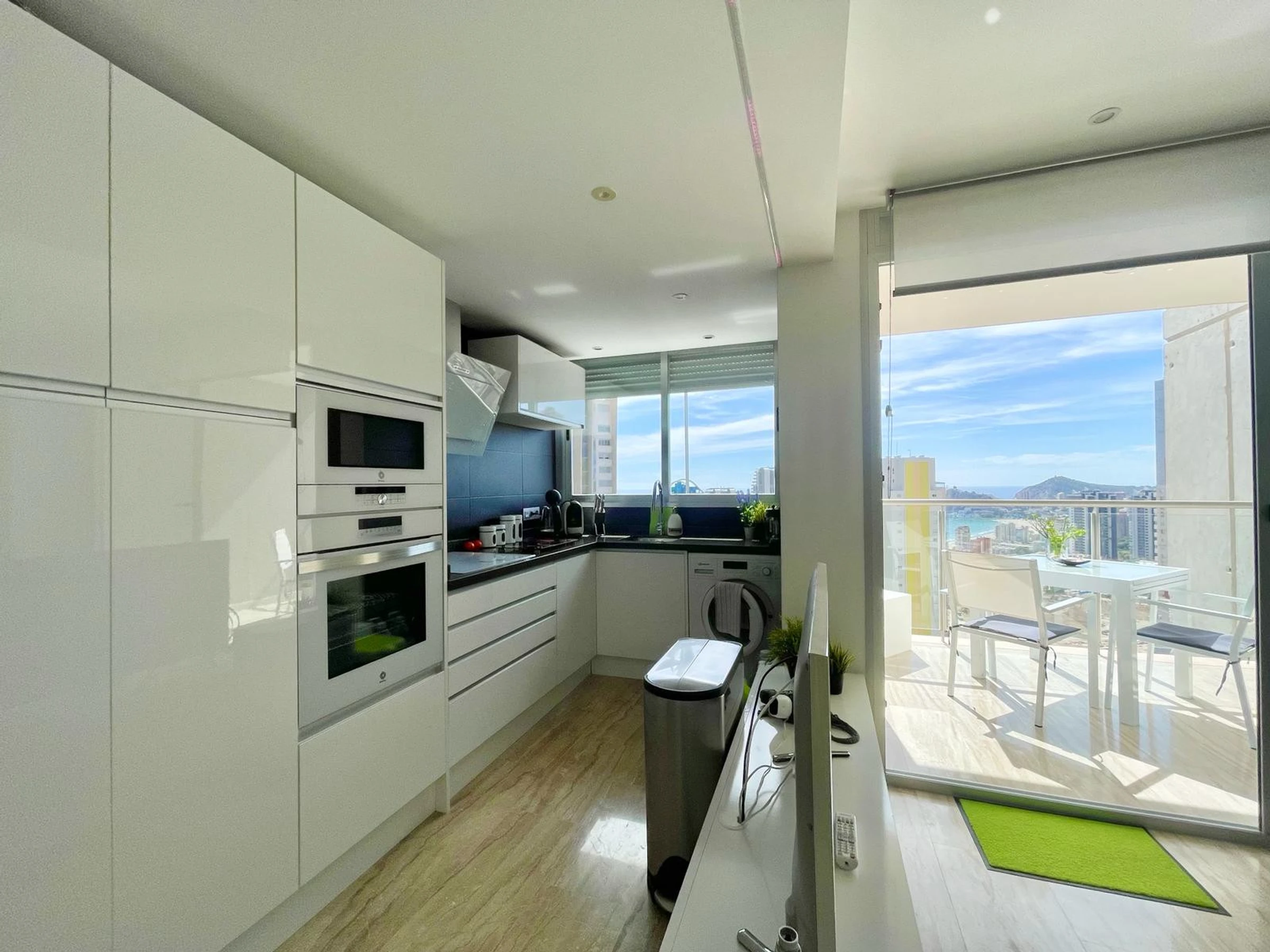 Die Wohnung in Benidorm verfügt über 1 Schlafzimmer und Platz für 2 Personen. Unterkunft von 60 m² geschmackvoll und modern eingerichtet, mit Meerblick. Sie befindet sich 100 m vom Golfplatz "LAS REJAS", 100 m vom Supermarkt, 100 m vom Restaurant, 100 m vom Café, 600 m vom Sandstrand "PLAYA DE PONIENTE", 1 km von der Stadt "CASCO ANTIGUO BENIDORM", 2 km vom Busbahnhof "BENIDORM", 3 km vom Freizeitpark "TERRA MITICA", 4 km vom Wasserpark "AQUALANDIA", 5 km vom Krankenhaus "HOSPITAL DE VILLAJOYOSA", 65 km vom internationalen Flughafen "ALICANTE", 65 km vom Flughafen "ALICANTE", 65 km vom Bahnhof "ALICANTE" und befindet sich in einer idealen Zone für Familien im Wohnkomplex. Sie verfügt über Aufzug, Garten, Terrasse, Waschmaschine, Bügeleisen, Internetzugang (WLAN), Haartrockner, Kinderzone, Tennisplatz, Padel-Platz, Heizung Wärmepumpe, Klimaanlage in der gesamten Unterkunft, Gemeinschaftspool, überdachten Parkplatz im selben Gebäude, Fernsehen. Die separate Küche mit Glaskeramikkochfeld ist ausgestattet mit Kühlschrank, Mikrowelle, Ofen, Gefrierschrank, Geschirrspüler, Geschirr/Besteck, Küchenutensilien, Kaffeemaschine, Toaster und Wasserkocher.