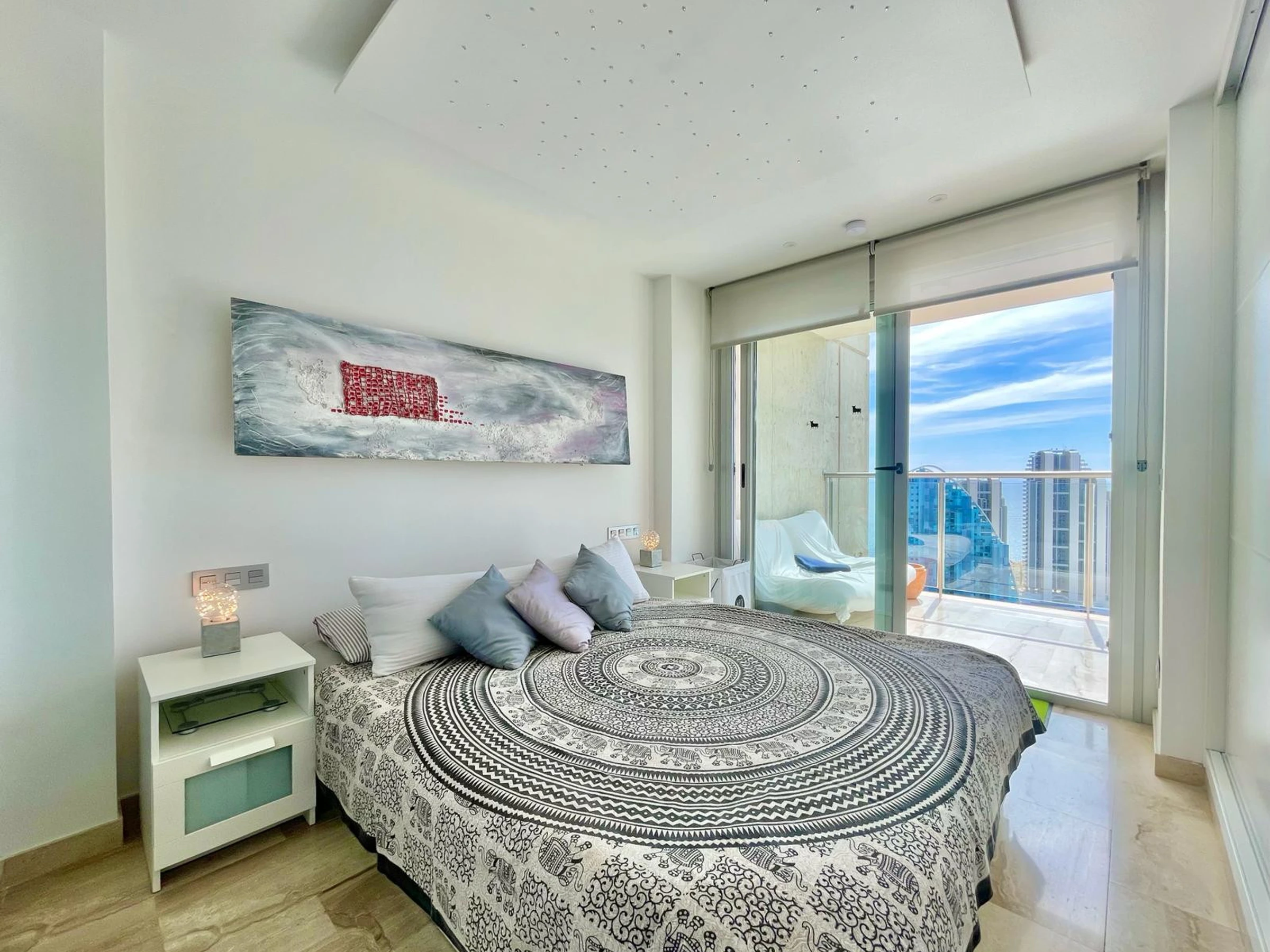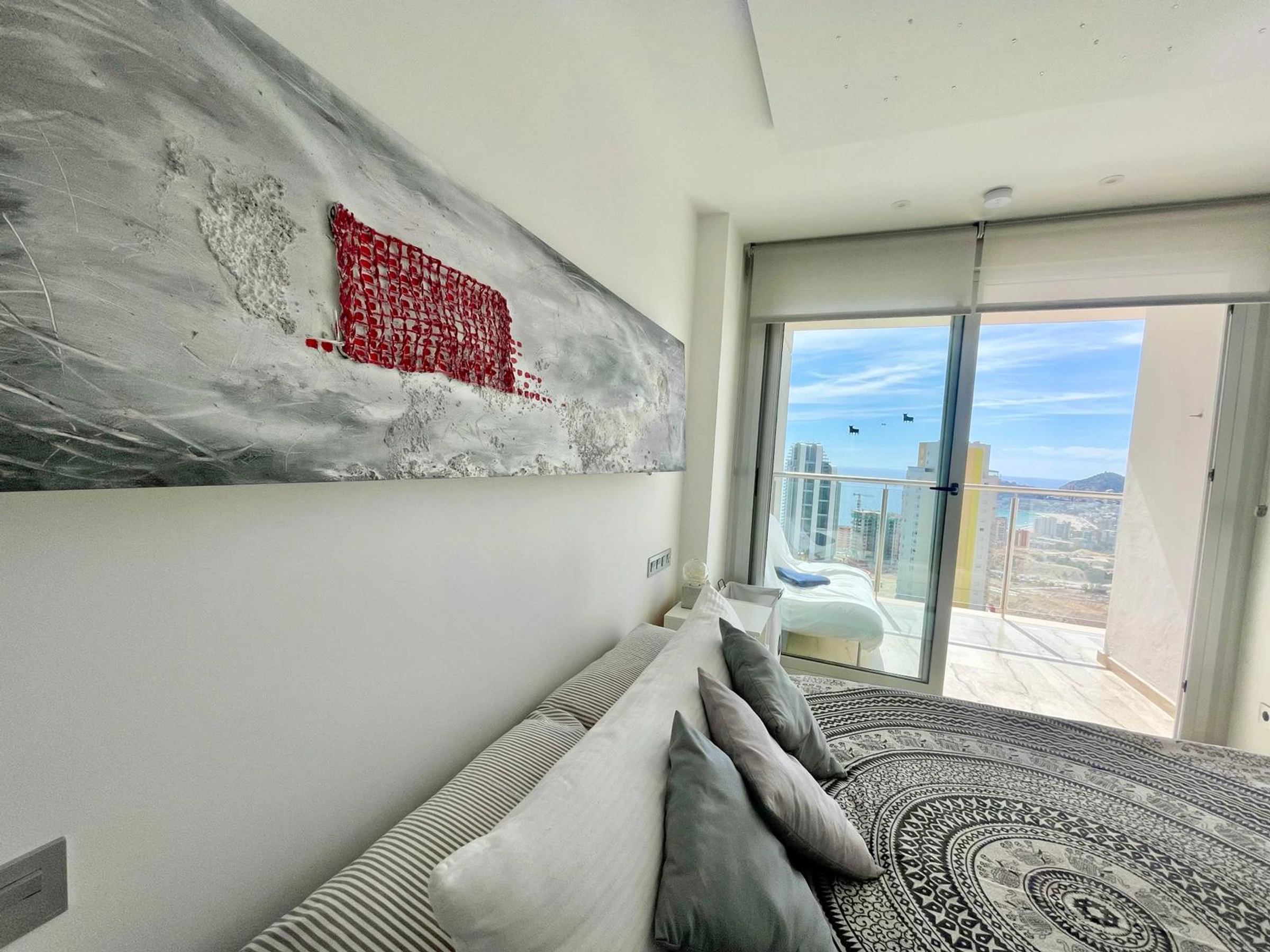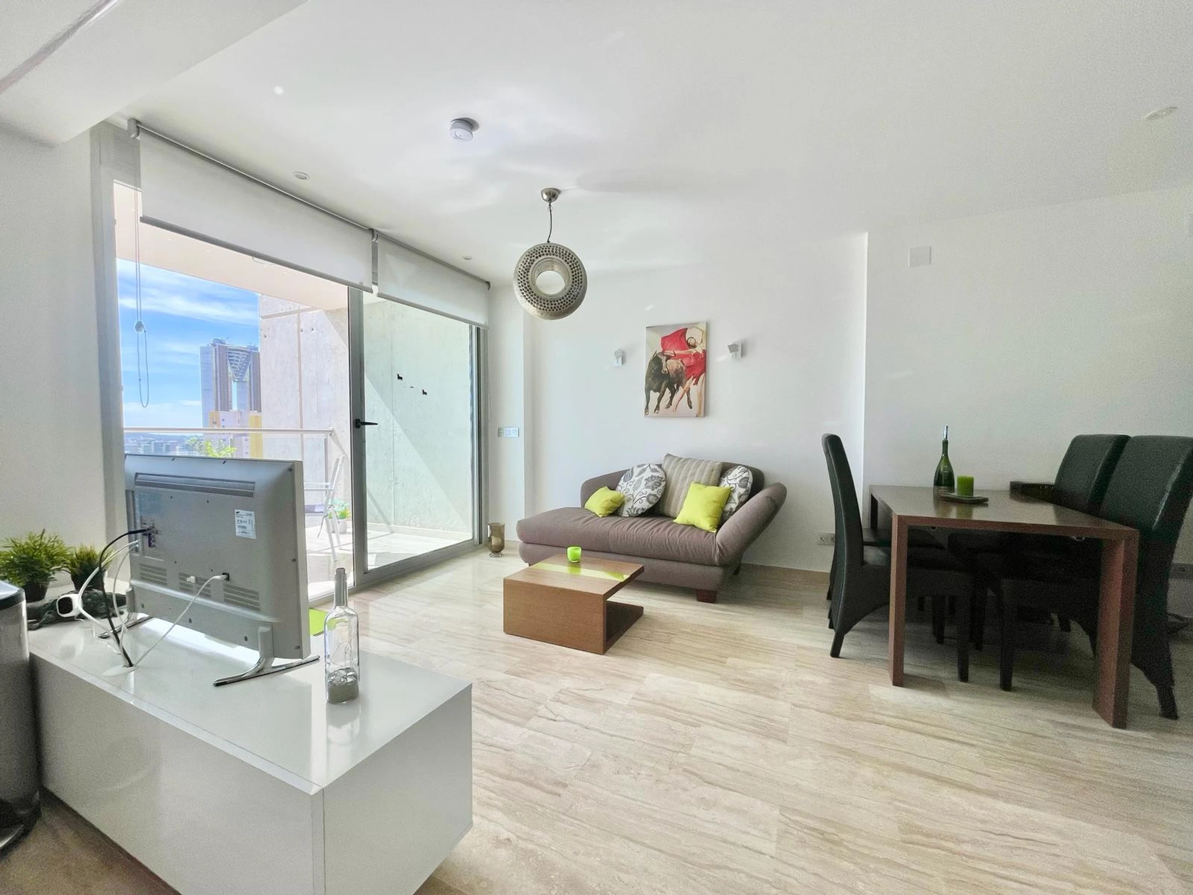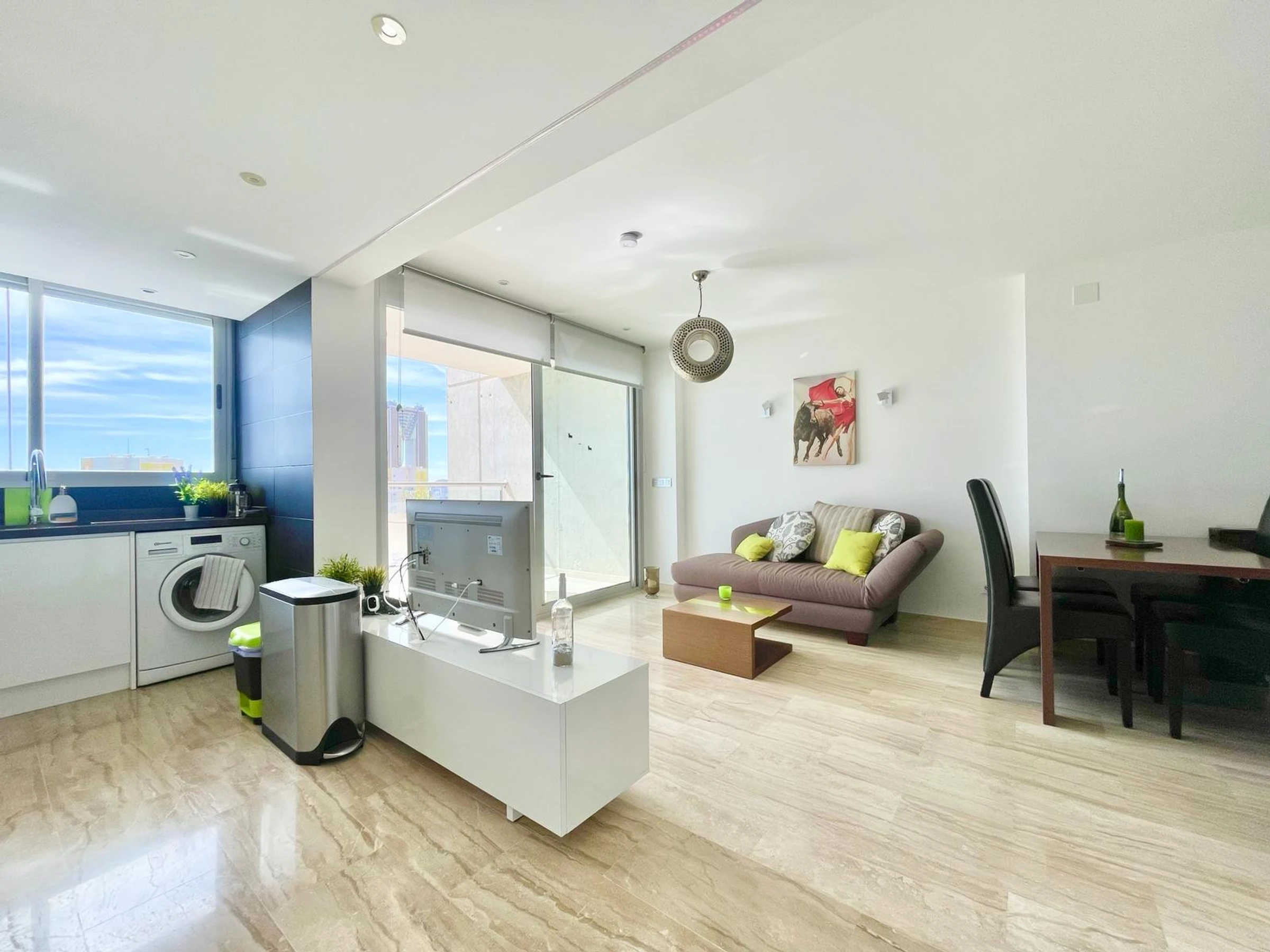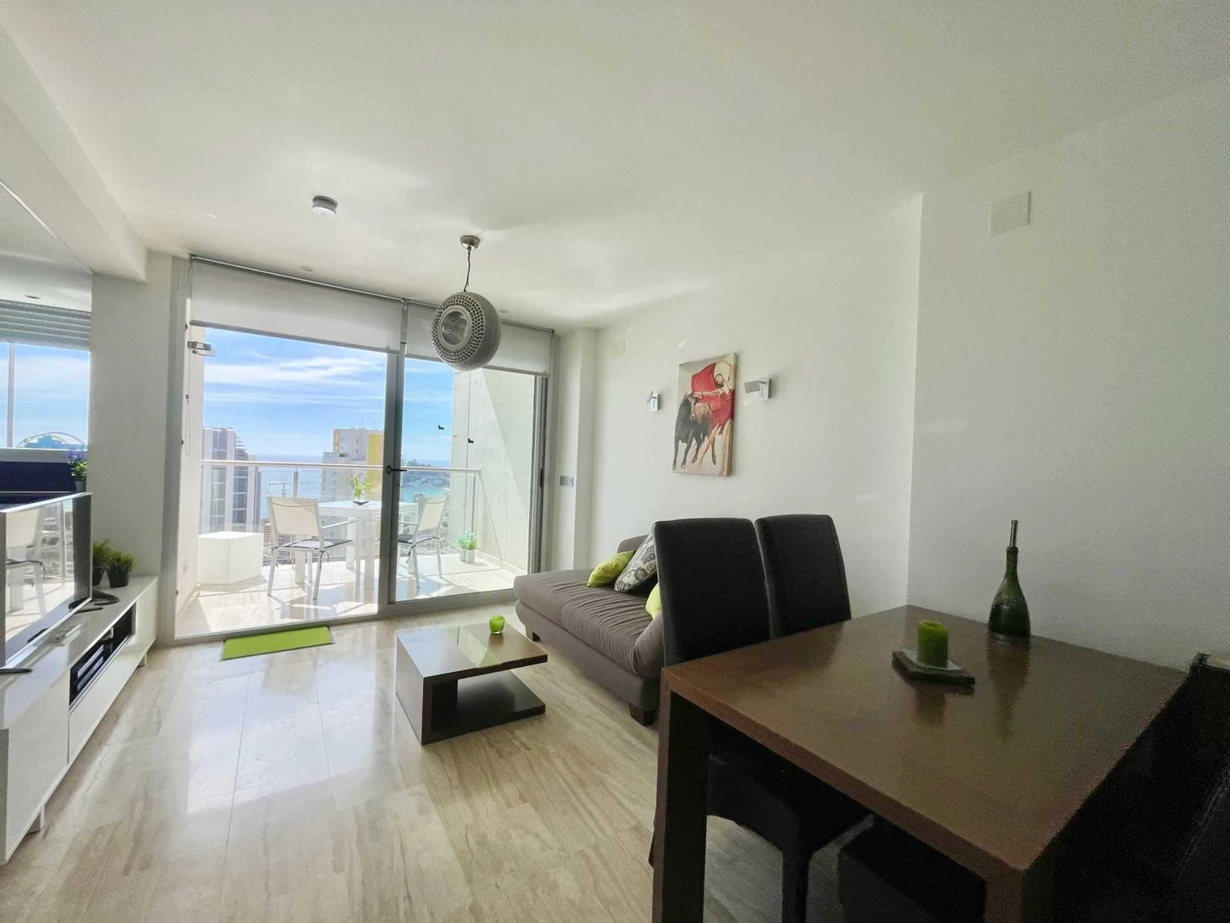 Die Wohnung in Benidorm verfügt über 1 Schlafzimmer und Platz für 2 Personen. Unterkunft von 60 m² geschmackvoll und modern eingerichtet, mit Meerblick. Sie befindet sich 100 m vom Golfplatz "LAS REJAS", 100 m vom Supermarkt, 100 m vom Restaurant, 100 m vom Café, 600 m vom Sandstrand "PLAYA DE PONIENTE", 1 km von der Stadt "CASCO ANTIGUO BENIDORM", 2 km vom Busbahnhof "BENIDORM", 3 km vom Freizeitpark "TERRA MITICA", 4 km vom Wasserpark "AQUALANDIA", 5 km vom Krankenhaus "HOSPITAL DE VILLAJOYOSA", 65 km vom internationalen Flughafen "ALICANTE", 65 km vom Flughafen "ALICANTE", 65 km vom Bahnhof "ALICANTE" und befindet sich in einer idealen Zone für Familien im Wohnkomplex. Sie verfügt über Aufzug, Garten, Terrasse, Waschmaschine, Bügeleisen, Internetzugang (WLAN), Haartrockner, Kinderzone, Tennisplatz, Padel-Platz, Heizung Wärmepumpe, Klimaanlage in der gesamten Unterkunft, Gemeinschaftspool, überdachten Parkplatz im selben Gebäude, Fernsehen. Die separate Küche mit Glaskeramikkochfeld ist ausgestattet mit Kühlschrank, Mikrowelle, Ofen, Gefrierschrank, Geschirrspüler, Geschirr/Besteck, Küchenutensilien, Kaffeemaschine, Toaster und Wasserkocher.