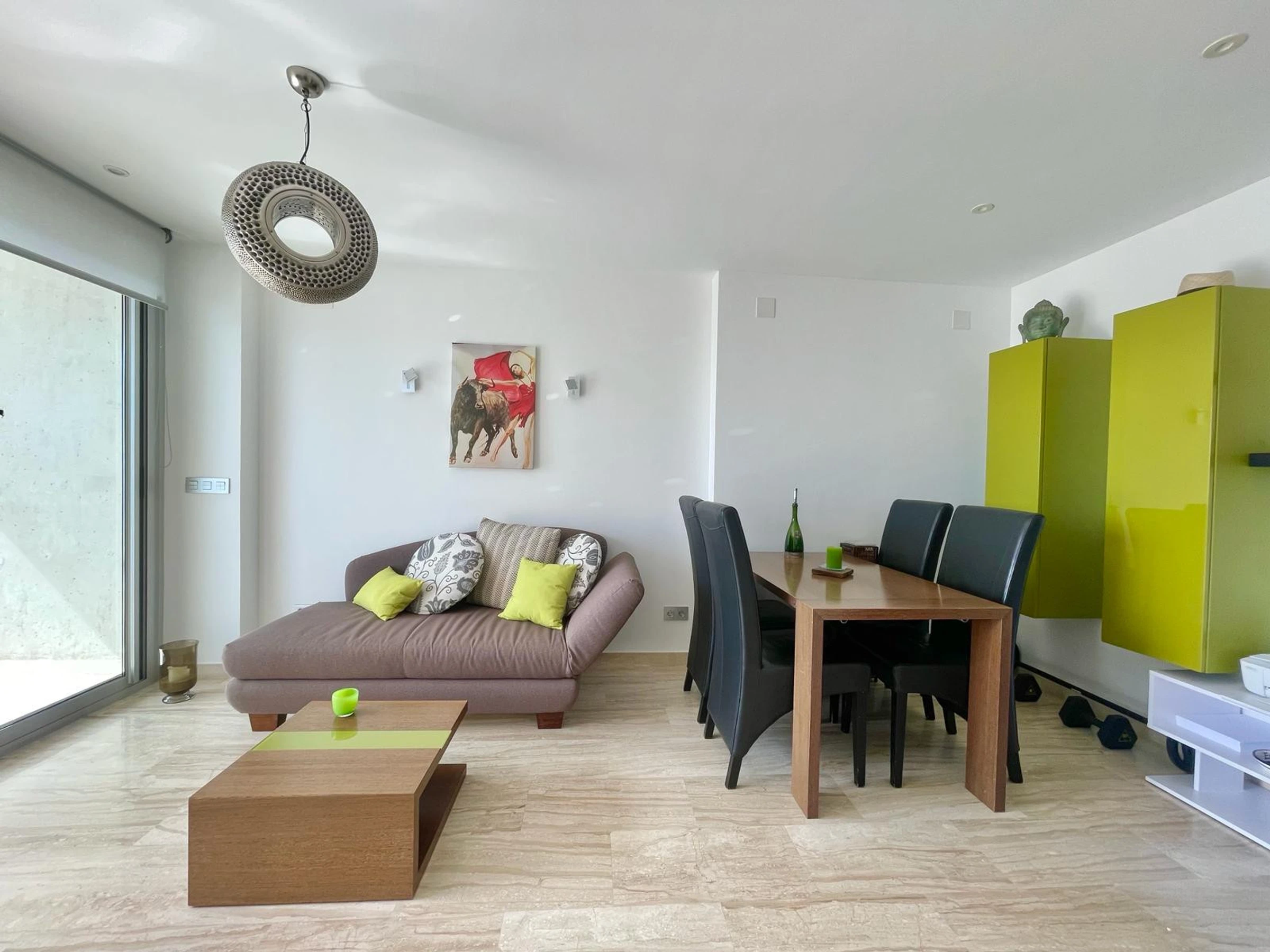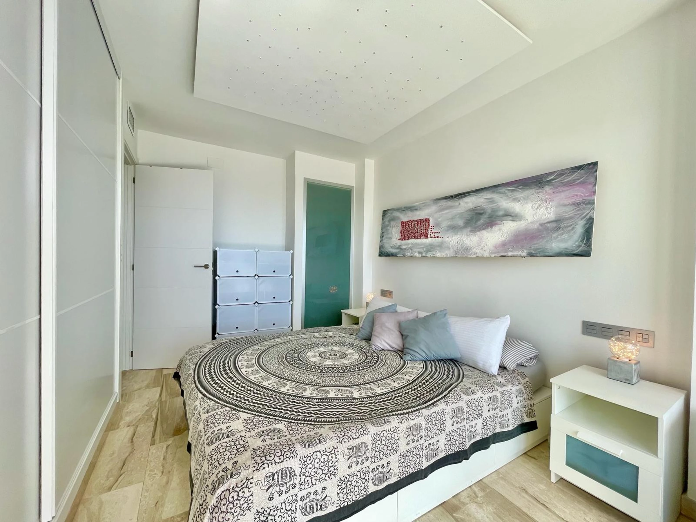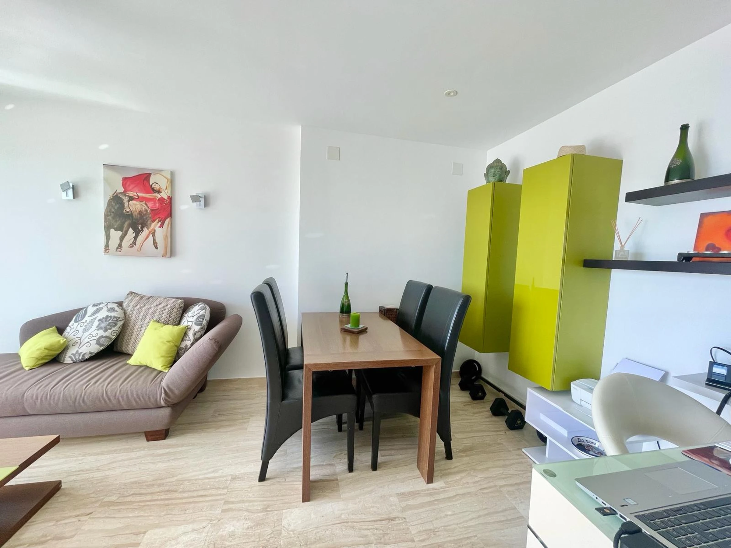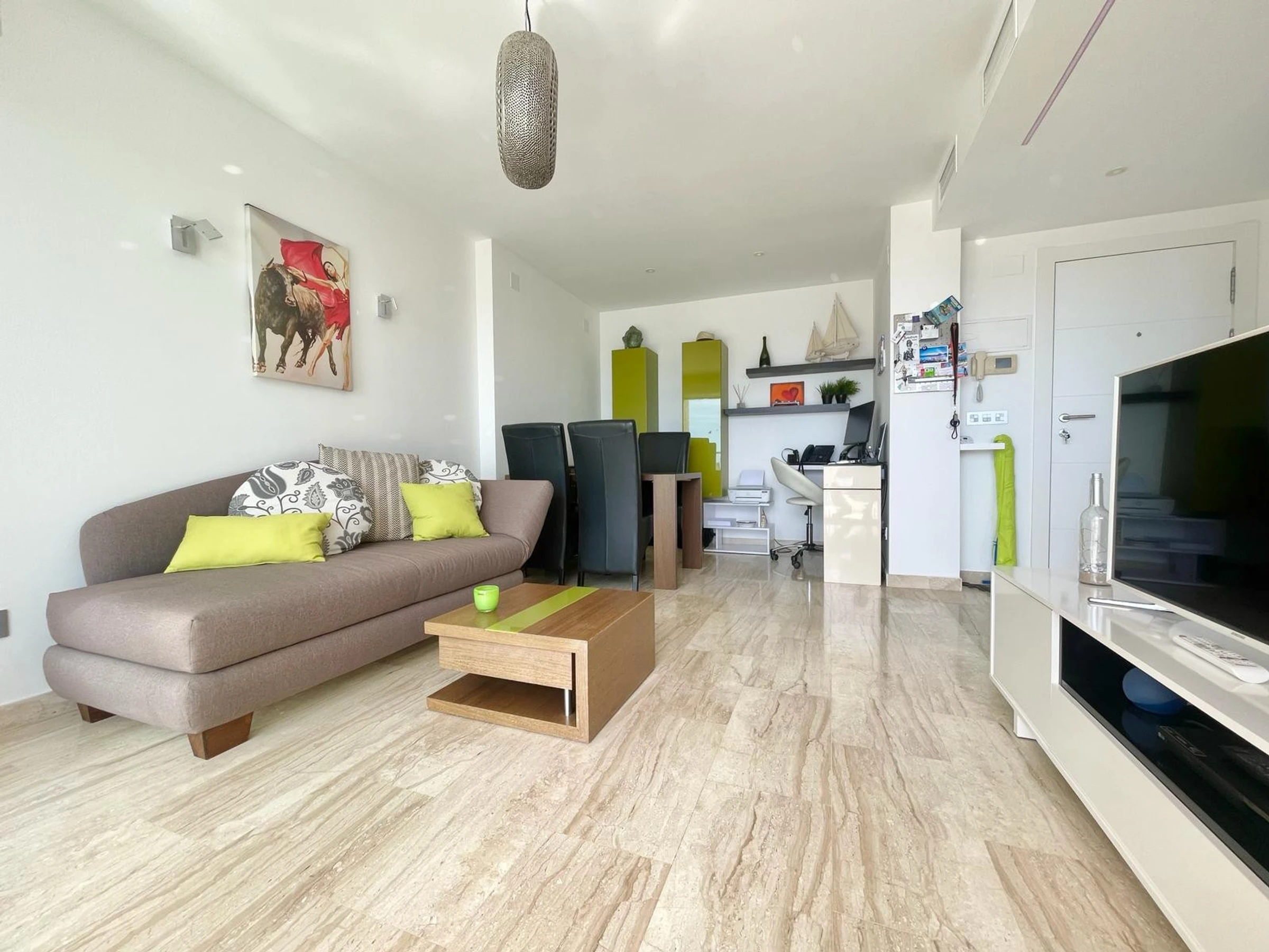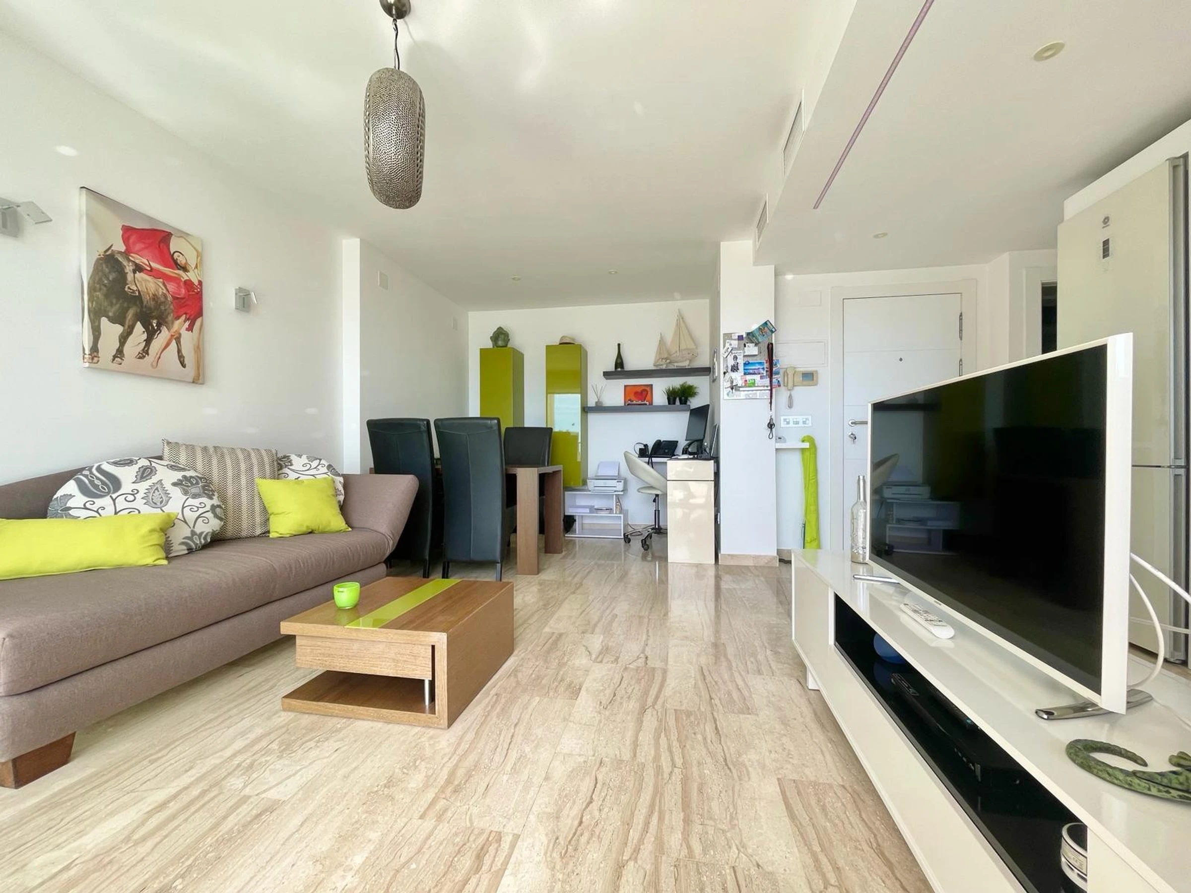 Die Wohnung in Benidorm verfügt über 1 Schlafzimmer und Platz für 2 Personen. Unterkunft von 60 m² geschmackvoll und modern eingerichtet, mit Meerblick. Sie befindet sich 100 m vom Golfplatz "LAS REJAS", 100 m vom Supermarkt, 100 m vom Restaurant, 100 m vom Café, 600 m vom Sandstrand "PLAYA DE PONIENTE", 1 km von der Stadt "CASCO ANTIGUO BENIDORM", 2 km vom Busbahnhof "BENIDORM", 3 km vom Freizeitpark "TERRA MITICA", 4 km vom Wasserpark "AQUALANDIA", 5 km vom Krankenhaus "HOSPITAL DE VILLAJOYOSA", 65 km vom internationalen Flughafen "ALICANTE", 65 km vom Flughafen "ALICANTE", 65 km vom Bahnhof "ALICANTE" und befindet sich in einer idealen Zone für Familien im Wohnkomplex. Sie verfügt über Aufzug, Garten, Terrasse, Waschmaschine, Bügeleisen, Internetzugang (WLAN), Haartrockner, Kinderzone, Tennisplatz, Padel-Platz, Heizung Wärmepumpe, Klimaanlage in der gesamten Unterkunft, Gemeinschaftspool, überdachten Parkplatz im selben Gebäude, Fernsehen. Die separate Küche mit Glaskeramikkochfeld ist ausgestattet mit Kühlschrank, Mikrowelle, Ofen, Gefrierschrank, Geschirrspüler, Geschirr/Besteck, Küchenutensilien, Kaffeemaschine, Toaster und Wasserkocher.