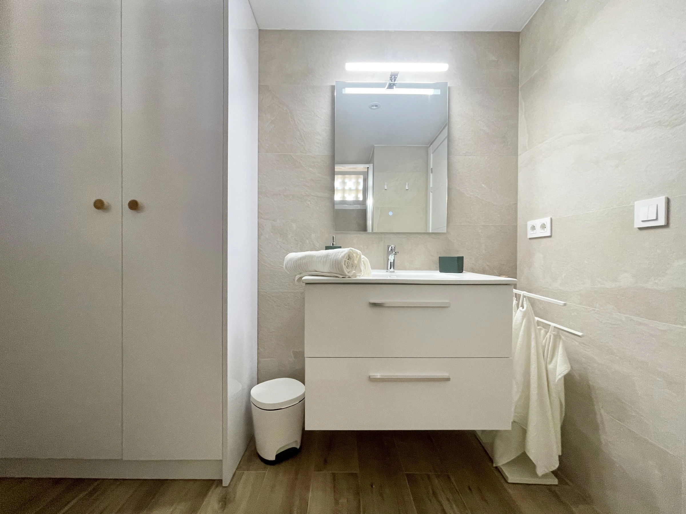 Die Wohnung in Benidorm verfügt über 1 Schlafzimmer und Platz für 4 Personen. Eine 50 m² große Unterkunft, geschmackvoll und modern eingerichtet, mit Meerblick. Sie befindet sich 0 m vom Felsstrand, 0 m vom Naturpark, 0 m vom Restaurant "Zona Cala de Benidorm (Poniente)", 100 m vom Sandstrand "PLAYA DE PONIENTE (CALA DE BENIDORM)", 1 km vom Supermarkt "SUPERMERCADOS (ZONA COMERCIAL)", 2 km von der Stadt "CASCO ANTIGUO BENIDORM", 4 km vom Golfplatz "VILLAITANA", 4 km vom Busbahnhof "BENIDORM", 4 km vom Freizeitpark "TERRA MÍTICA", 6 km vom Wasserpark "AQUALANDIA", 65 km vom Flughafen "ALICANTE", 65 km vom Bahnhof "ALICANTE" und befindet sich in einer idealen Zone für Kinder direkt am Meer. Sie verfügt über einen Aufzug, Waschmaschine, Bügeleisen, Internetzugang (WLAN), Heizung mit Wärmepumpe, Klimaanlage in der gesamten Unterkunft, Gemeinschaftspool, Parkplatz im Freien im selben Gebäude, Fernsehen. Die offene Küche mit Induktionsherd ist ausgestattet mit Kühlschrank, Mikrowelle, Backofen, Gefrierschrank, Geschirrspüler, Geschirr/Besteck, Küchenutensilien, Kaffeemaschine, Toaster und Wasserkocher.